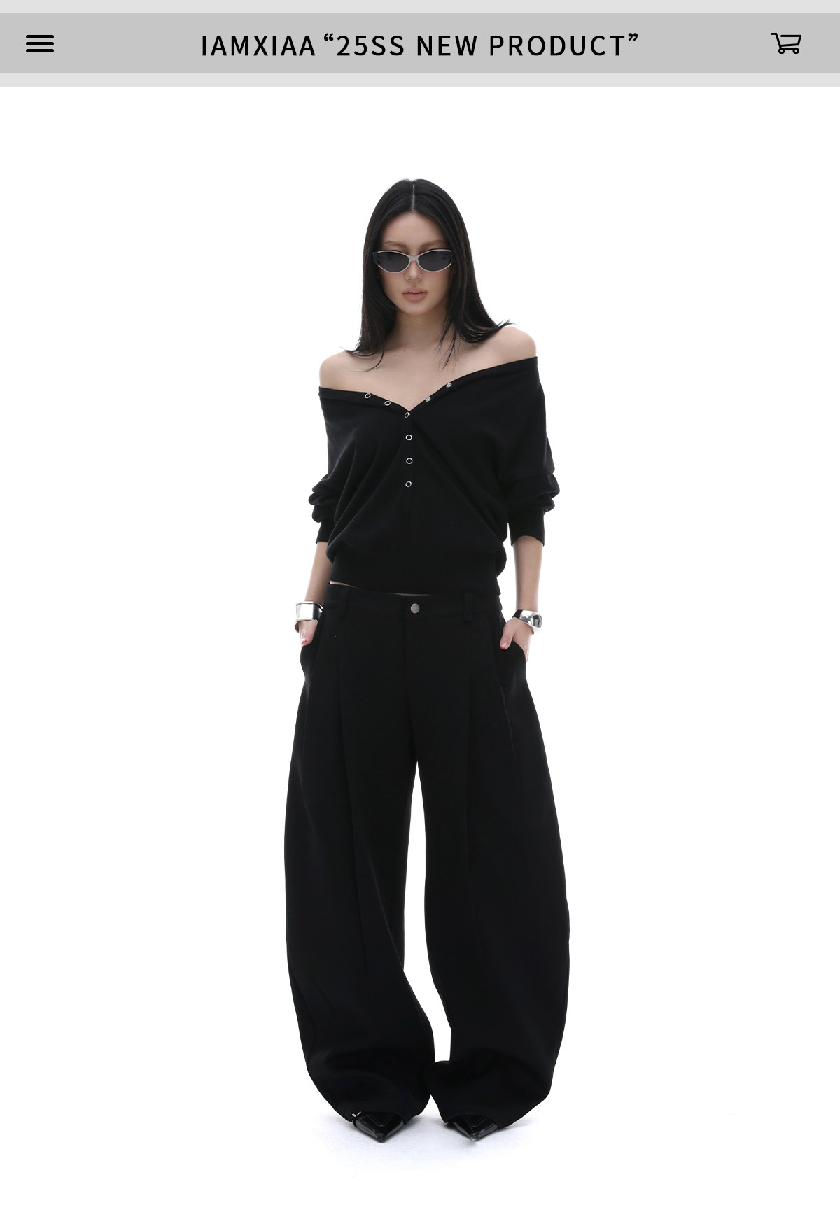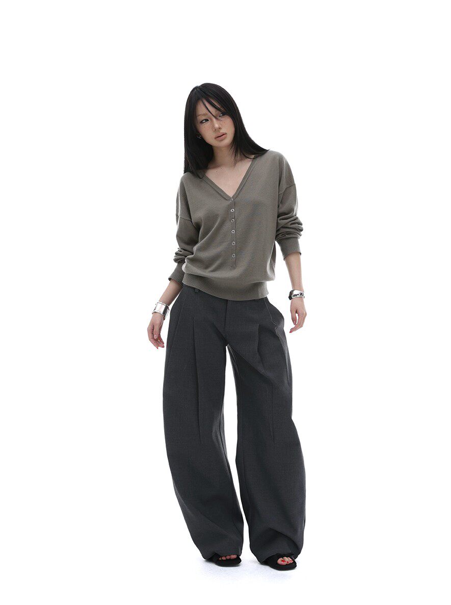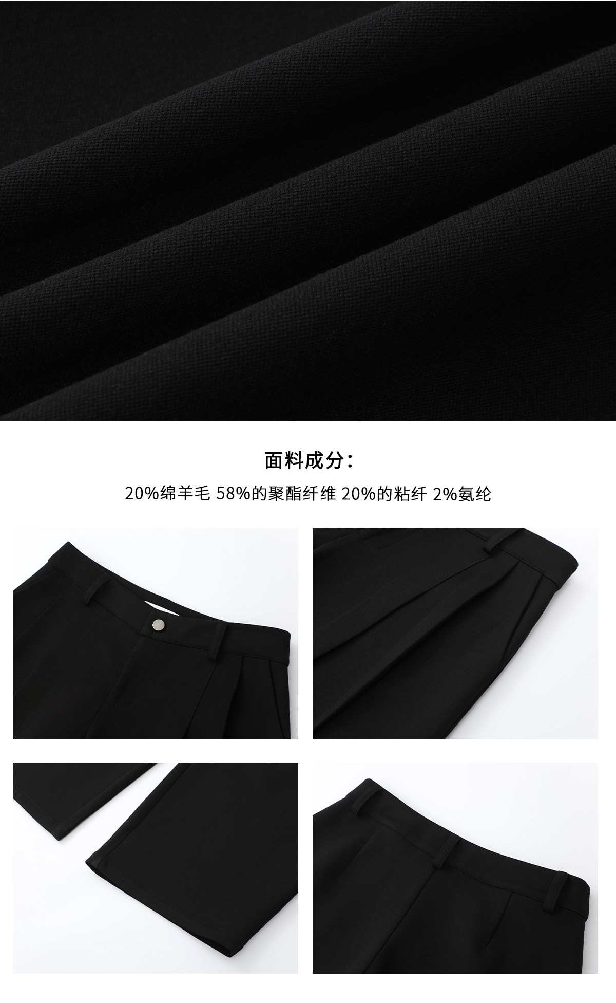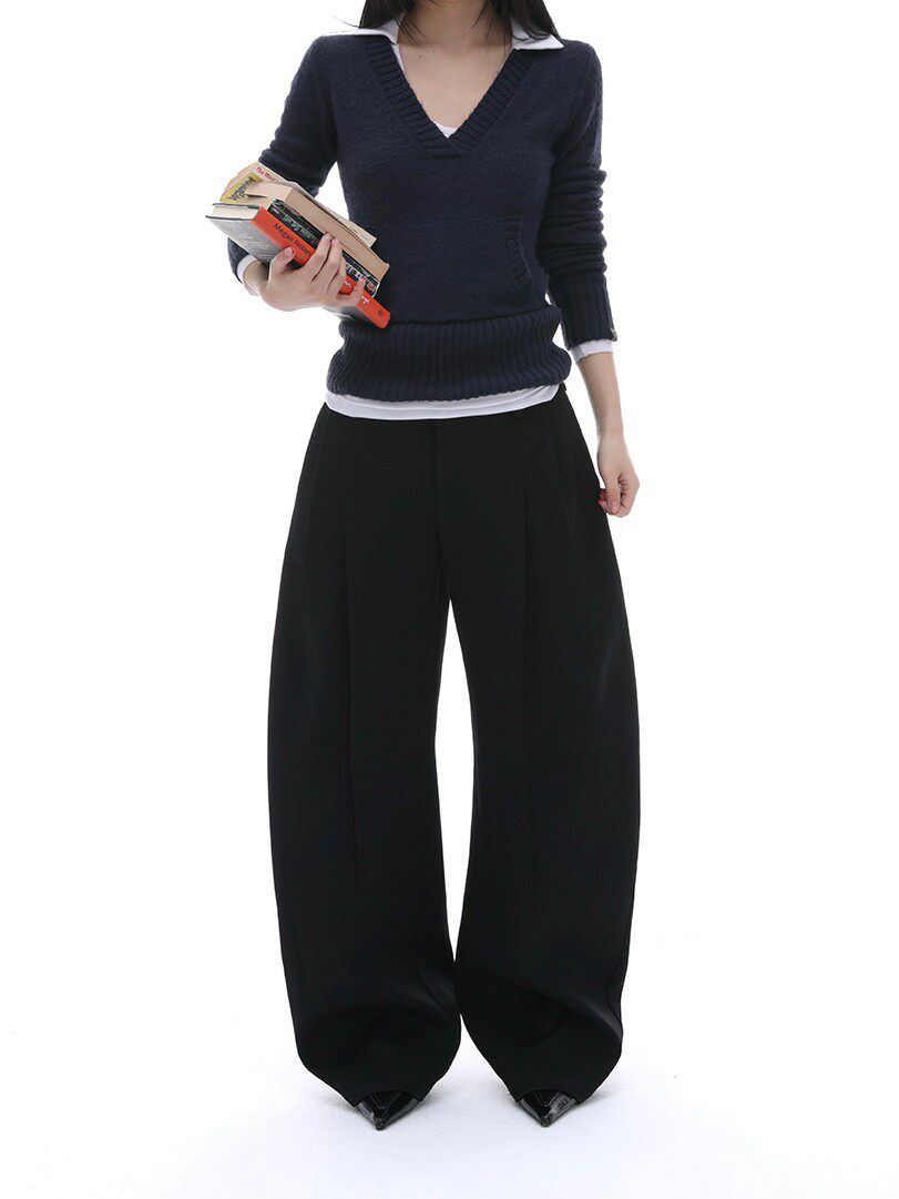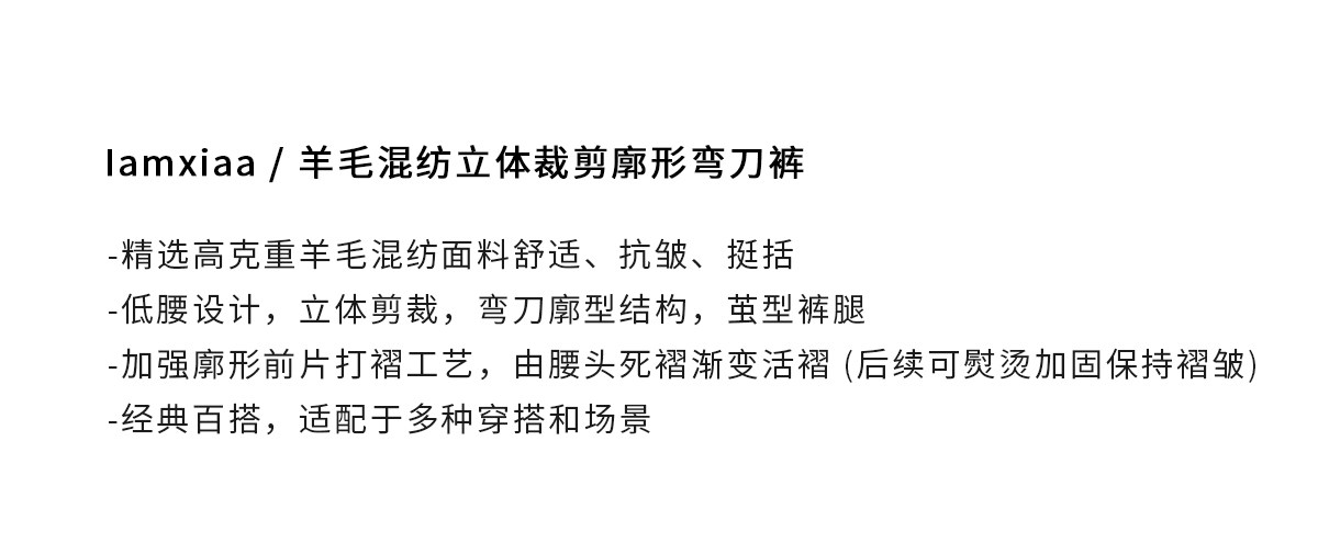 iamxiaa*羊毛混纺立体裁剪廓形压褶辣妹休闲 𫔮黑色裤子弯刀裤女春季 [Original Page Link]