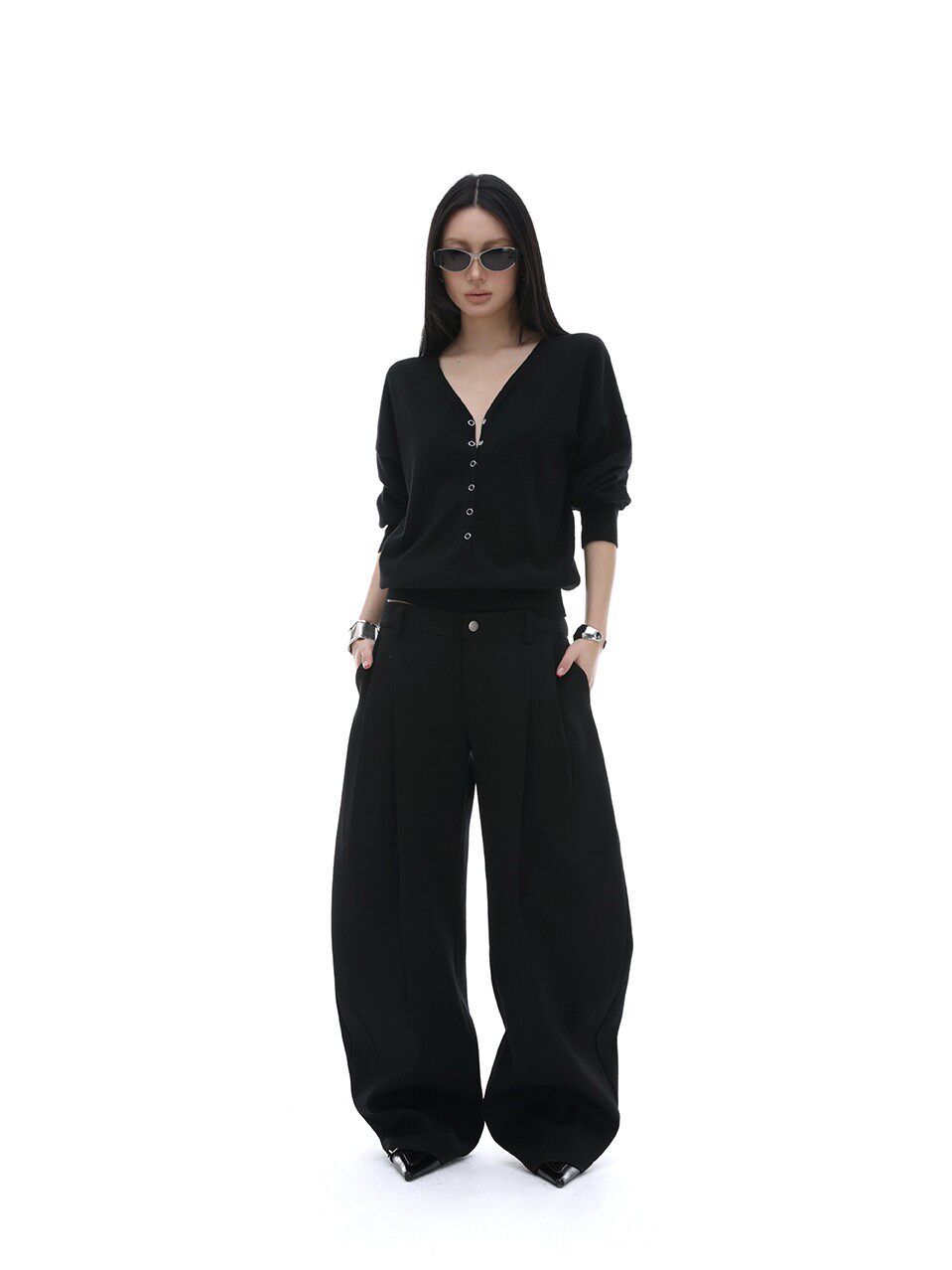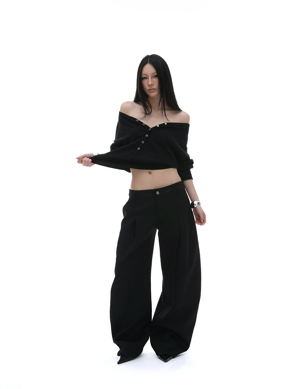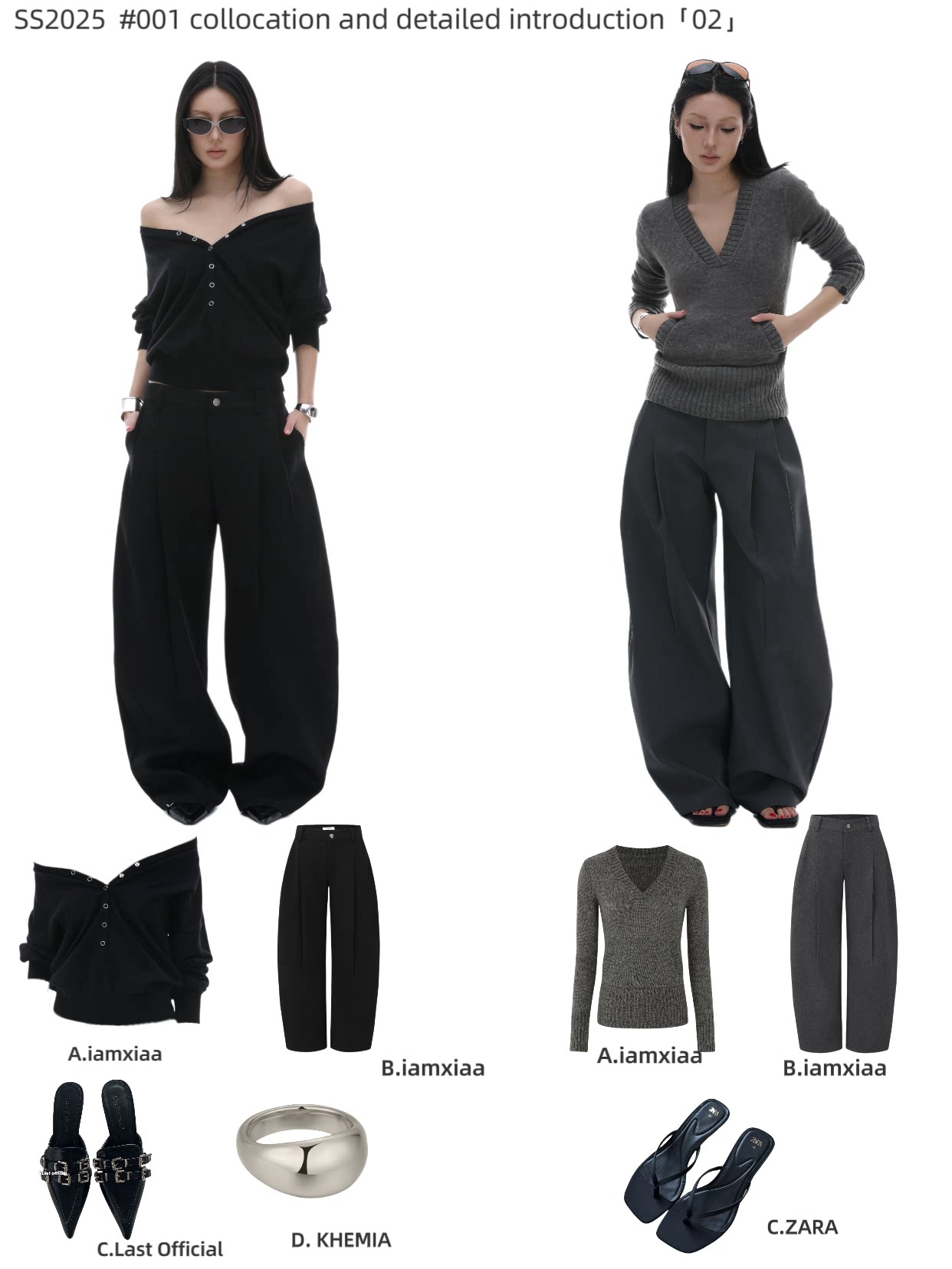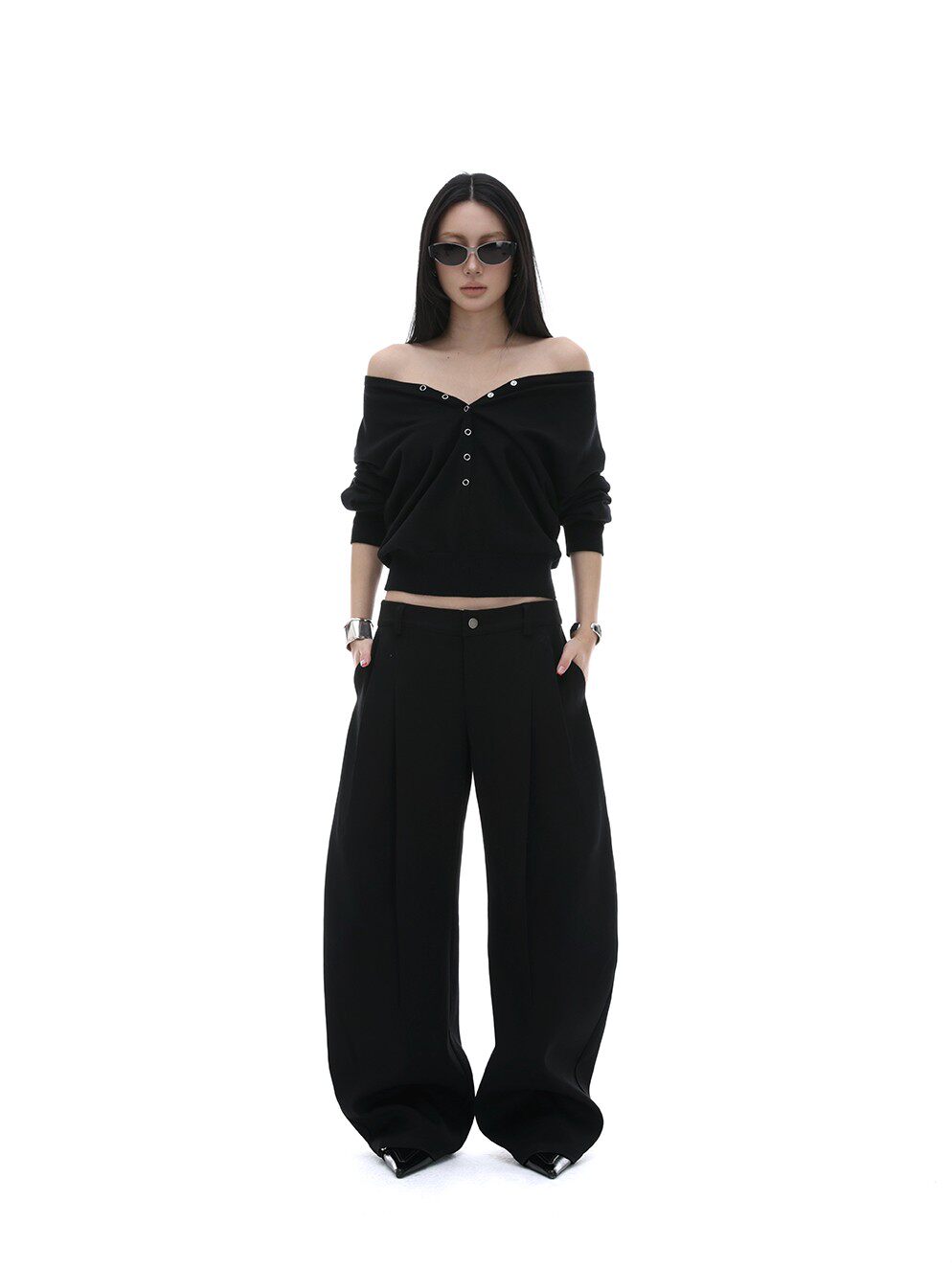 iamxiaa*羊毛混纺立体裁剪廓形压褶辣妹休闲 𫔮黑色裤子弯刀裤女春季 [Original Page Link]