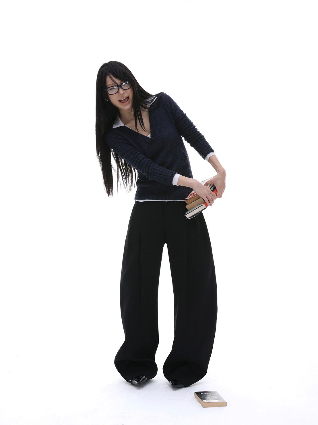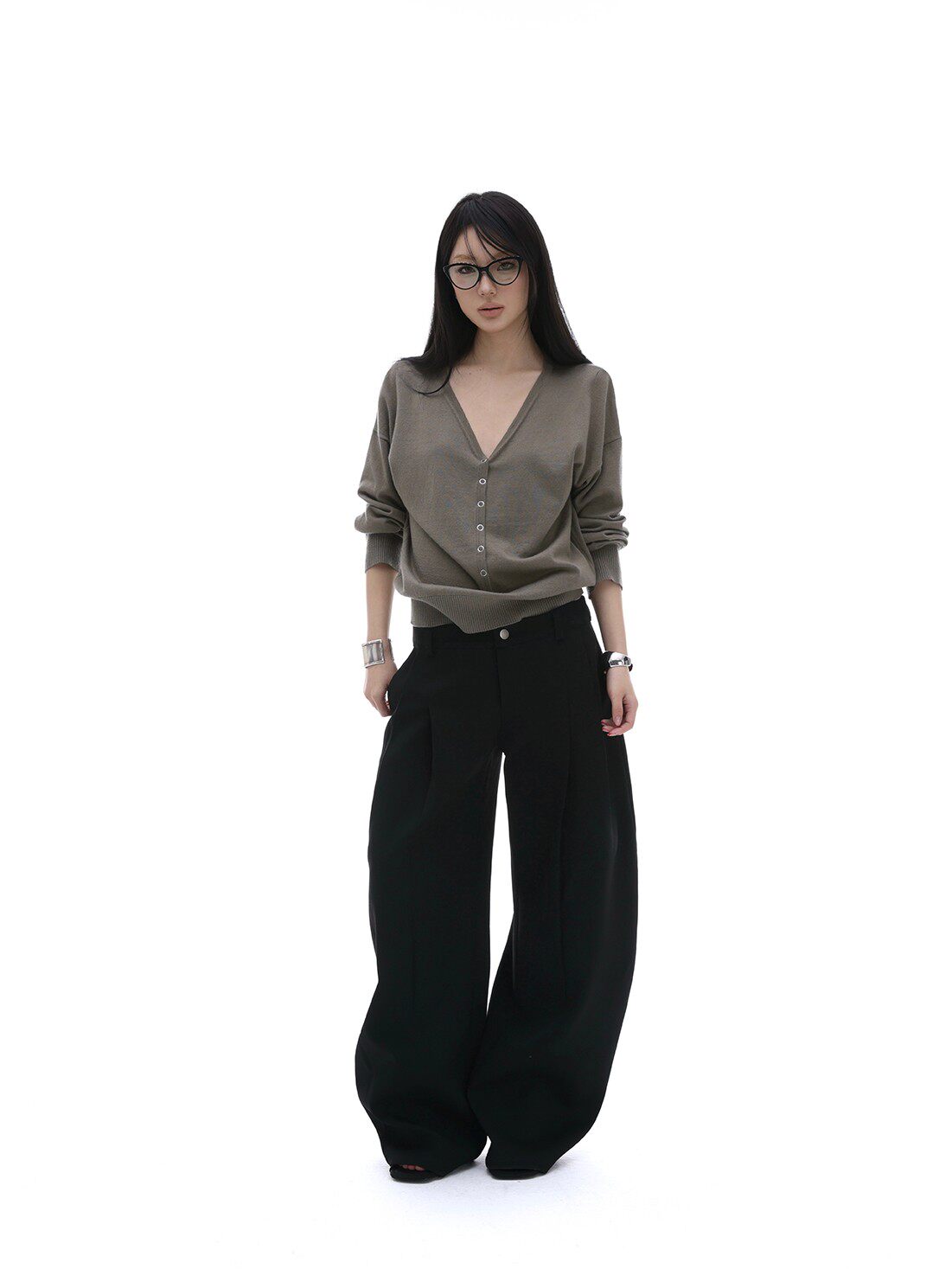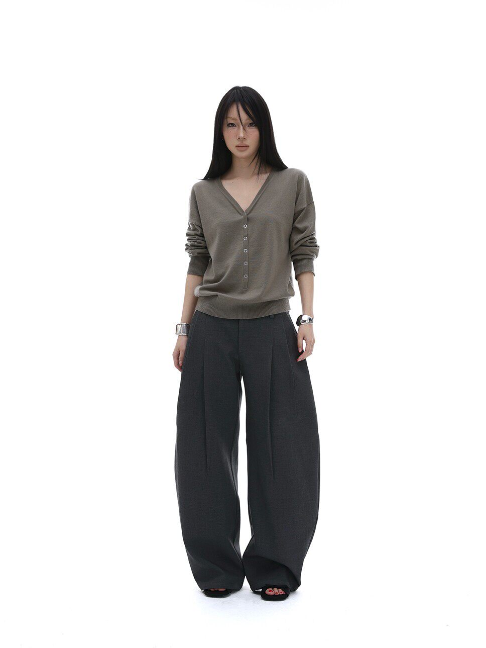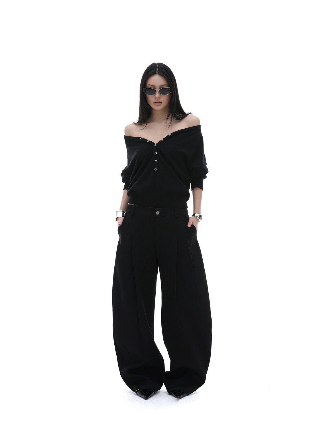 iamxiaa*羊毛混纺立体裁剪廓形压褶辣妹休闲 𫔮黑色裤子弯刀裤女春季 [Original Page Link]