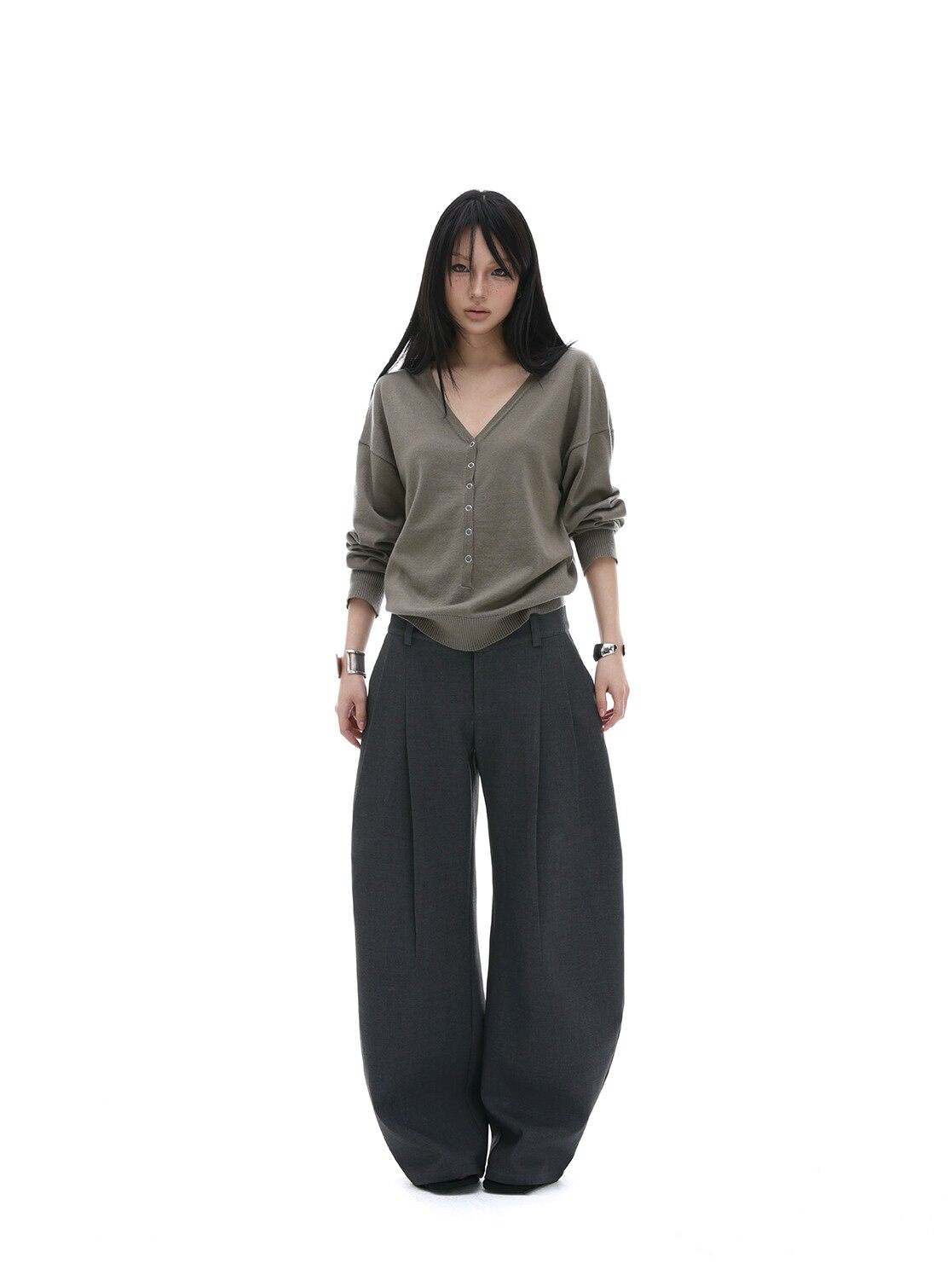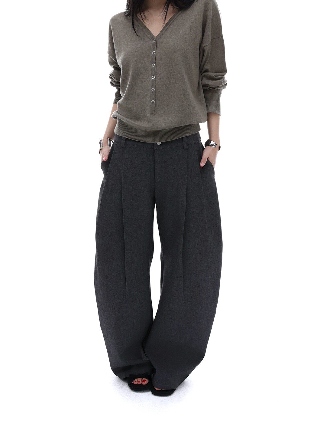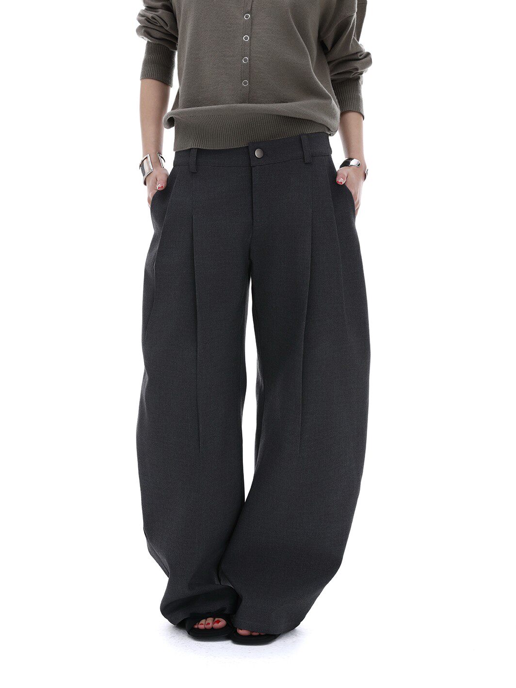 Iamxiaa* Wool blend, three-dimensional cut, pleated silhouette, sexy casual style, black curved trousers for women, spring.