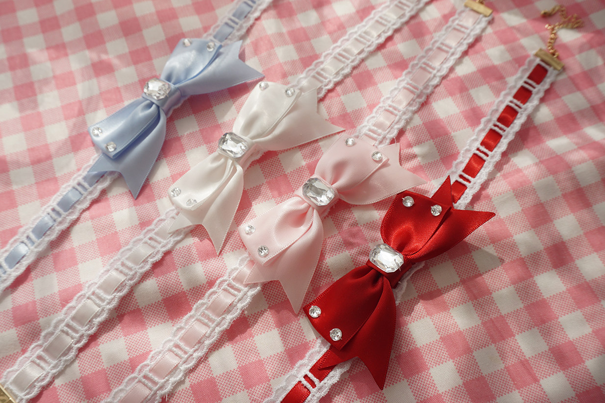 【三个包邮】蕾丝蝴蝶结钻石感lolita项链项圈chorker [Original Page Link]