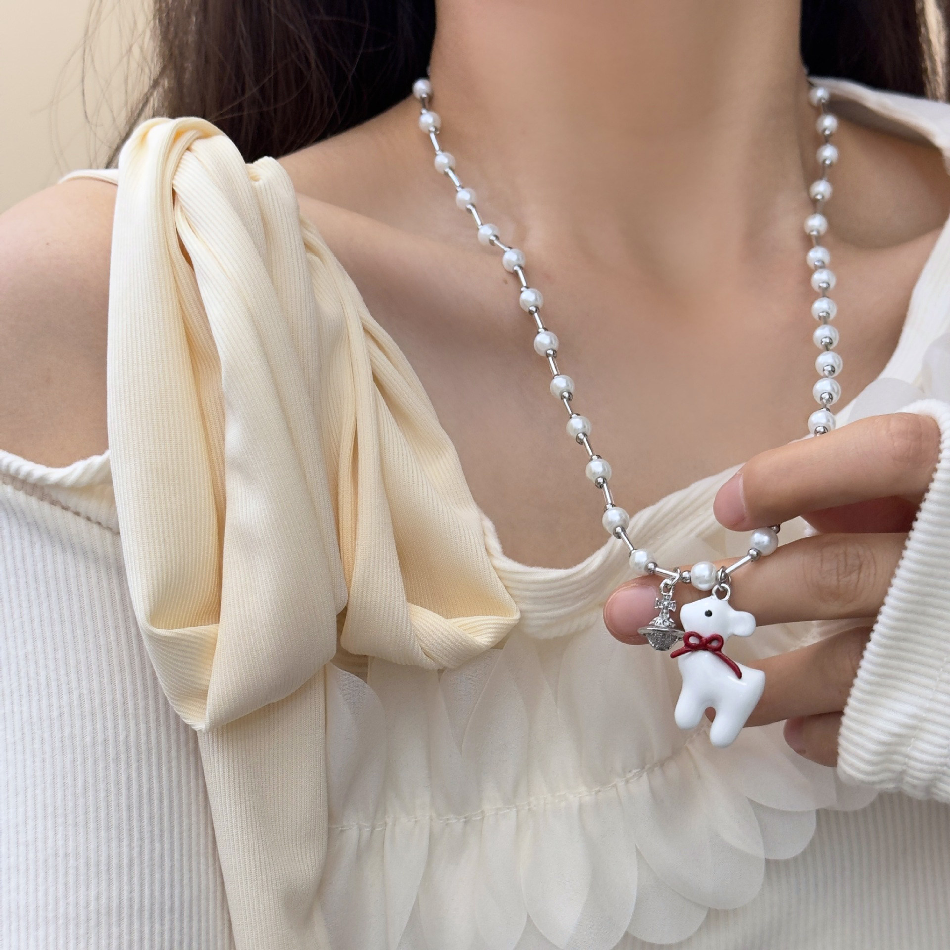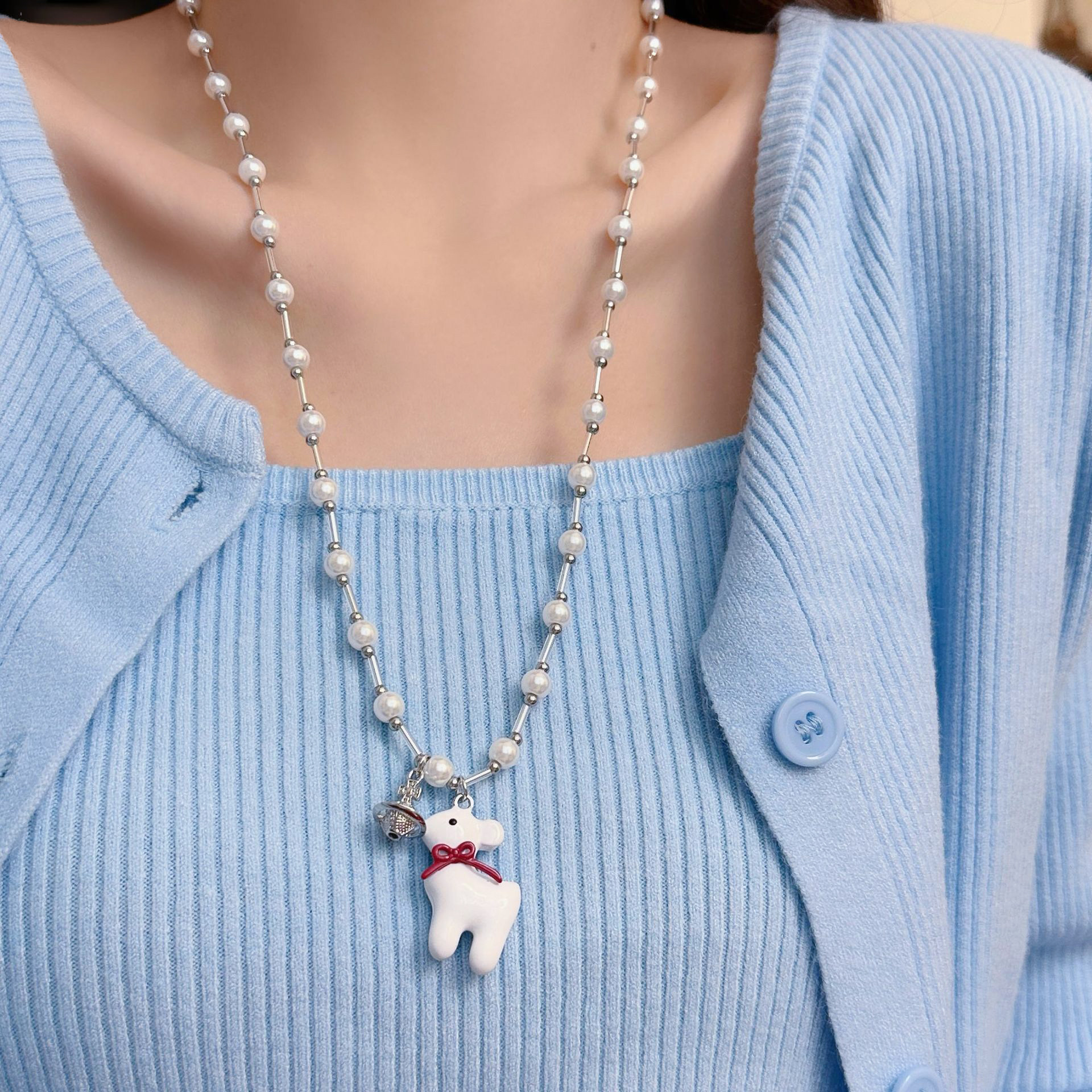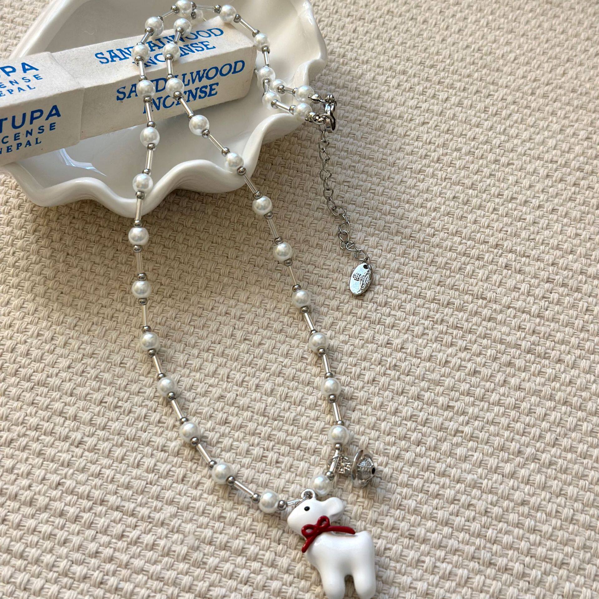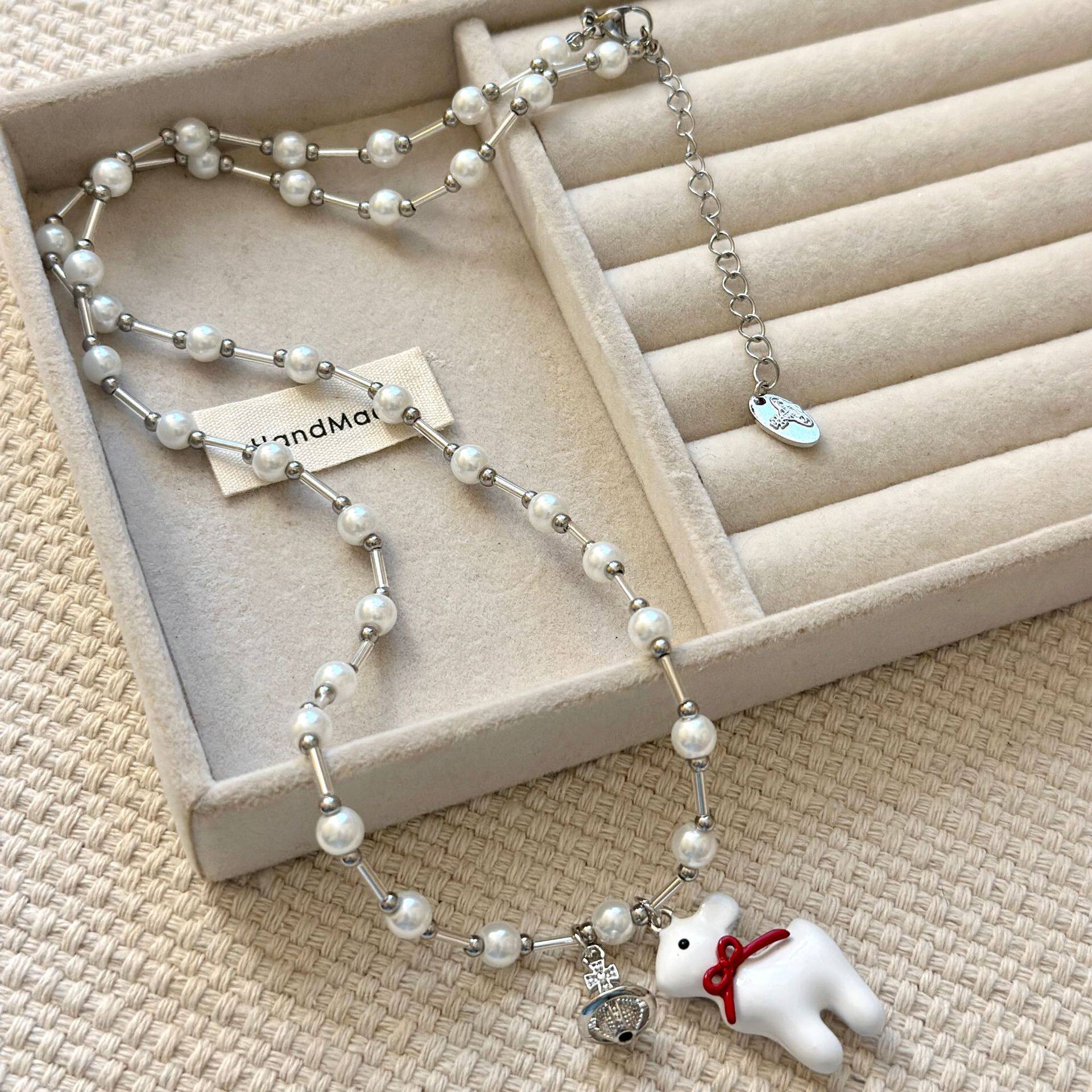 Y2K Angora red bow cream deer necklace ring cute hot girl sweet cool niche high-end atmosphere