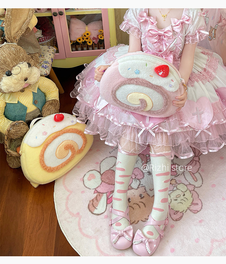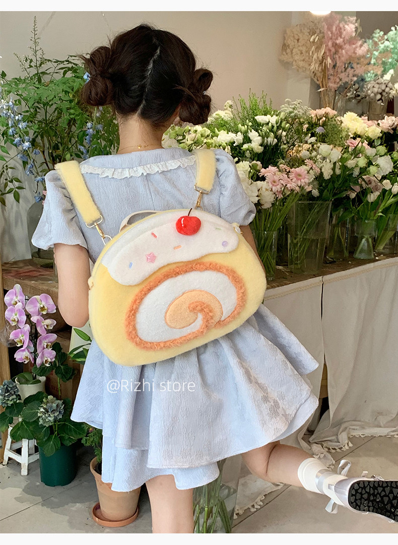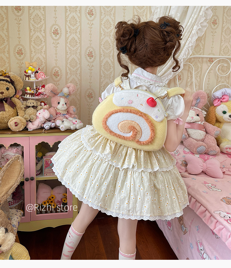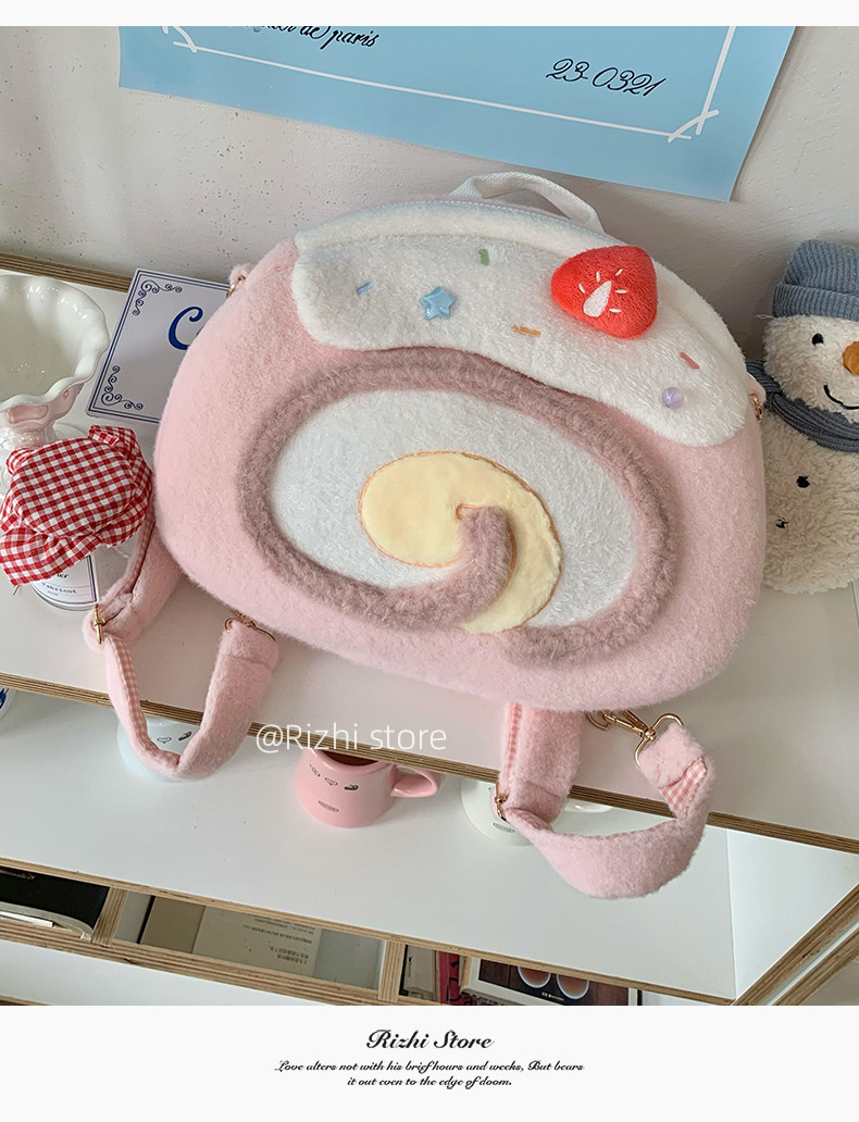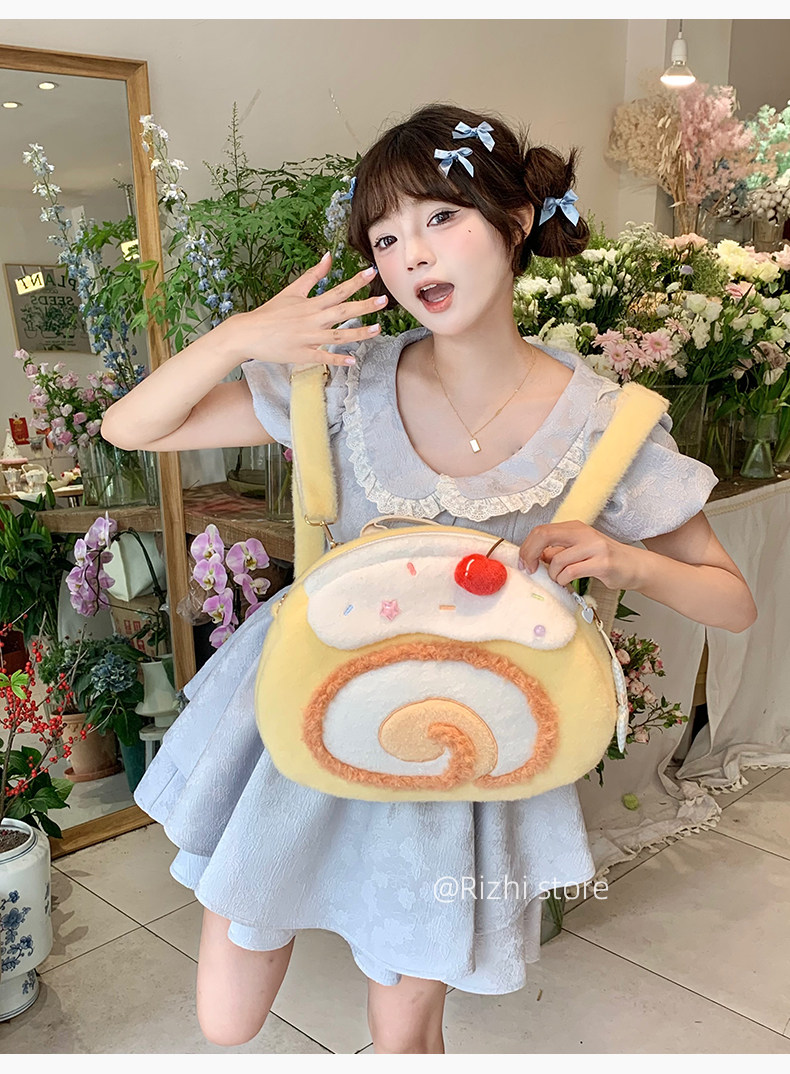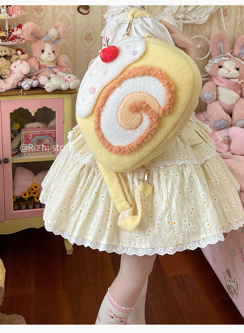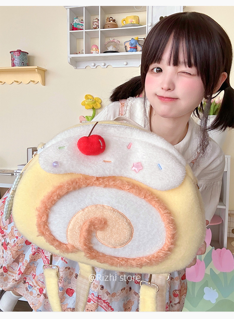 日稚商店原创瑞士卷毛绒双肩包女生lolita包包可爱大容量斜挎包 [Original Page Link]
