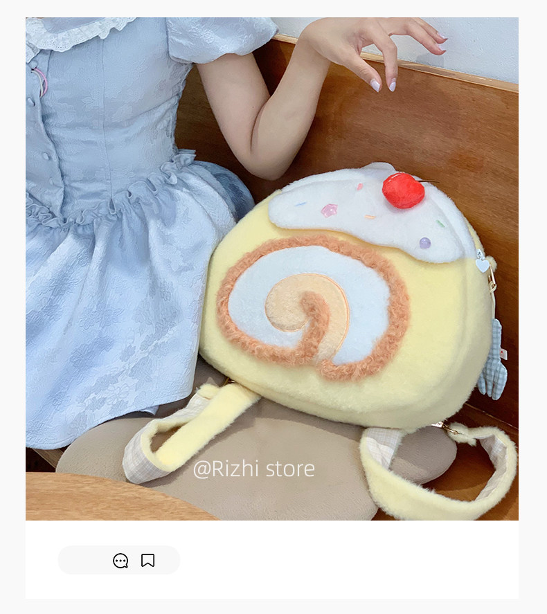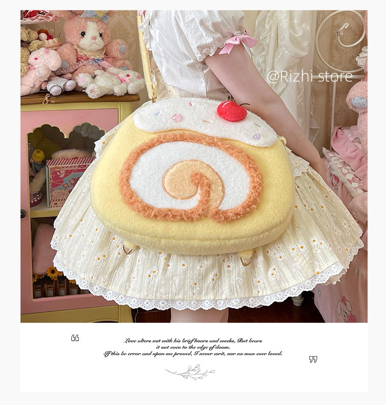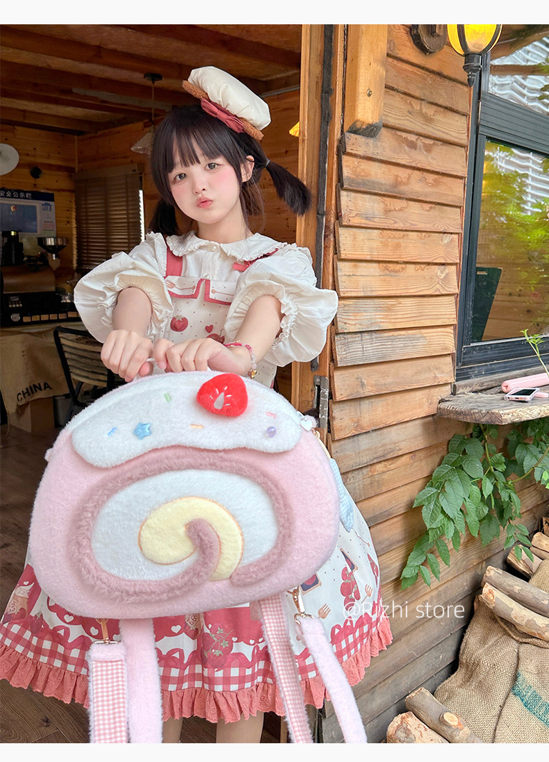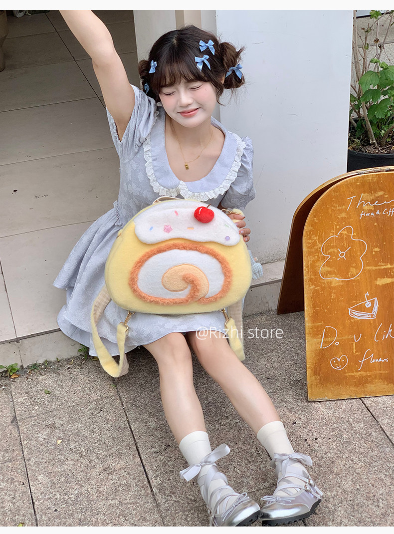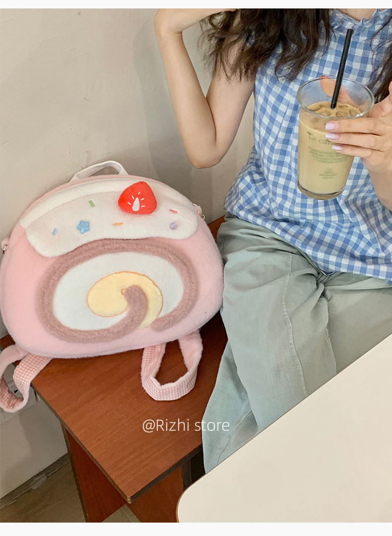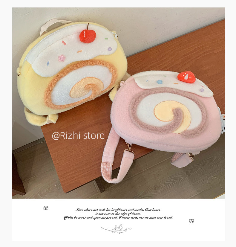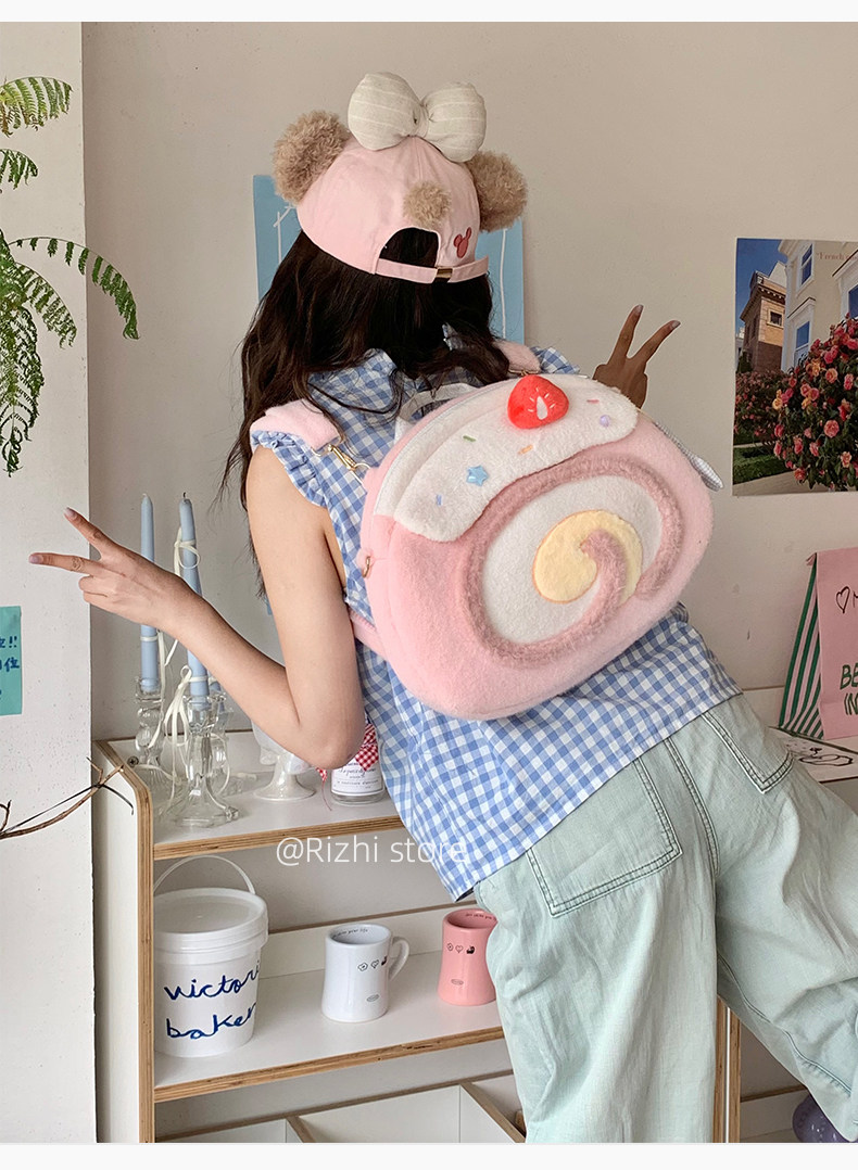 日稚商店原创瑞士卷毛绒双肩包女生lolita包包可爱大容量斜挎包 [Original Page Link]