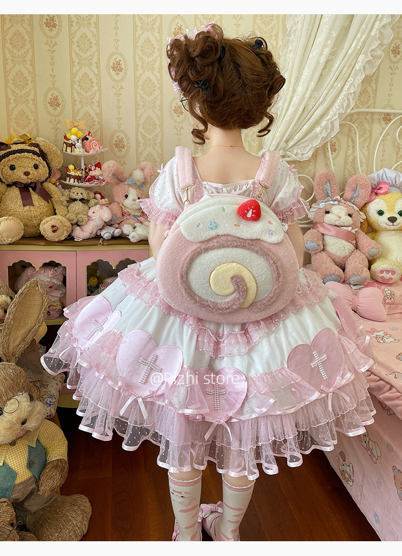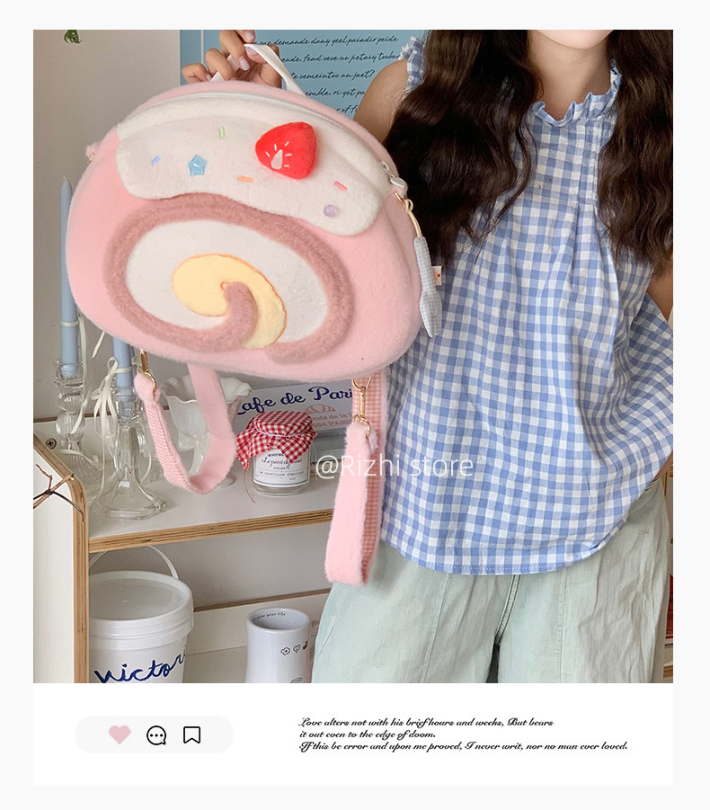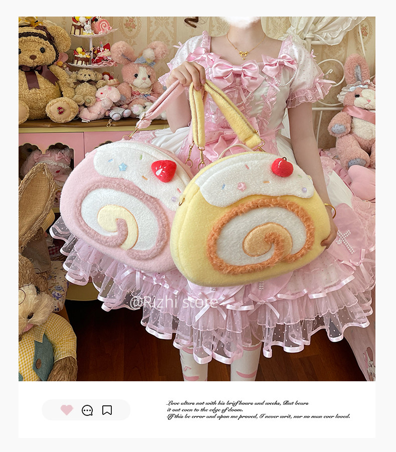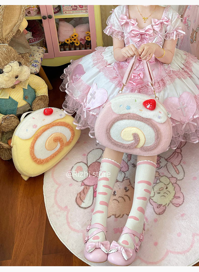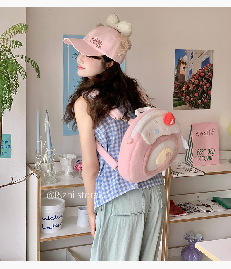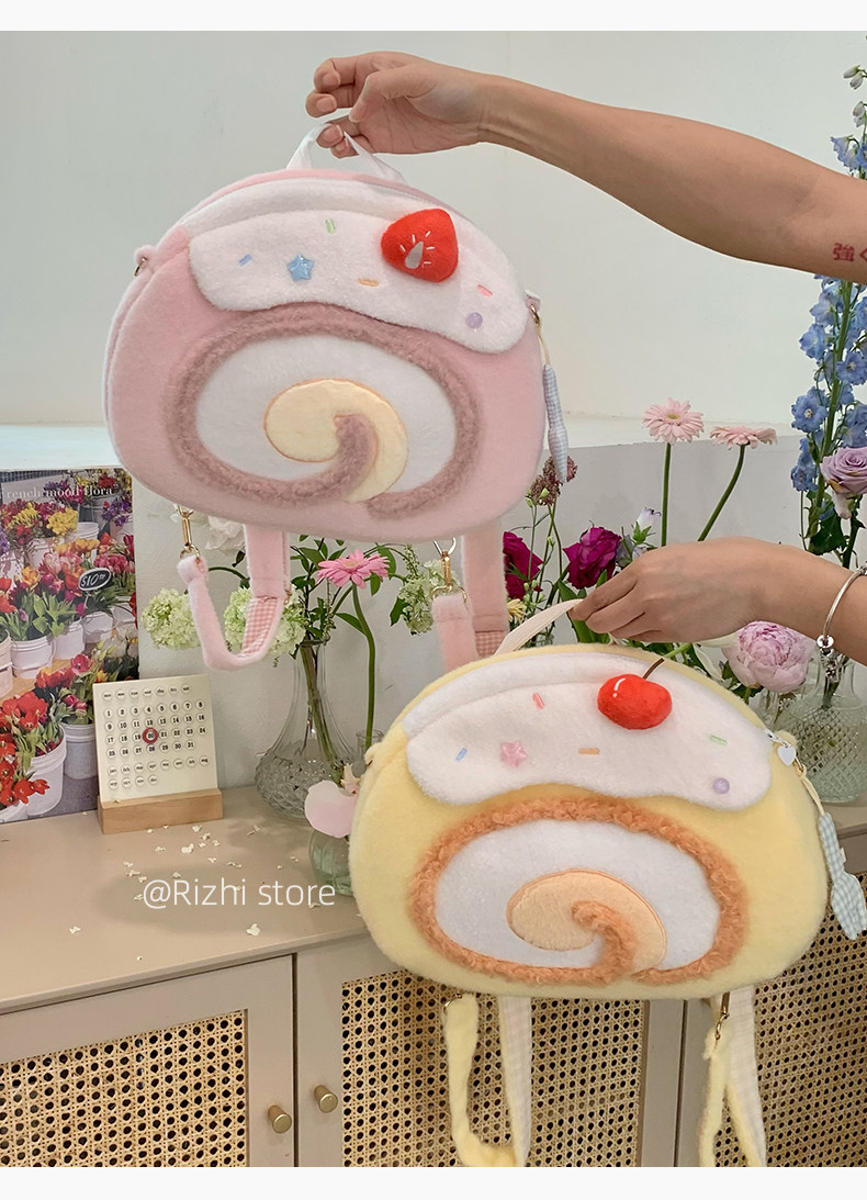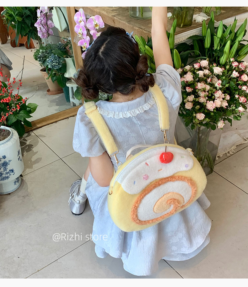 日稚商店原创瑞士卷毛绒双肩包女生lolita包包可爱大容量斜挎包 [Original Page Link]