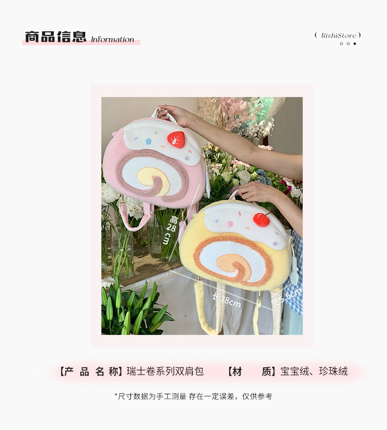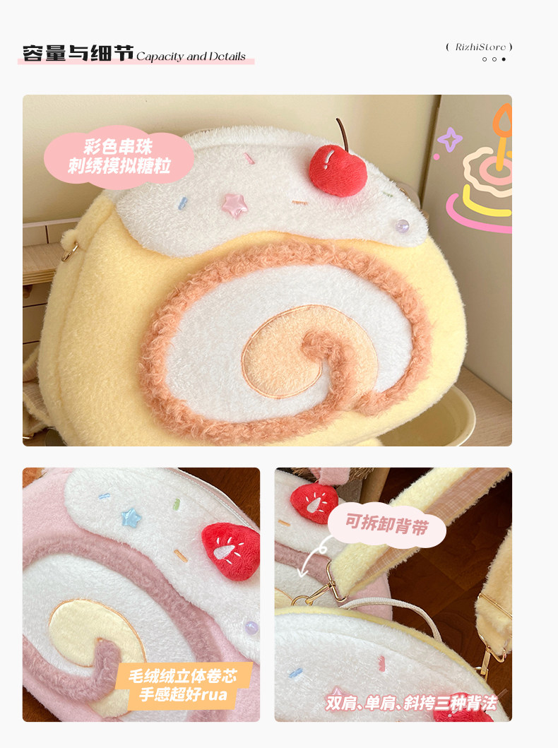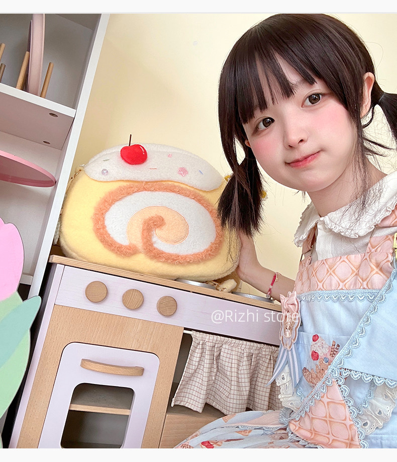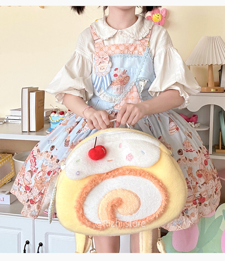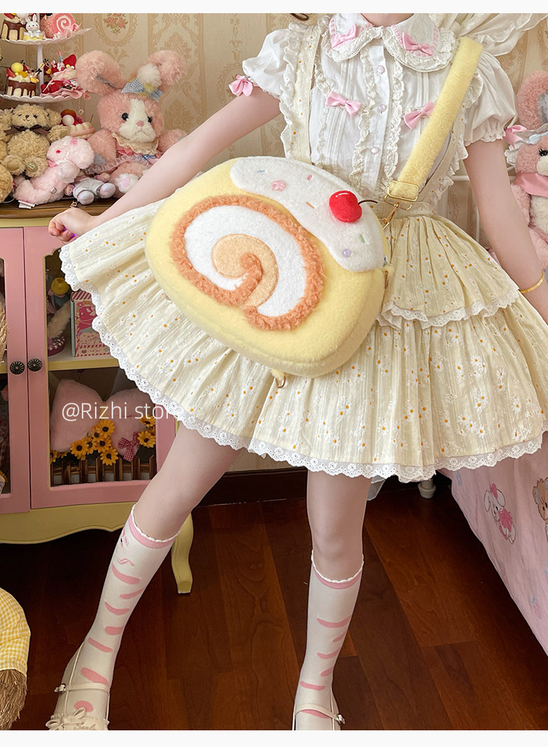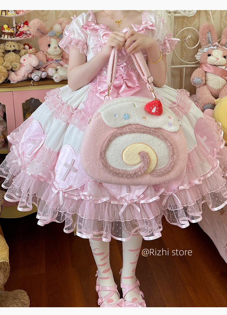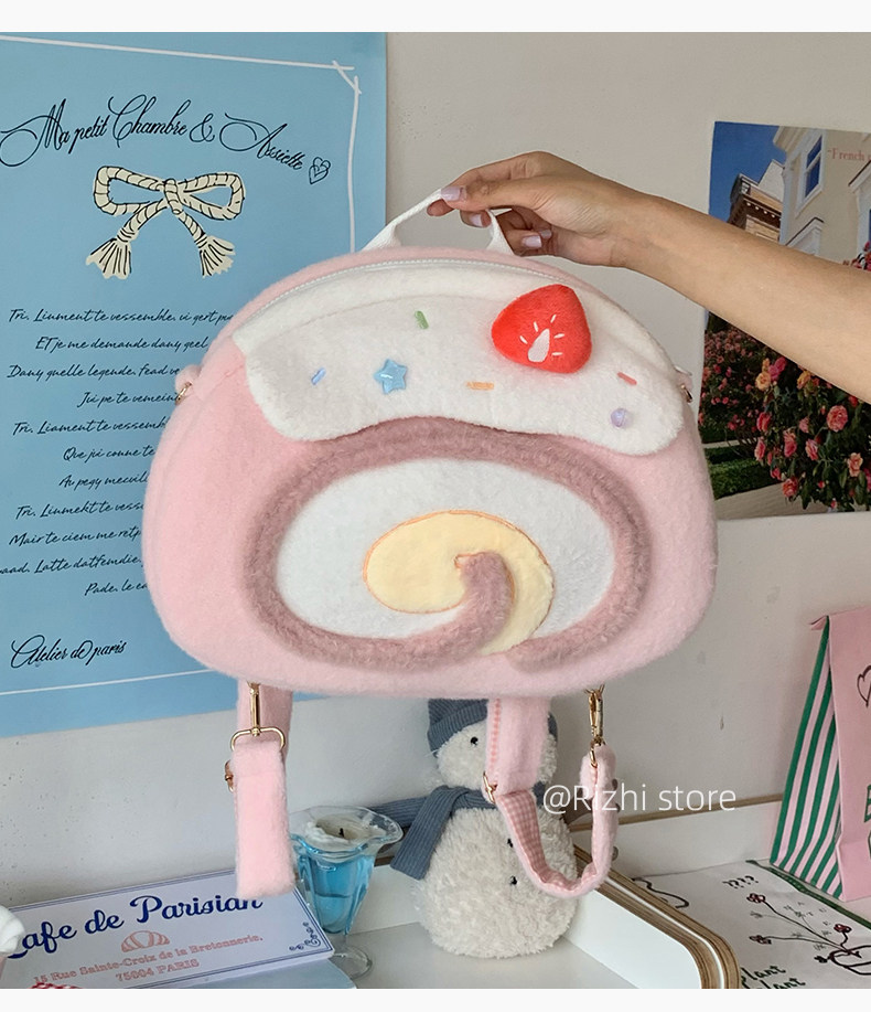 日稚商店原创瑞士卷毛绒双肩包女生lolita包包可爱大容量斜挎包 [Original Page Link]