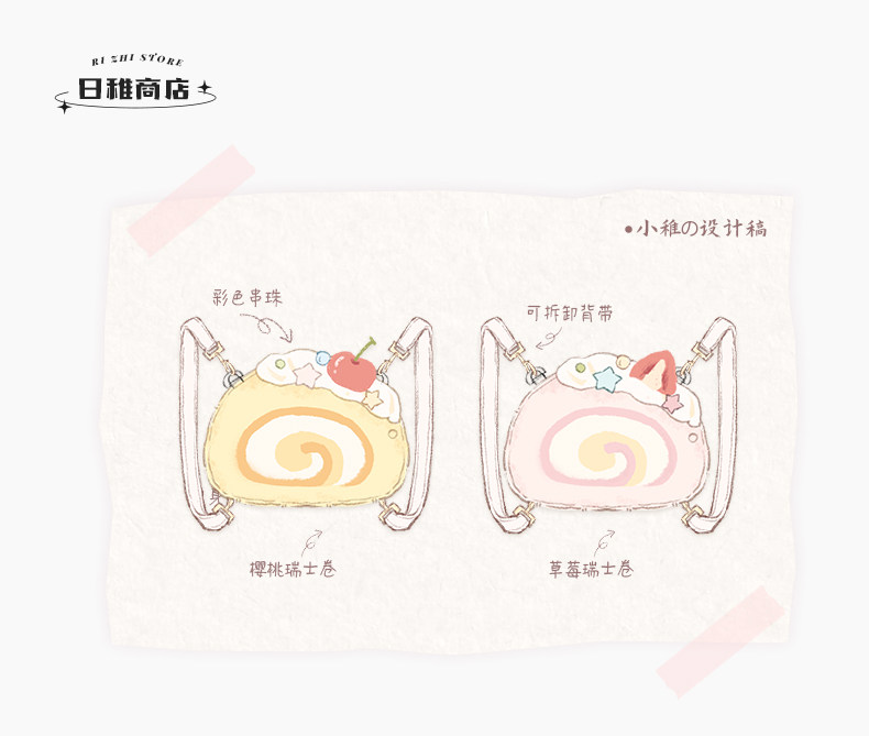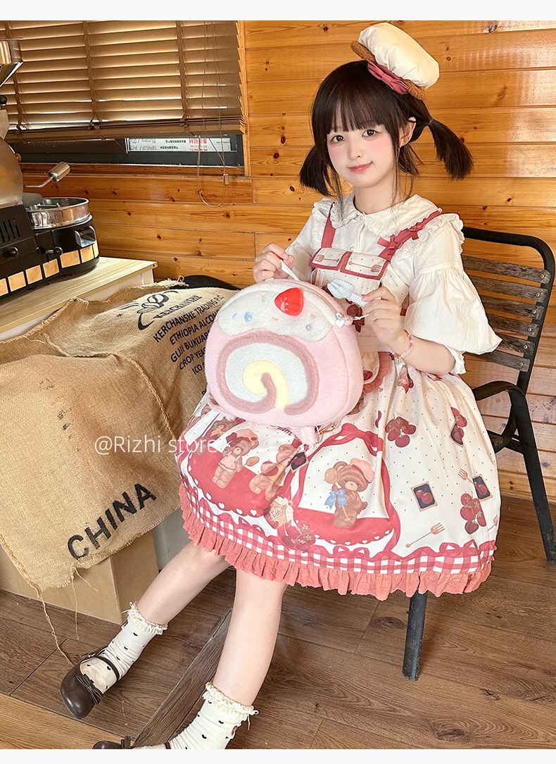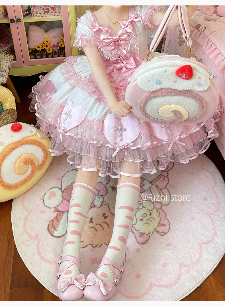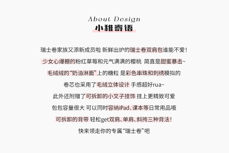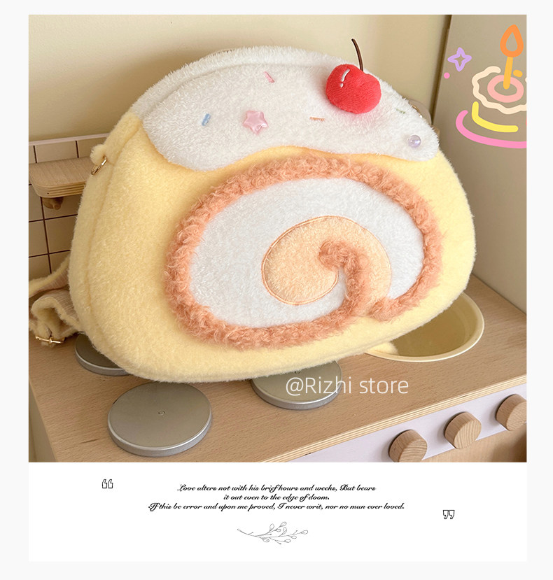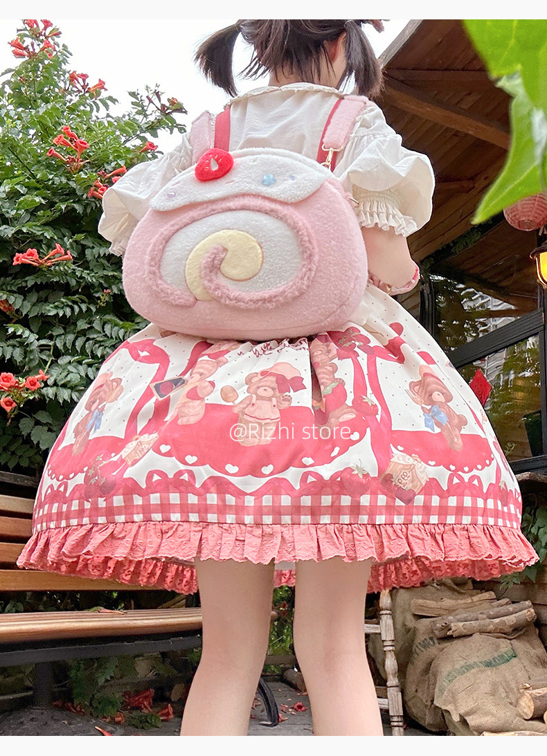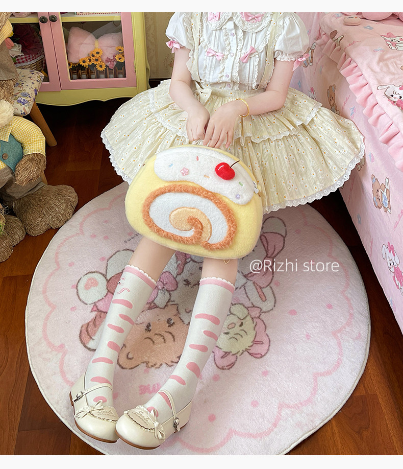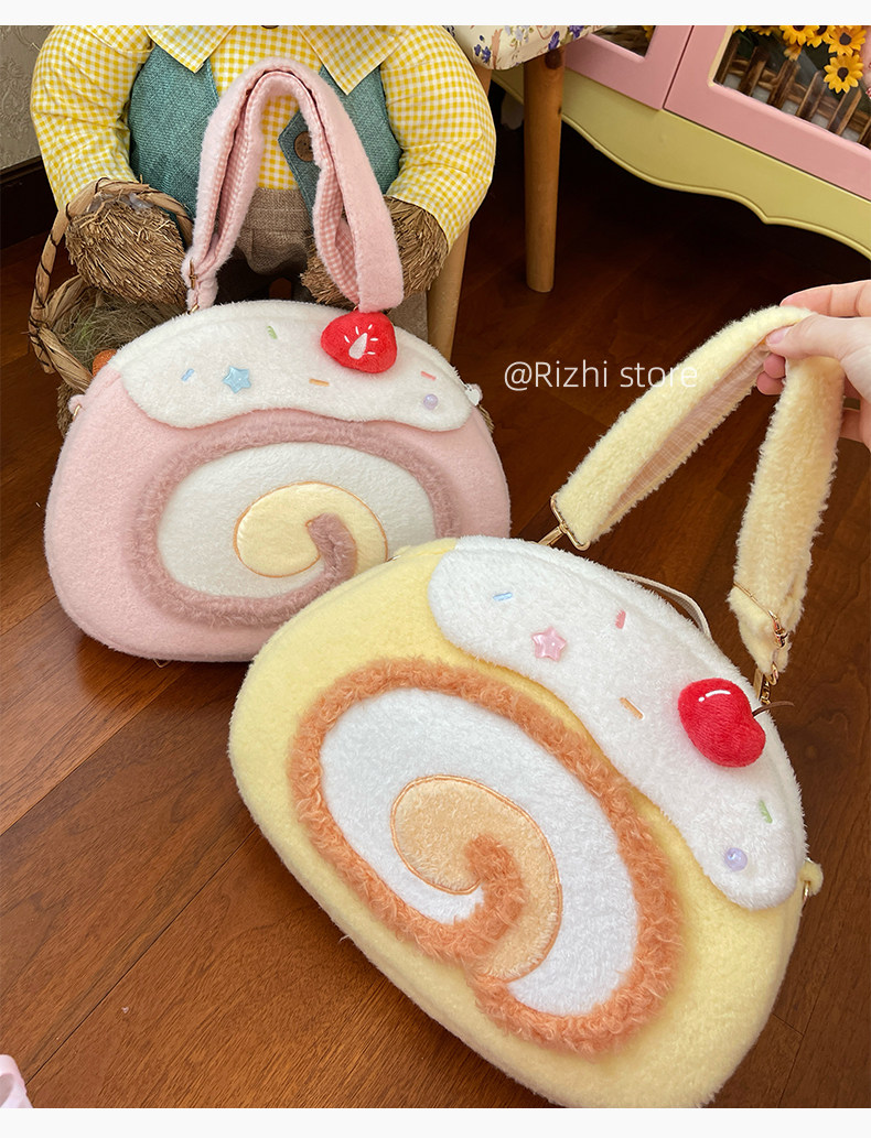 日稚商店原创瑞士卷毛绒双肩包女生lolita包包可爱大容量斜挎包 [Original Page Link]