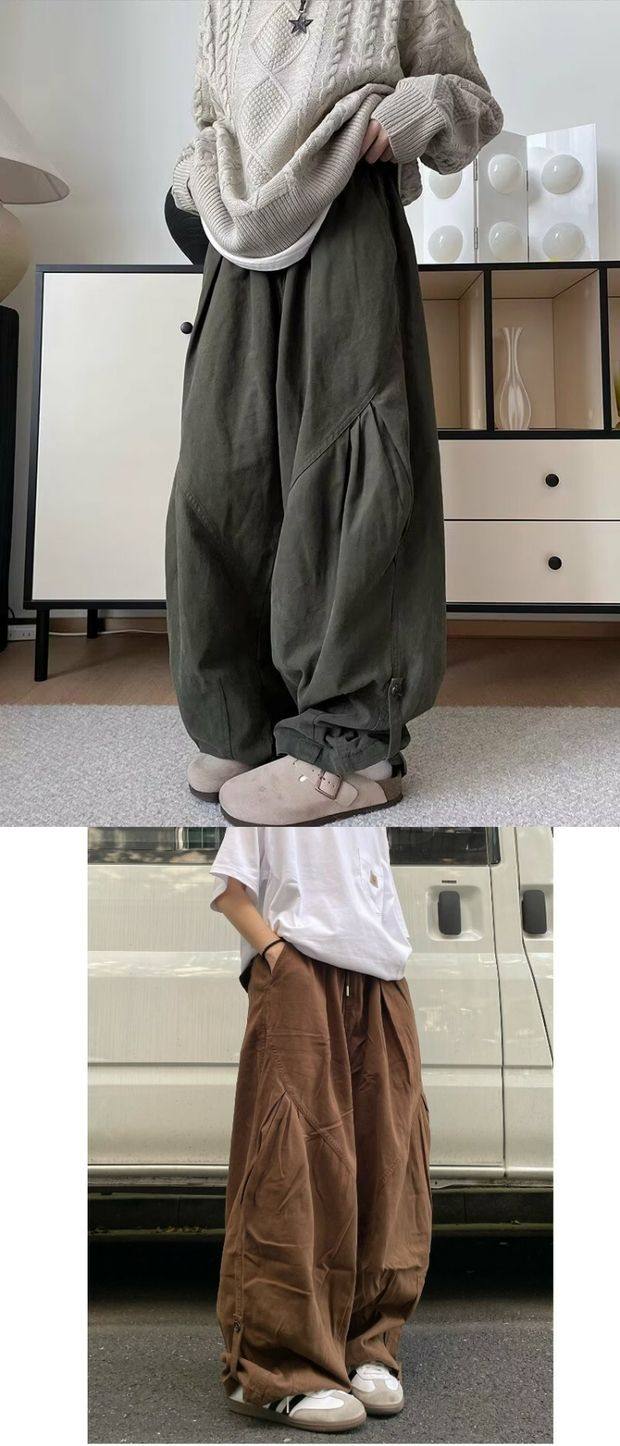 日系覆古阔腿工装裤男褶皱拼接廓形宽松拖地长裤oversize老爹西裤 [Original Page Link]