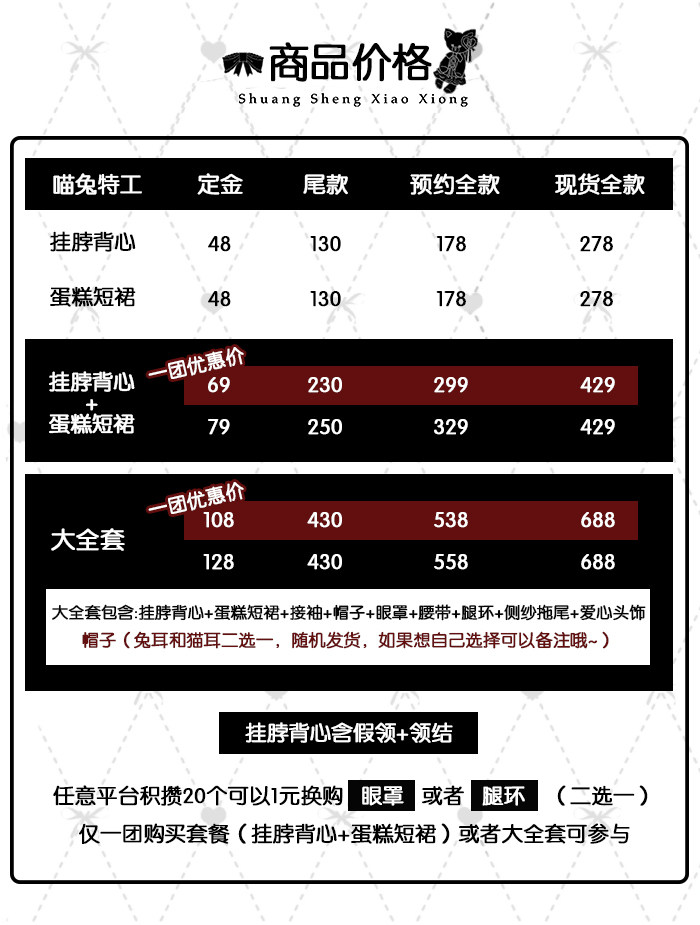 双生小熊原创新款 Lolita喵兔特工 背心搭短裙 洋装 [Original Page Link]