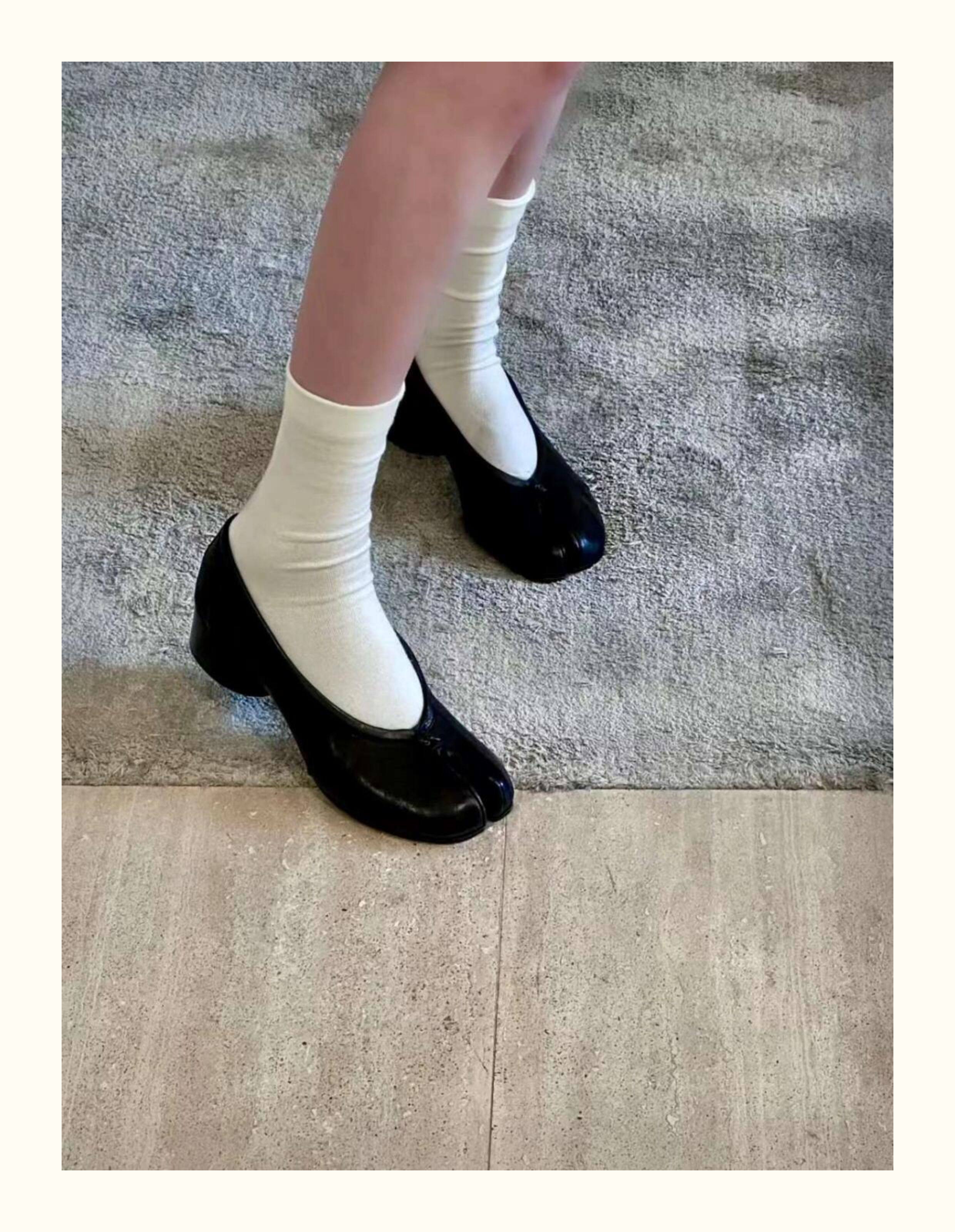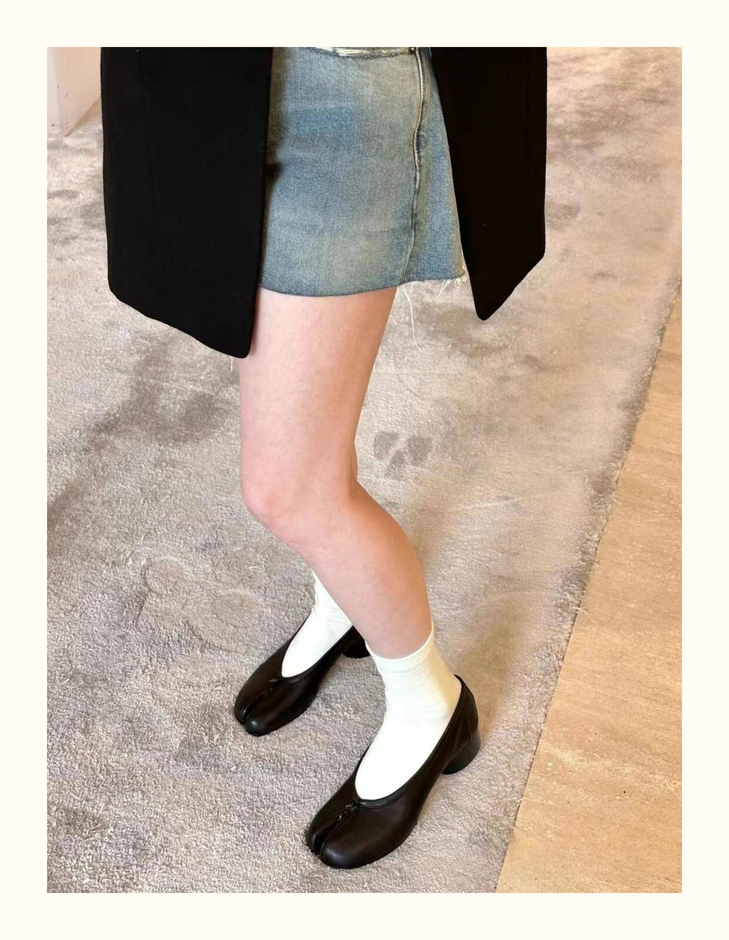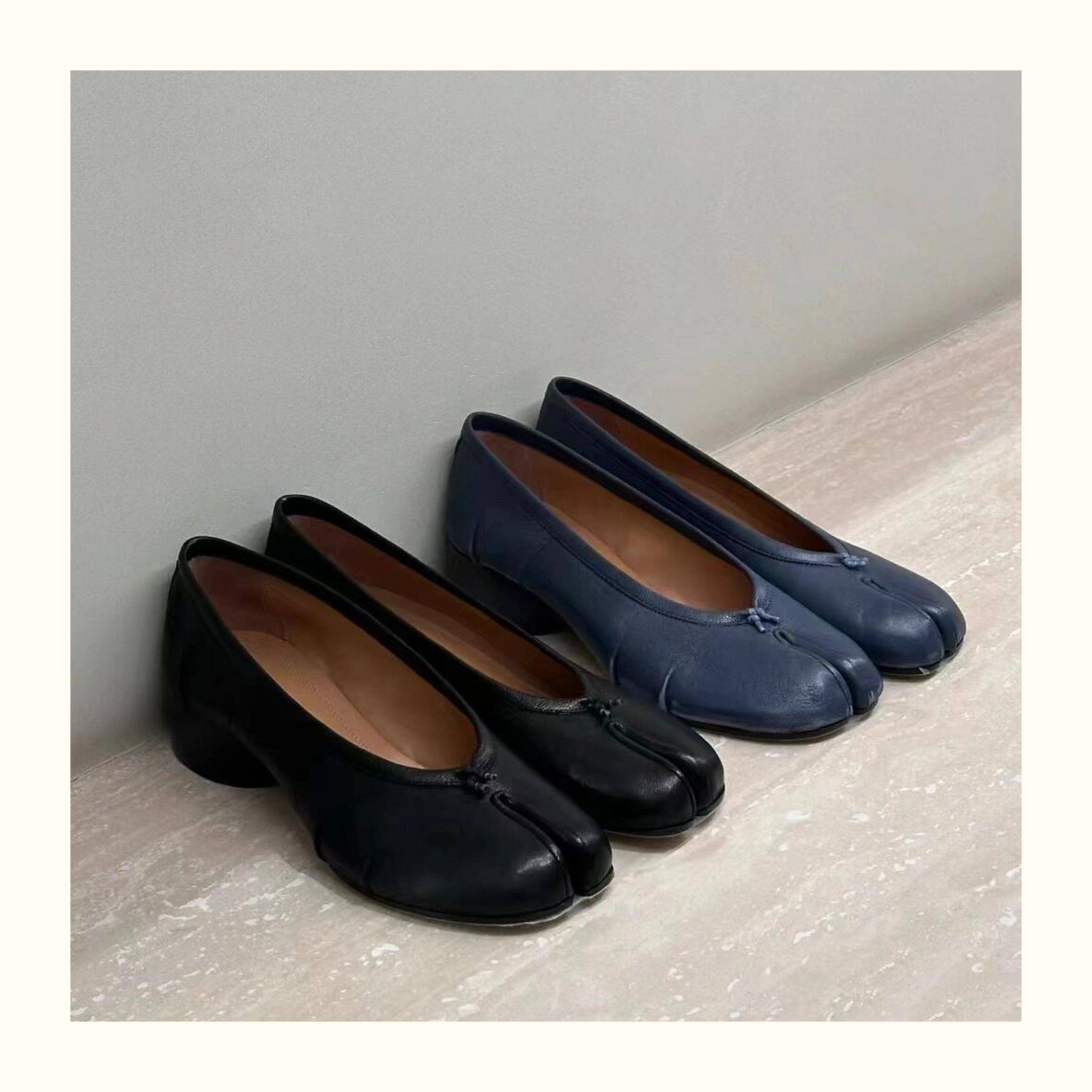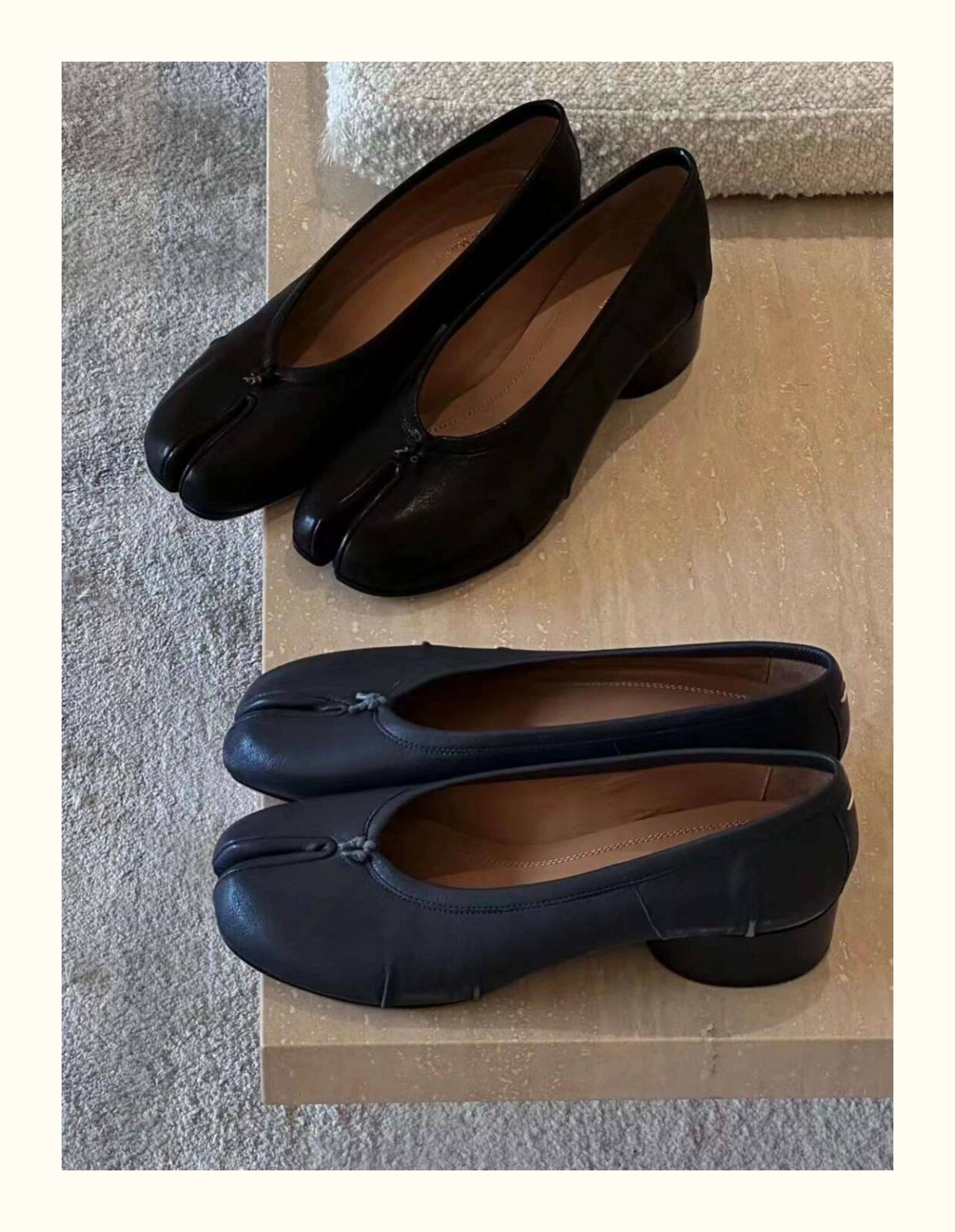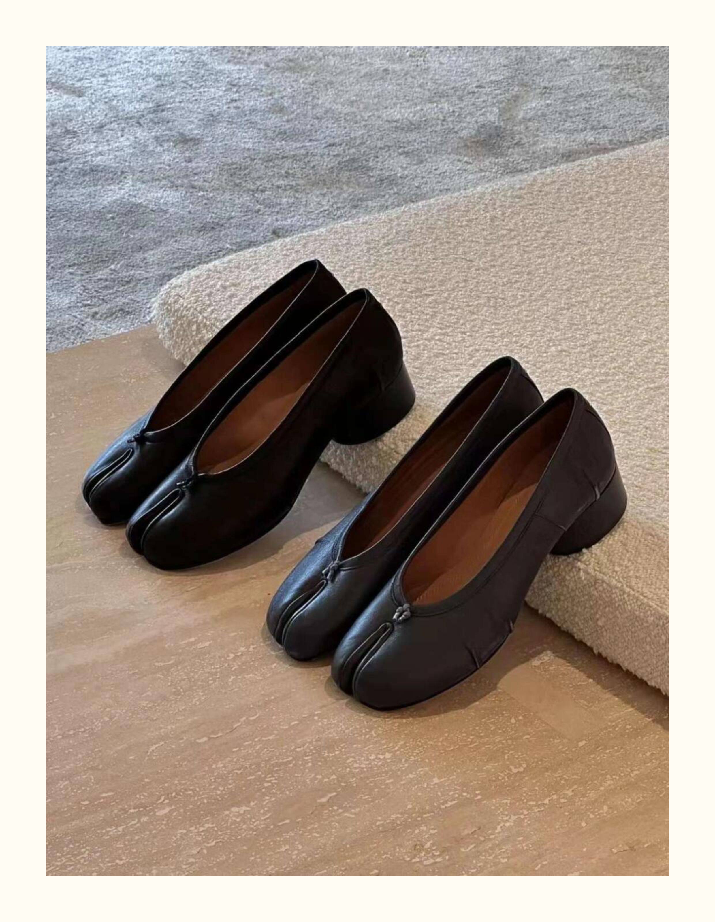 Niche retro split-toe low-cut chunky heel Mary Jane shoes, new spring/summer 2025 style, genuine leather, versatile slip-on design.