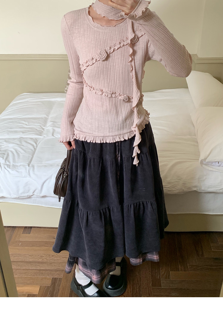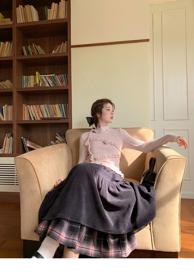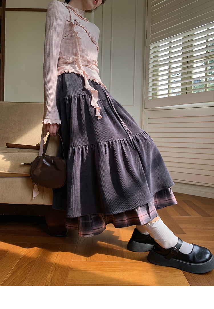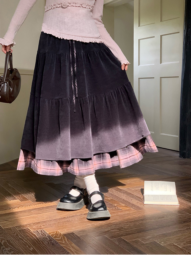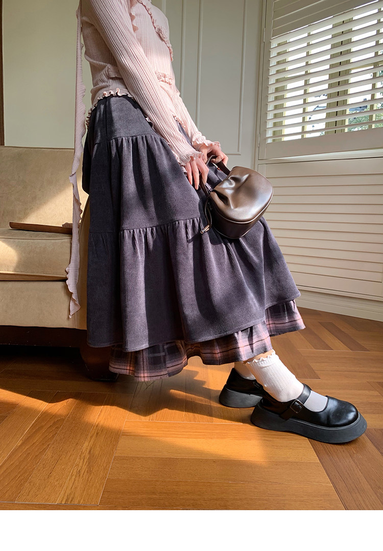 Large Cheese Chenille Pink Plaid Skirt for Plus Size Women, Mid-Length A-line Layered Skirt