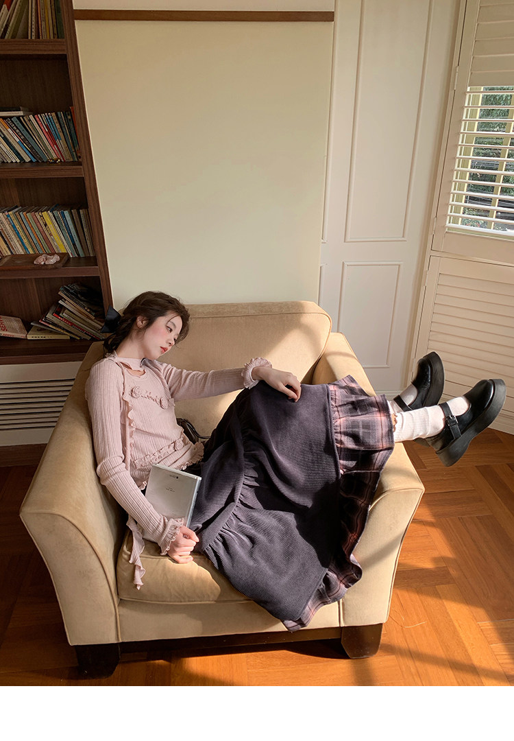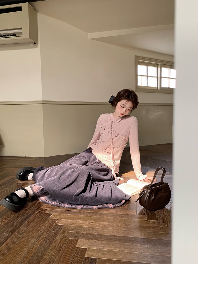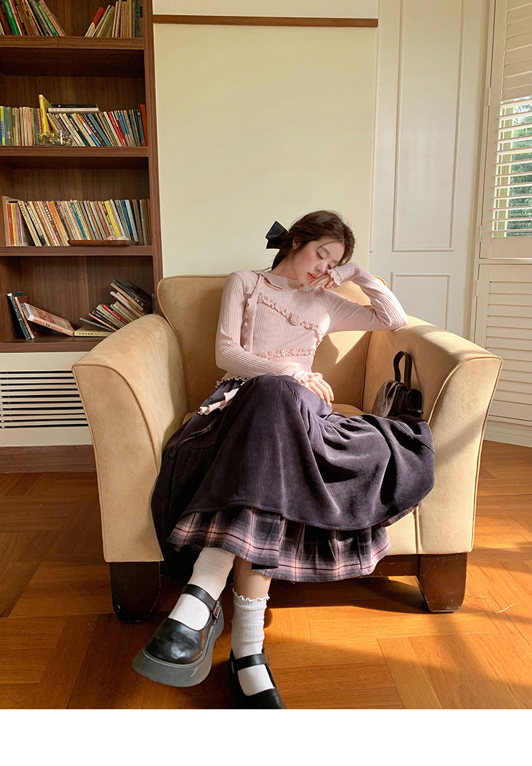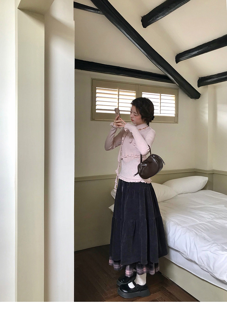 大一口奶酪雪尼尔粉色格纹裙子女士微胖大尺寸毫米中长a字分层长裙 [Original Page Link]