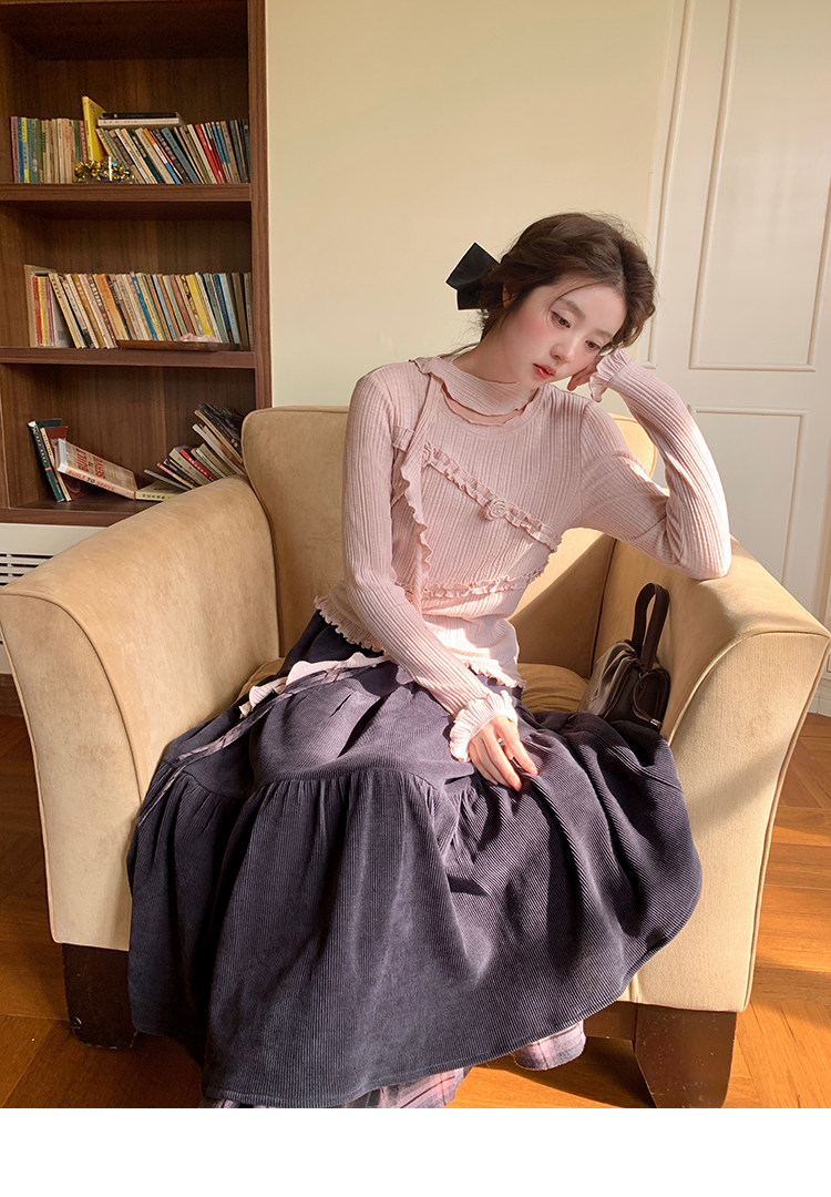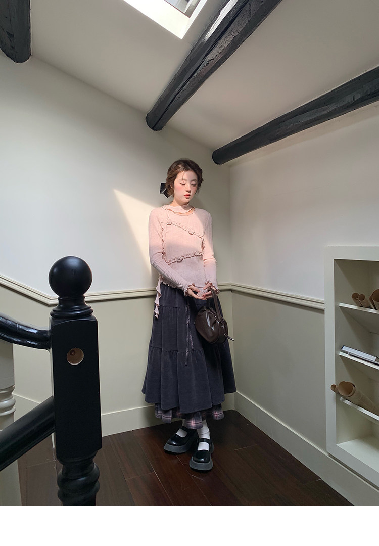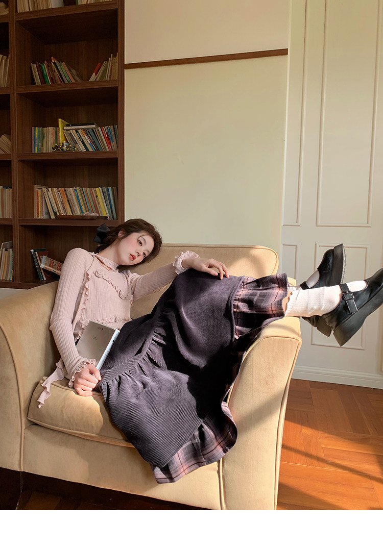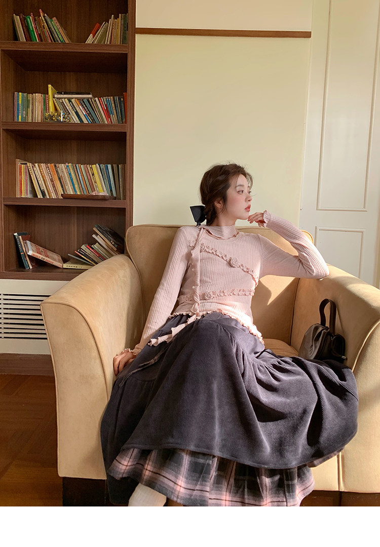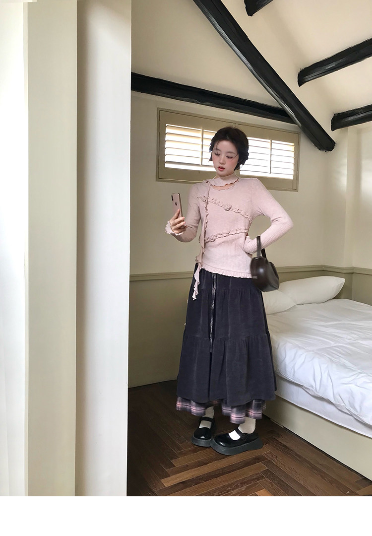 大一口奶酪雪尼尔粉色格纹裙子女士微胖大尺寸毫米中长a字分层长裙 [Original Page Link]