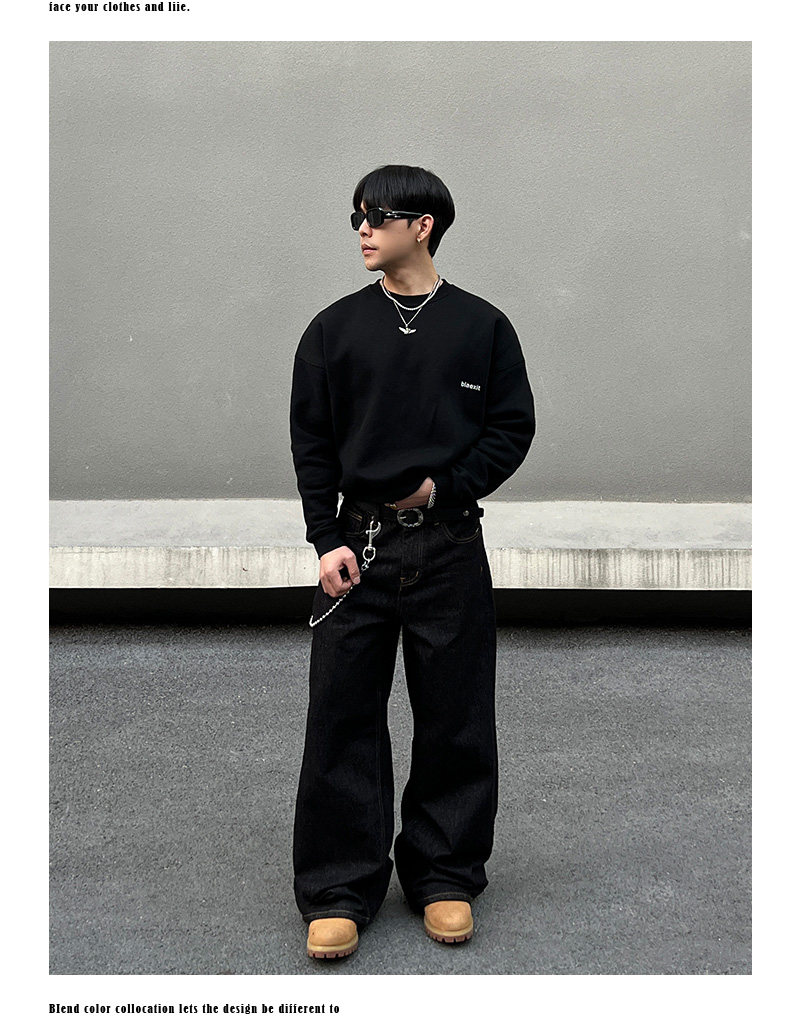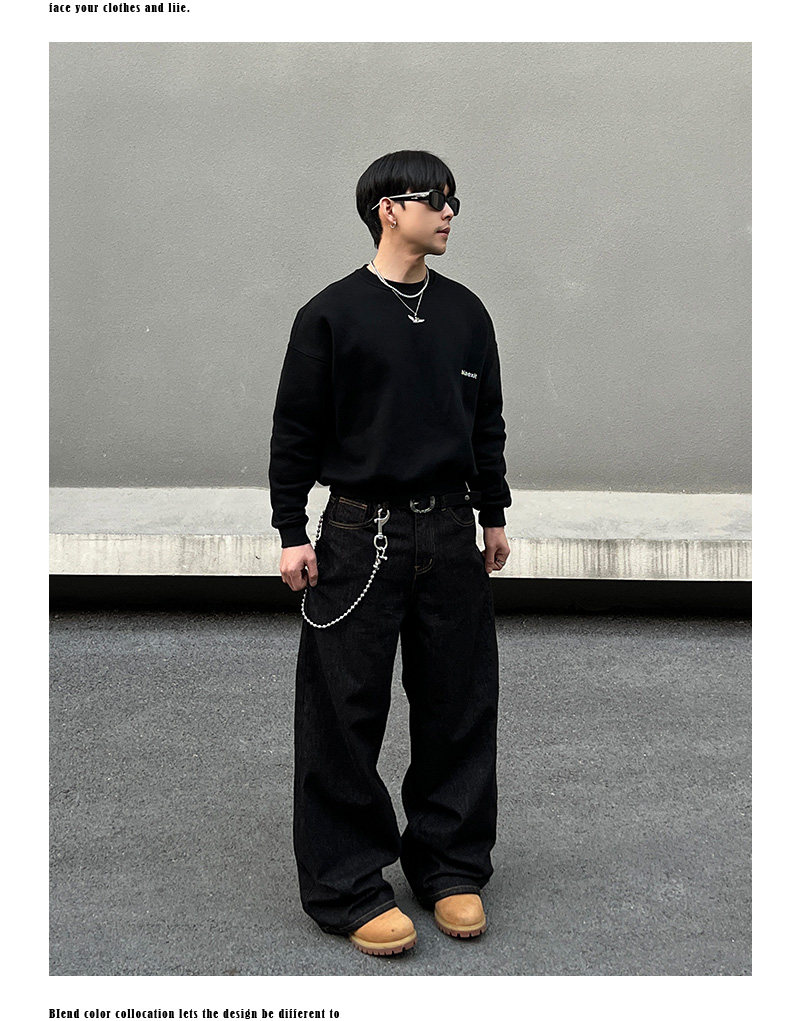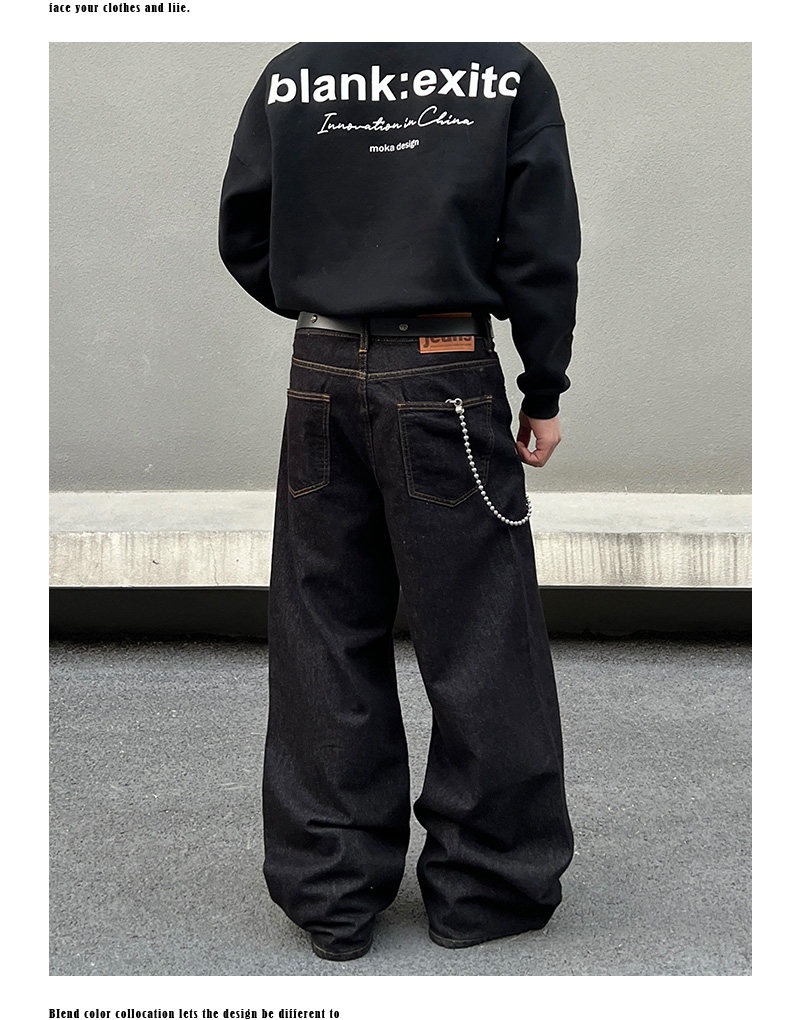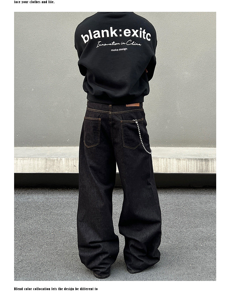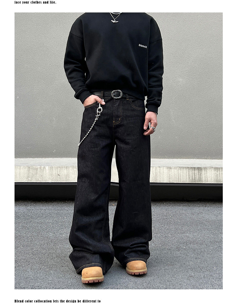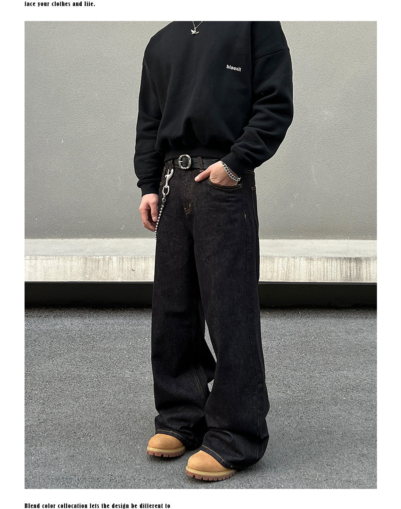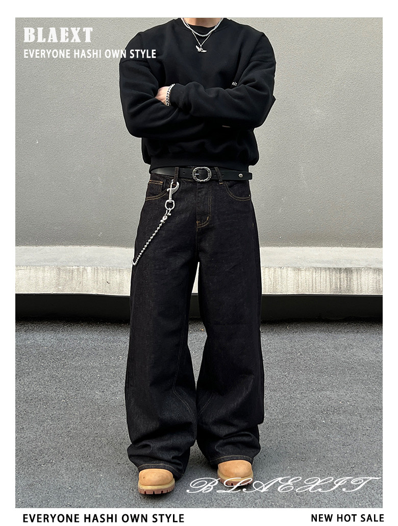 BLAEXIT 美式丹宁黑色牛仔裤男覆古baggy直筒宽松休闲原色阔腿裤 [Original Page Link]