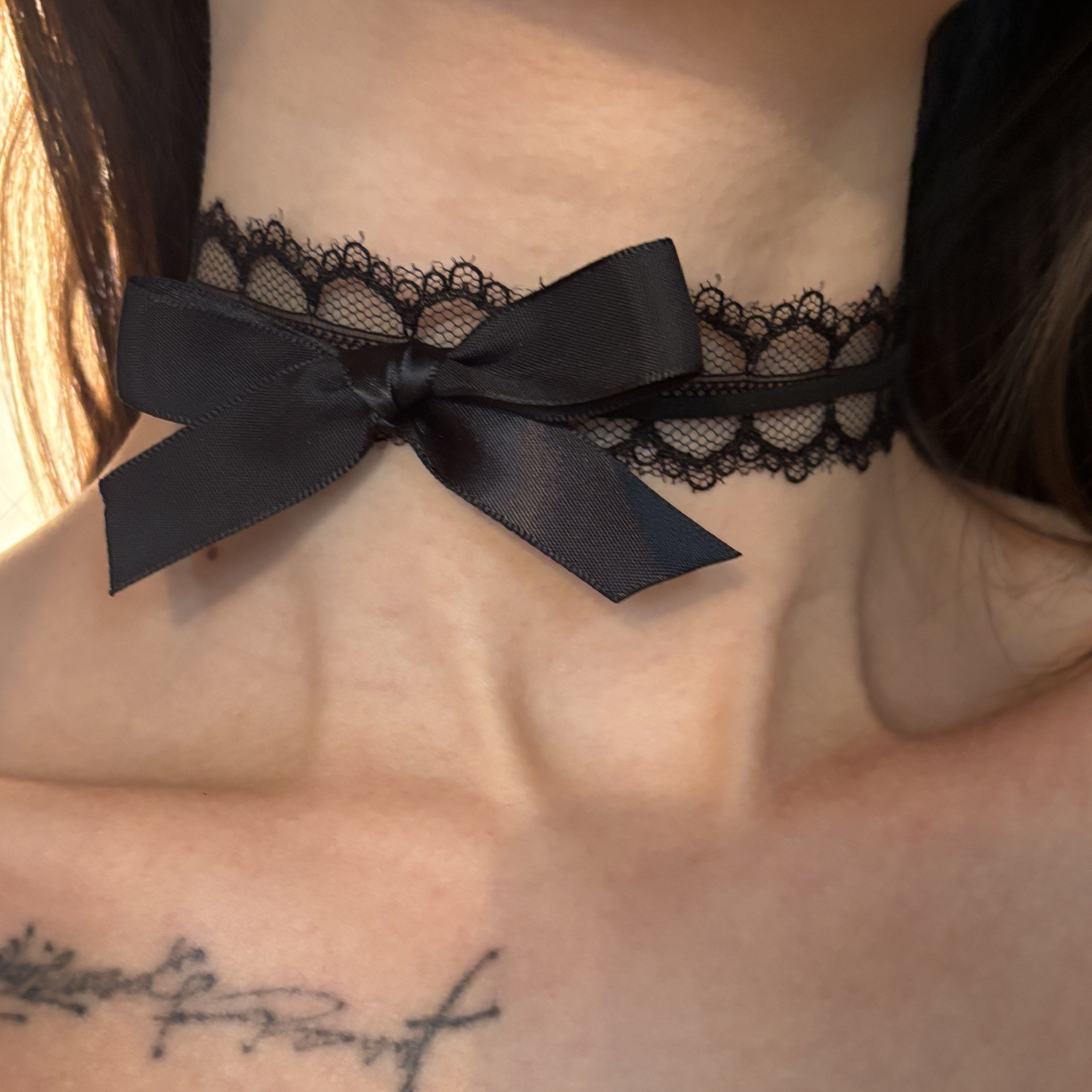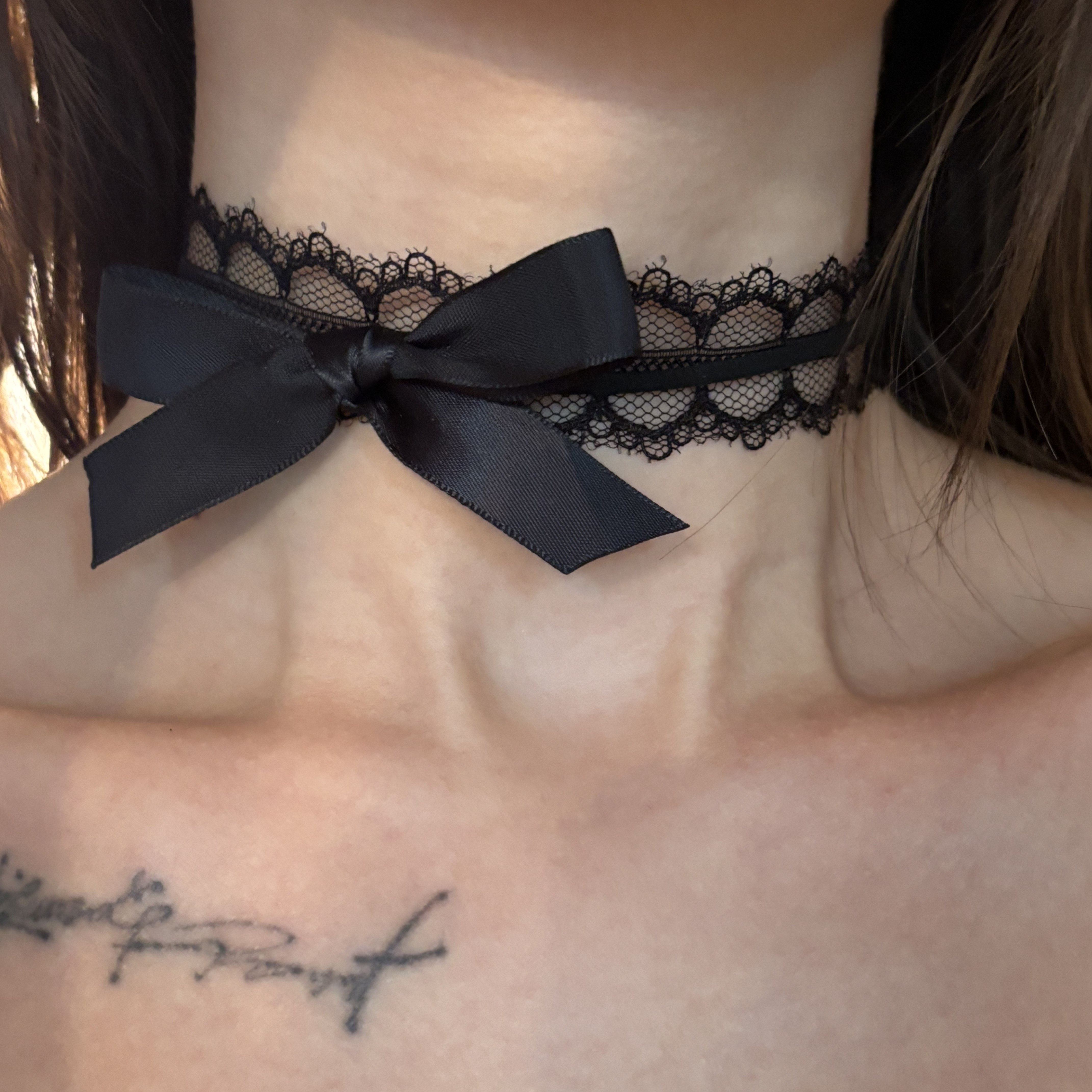 [楼哈哈]纯欲风黑色蝴蝶结蕾丝choker女颈带项圈脖子配饰锁骨炼 [Original Page Link]