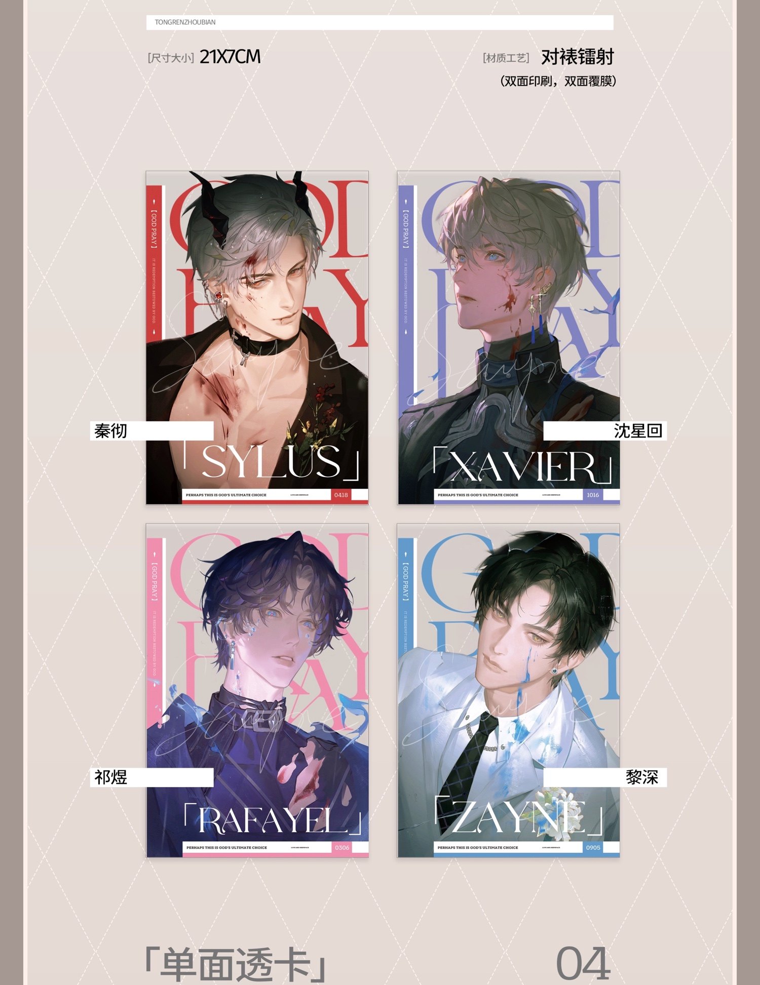 【神祈】恋与深空同人周边非官方徽章明信片逆向镭射票秦彻沈星回 [Original Page Link]