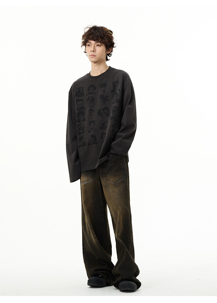 伟朗店摇滚肖像印花长袖t恤男士覆古街头美式宽松帅气上衣情侣潮 [Original Page Link]