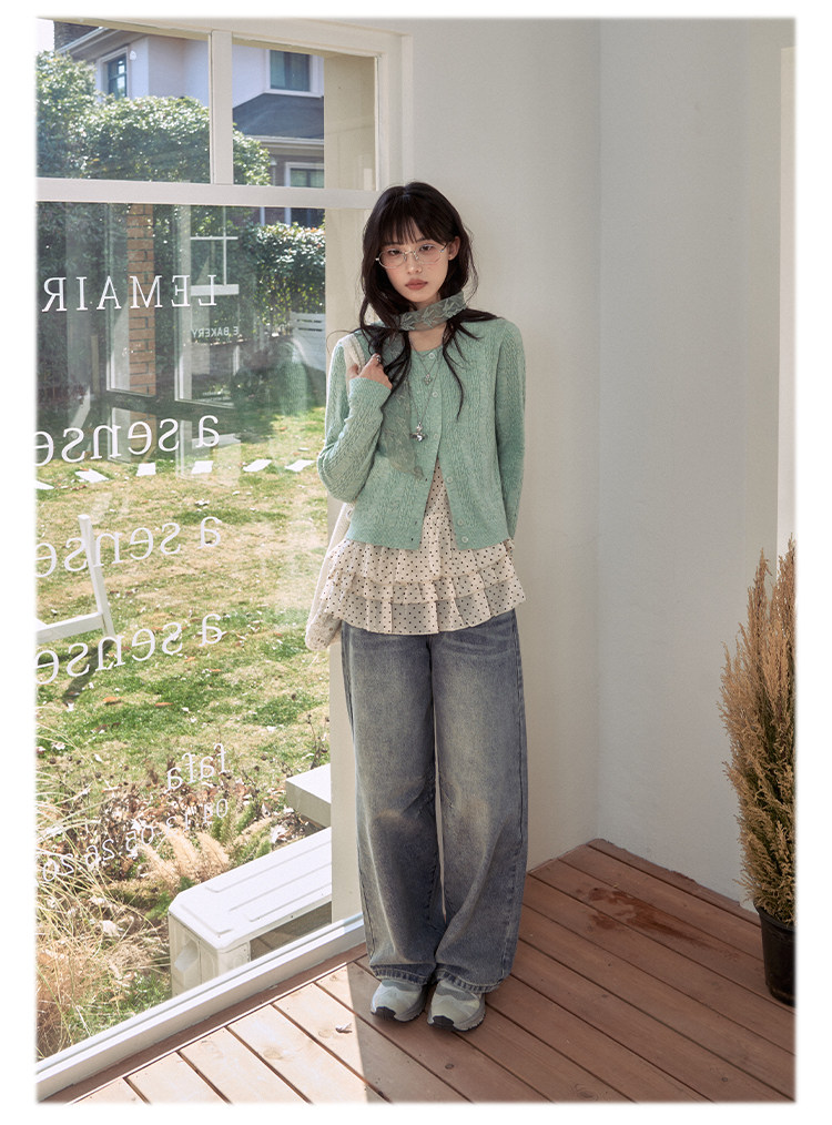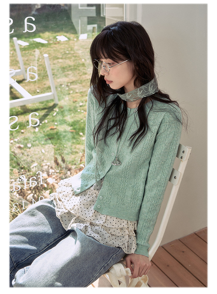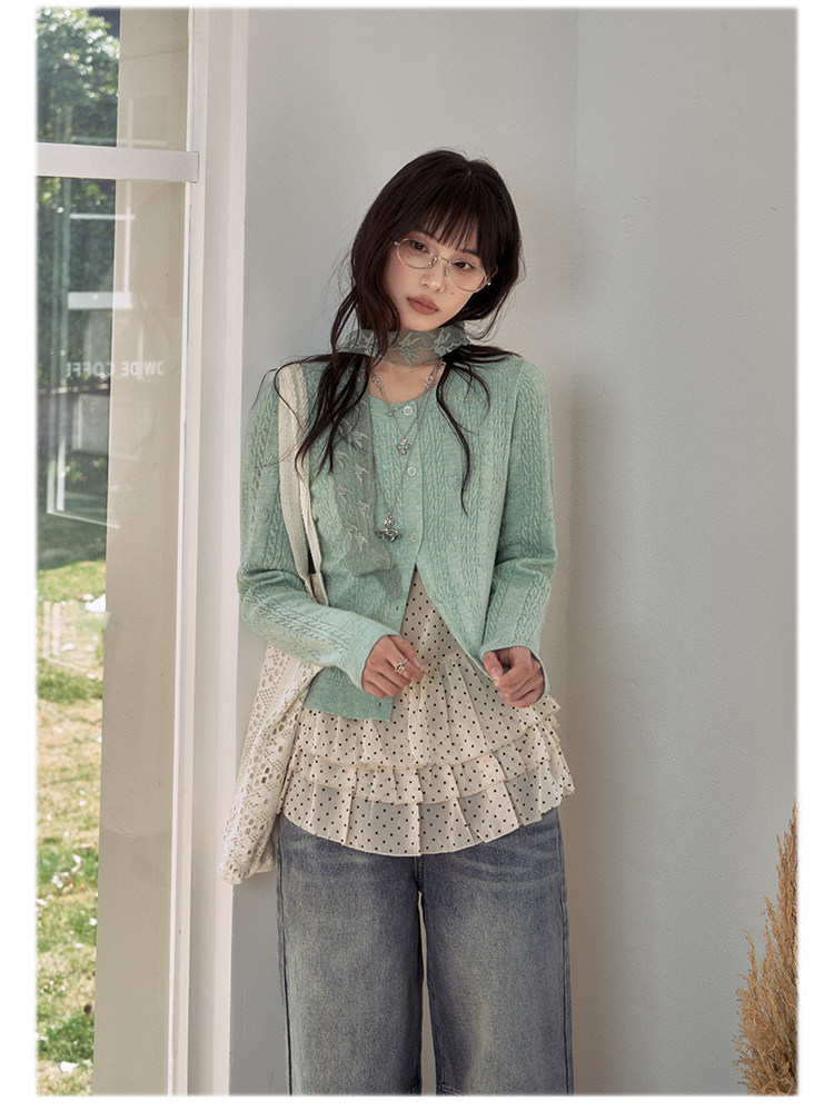京子梗豆叶缺口风铃四叶三叶草薄荷绿色针织开衫薄新款女装早春 [Original Page Link]