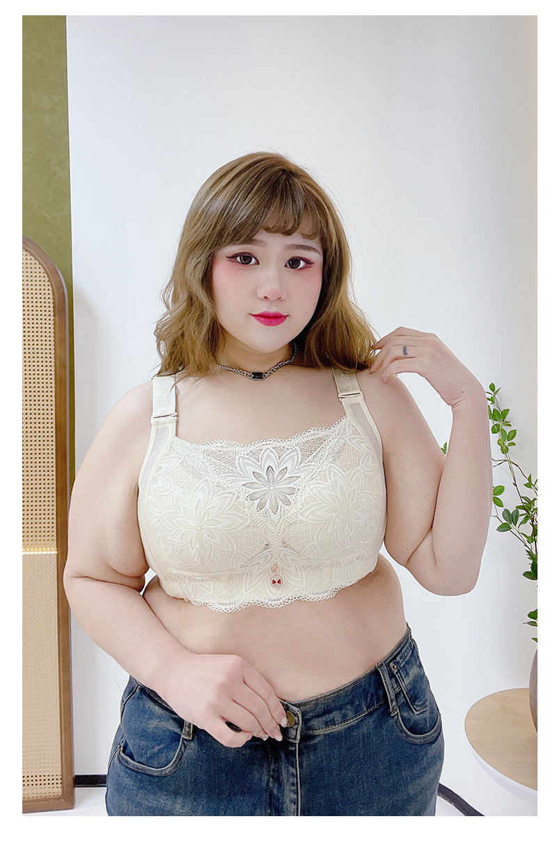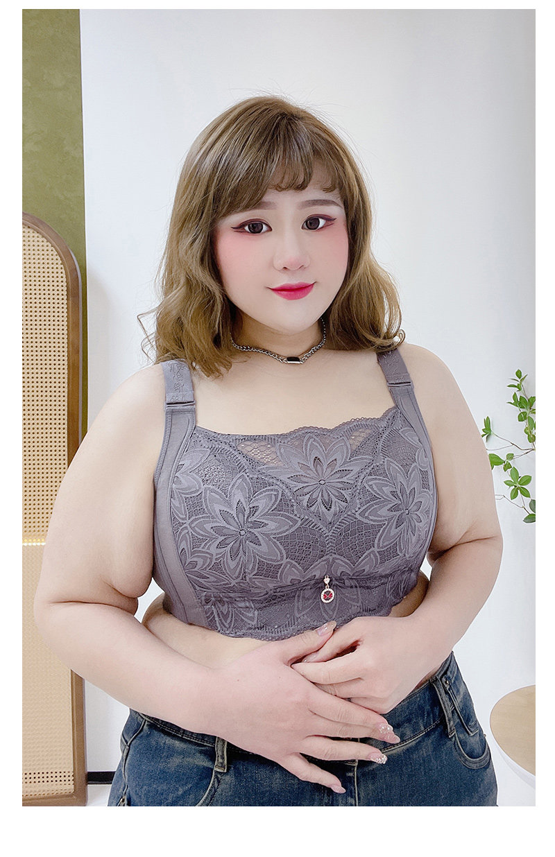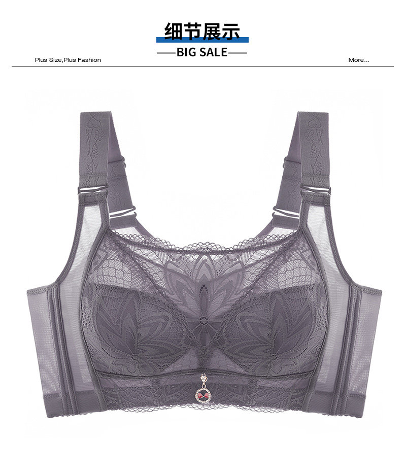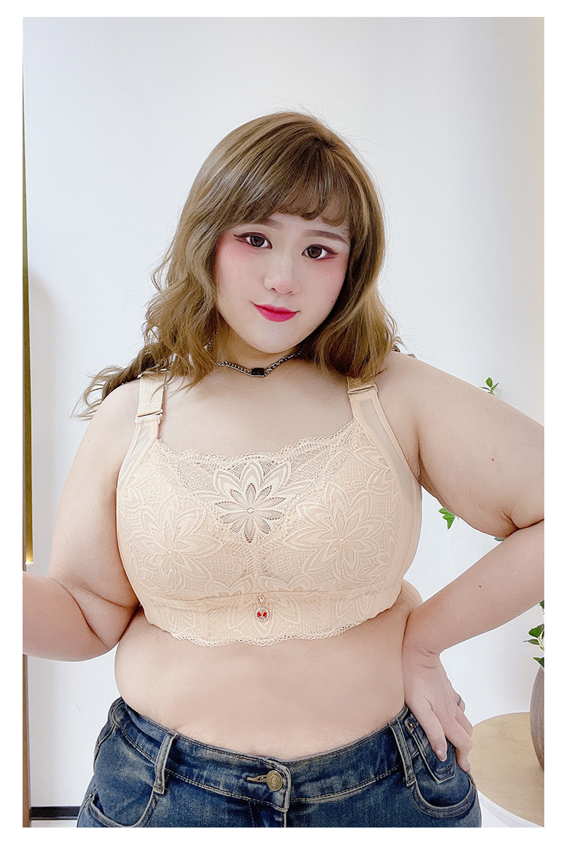 Seven-row hook-and-eye closure full cup bra to support side breasts, plus-size women's clothing, flattering for large busts, thin lace lingerie.
