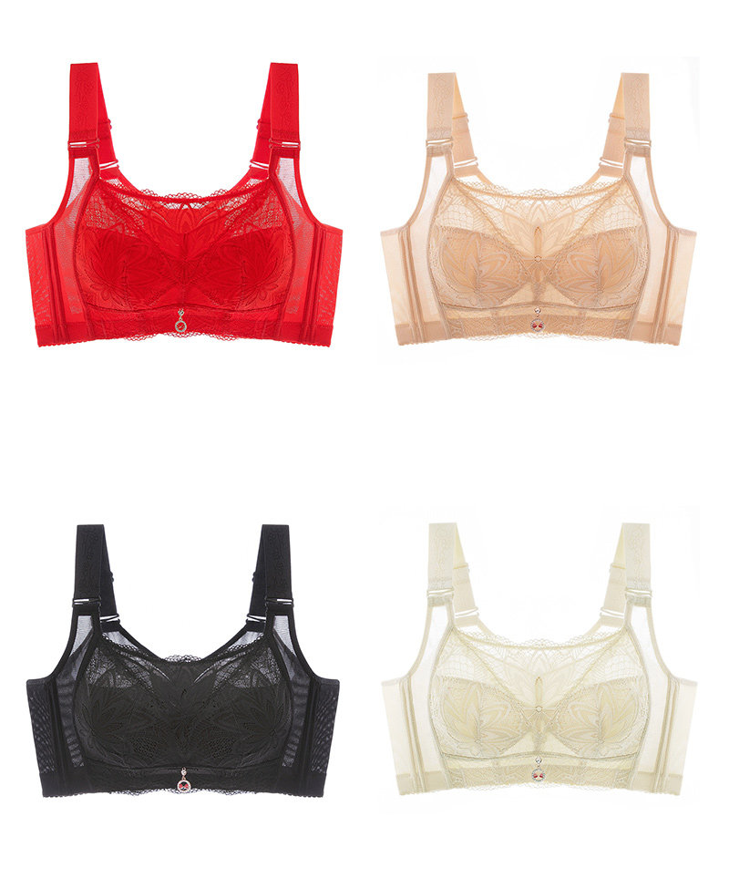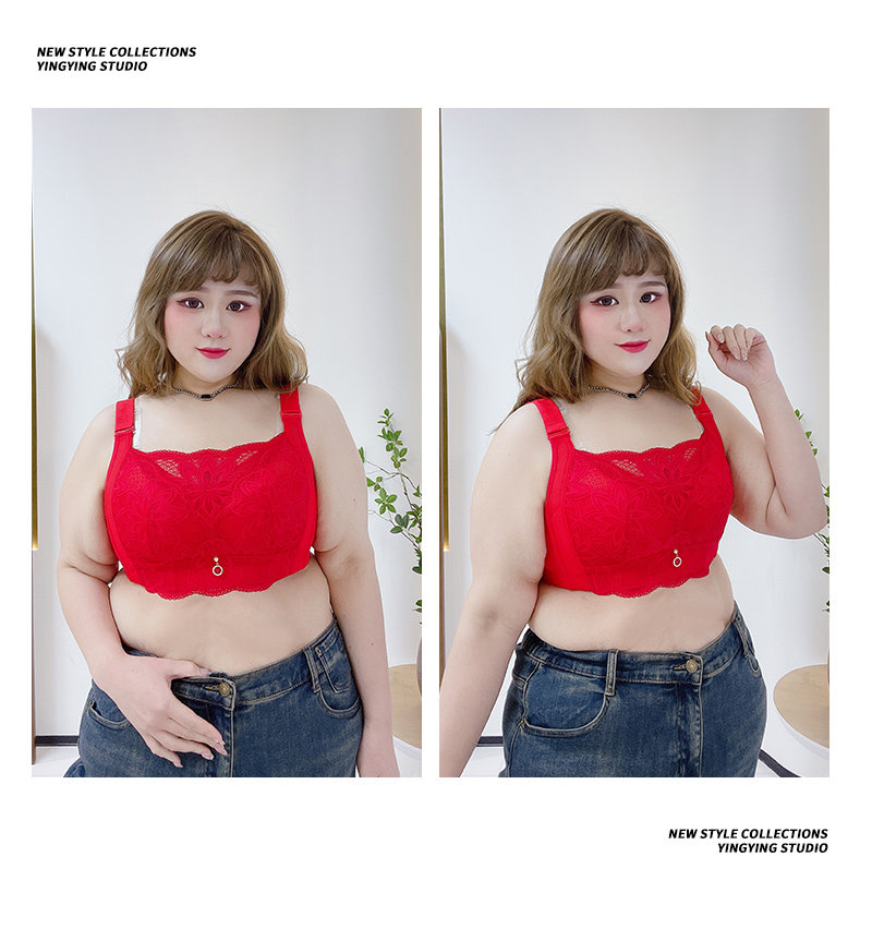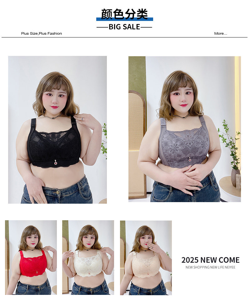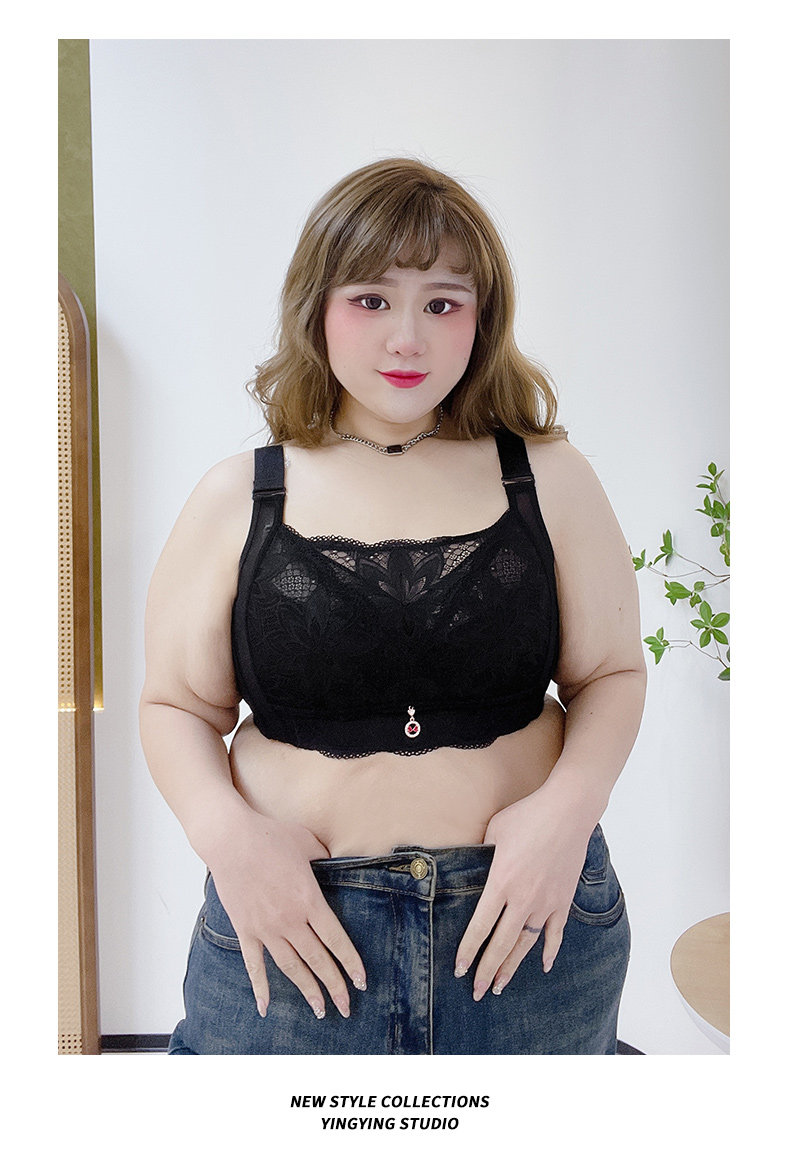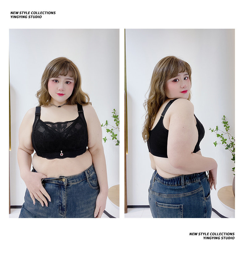 Seven-row hook-and-eye closure full cup bra to support side breasts, plus-size women's clothing, flattering for large busts, thin lace lingerie.