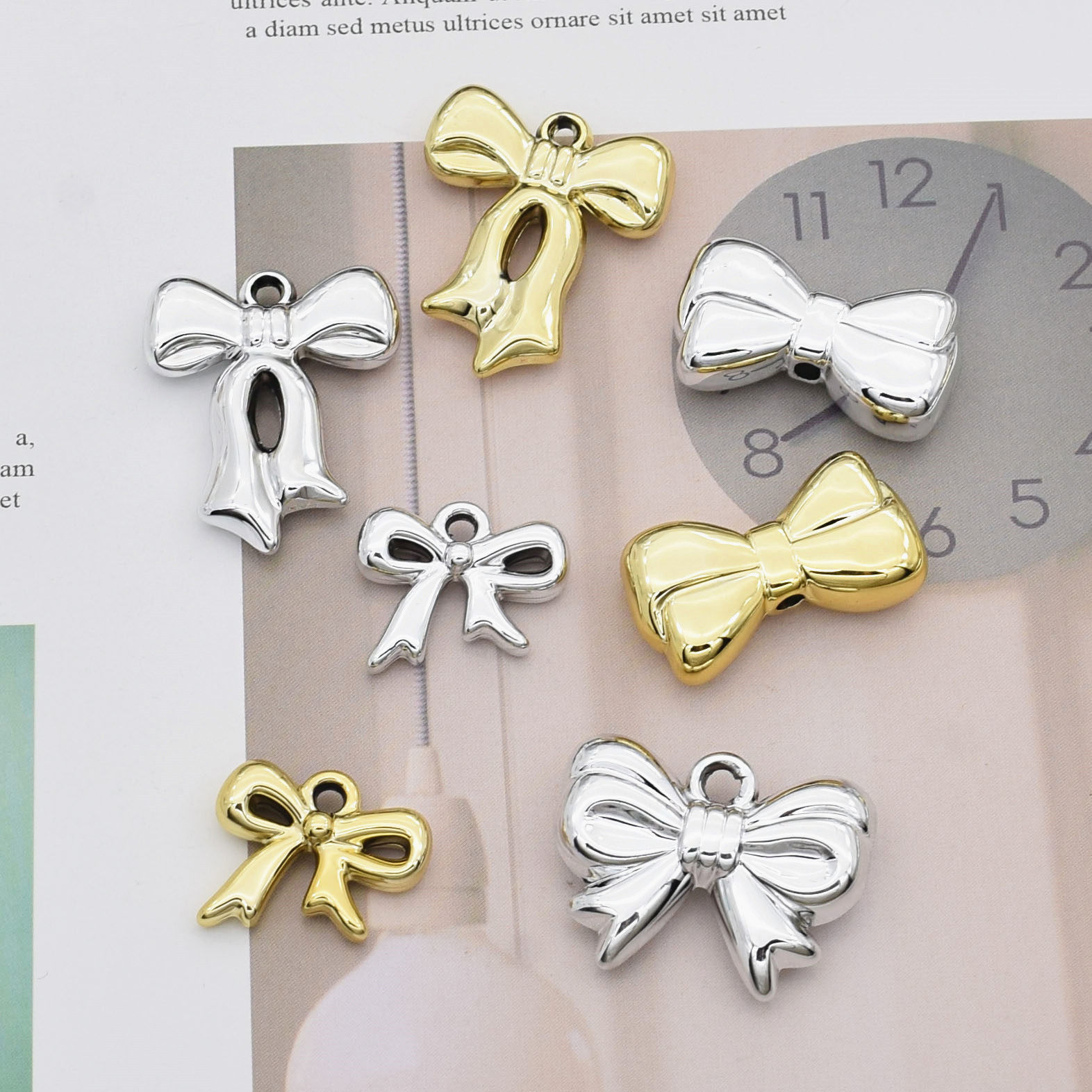 电镀UV蝴蝶结领结 金属色DIY自制串珠手机钥匙扣链条材料散珠配饰 [Original Page Link]