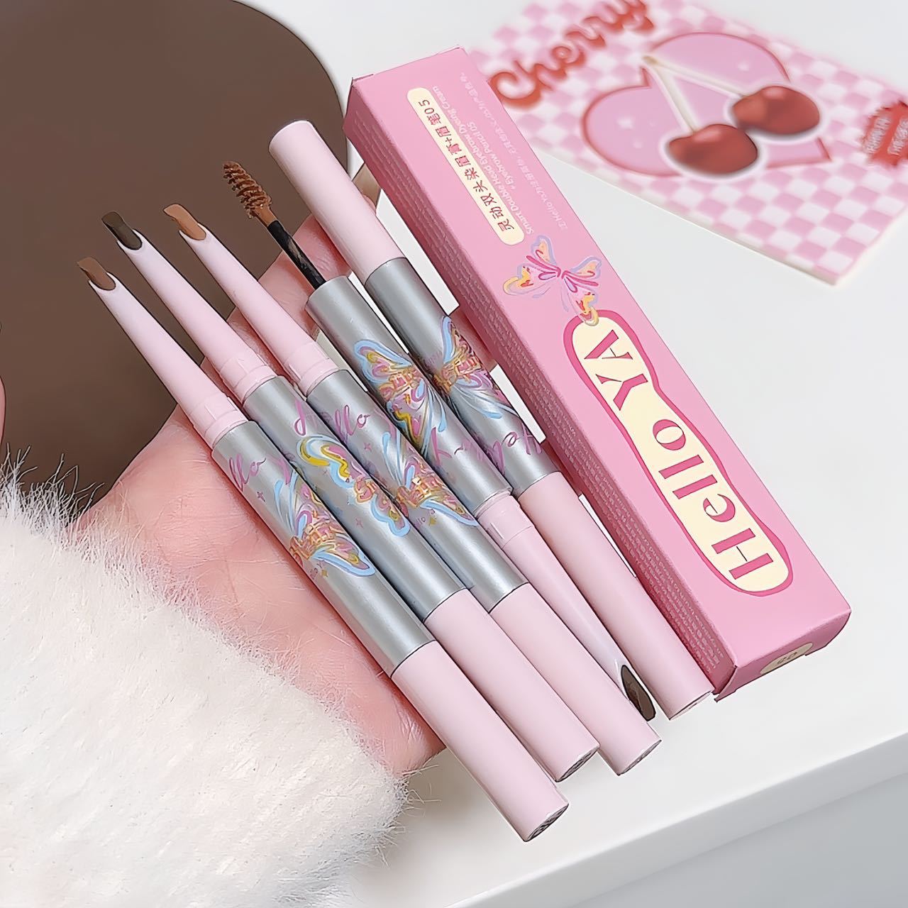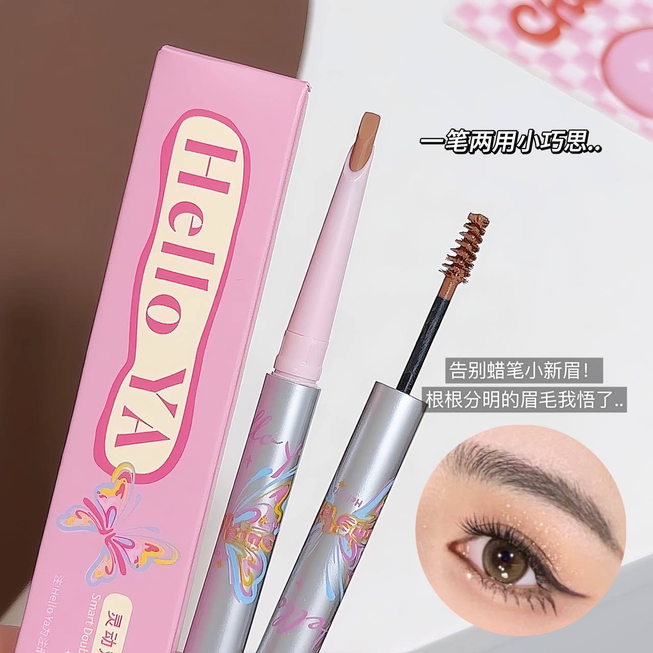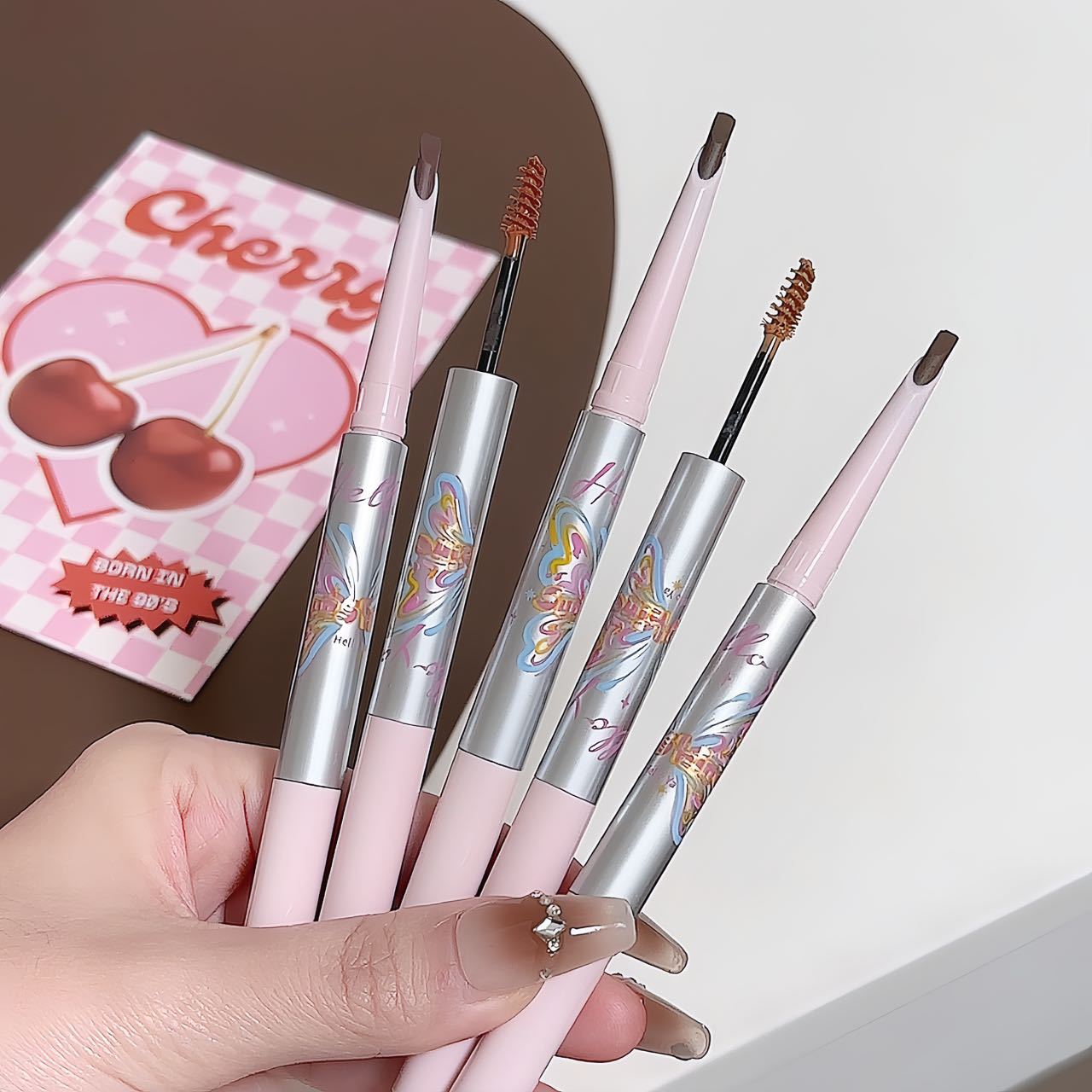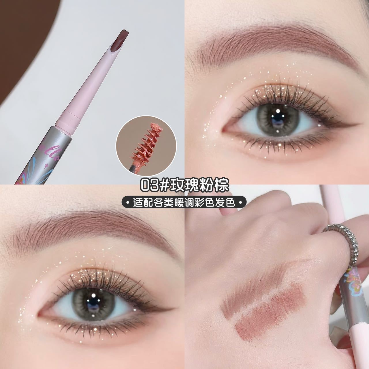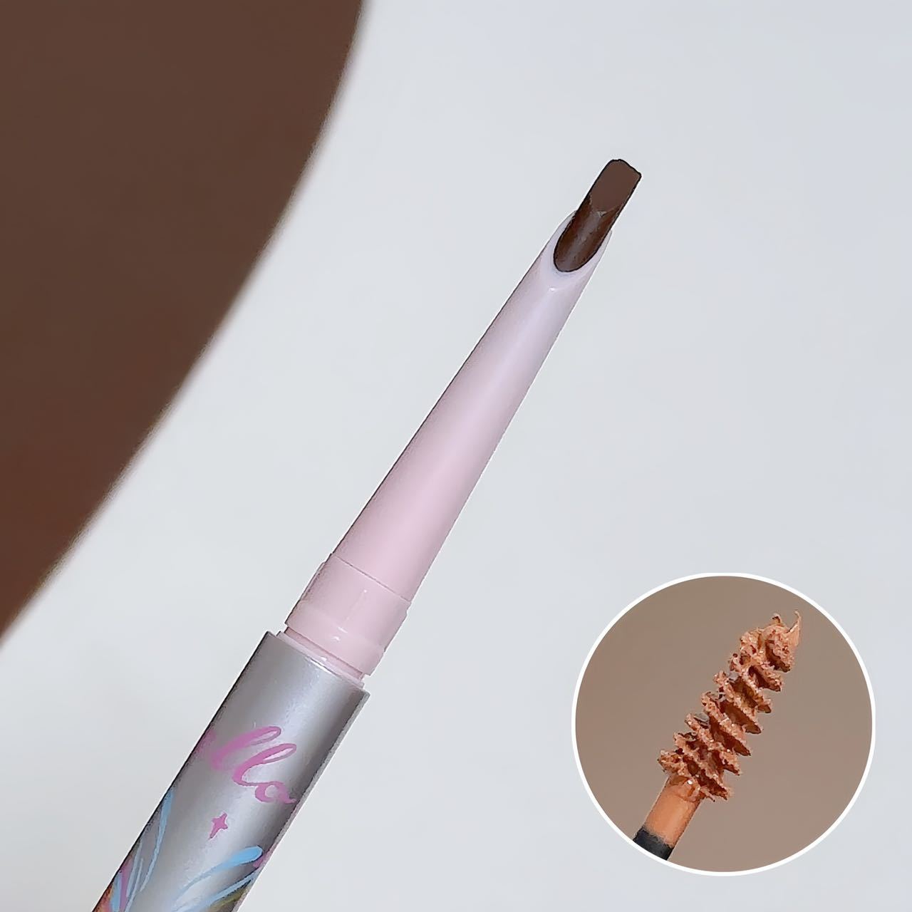 Dual-ended brow pencil and brow mascara, 2-in-1 long-lasting, natural light pinkish-brown, waterproof, and fade-resistant for natural-looking brows.