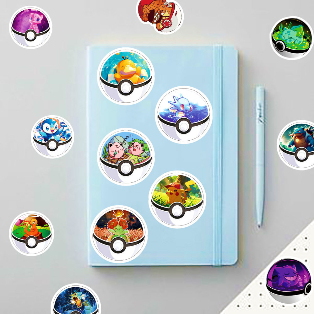 50 Cute Cartoon Pokémon Poké Ball Stickers for Decorating Luggage, Water Bottles, and Guitars (Waterproof)