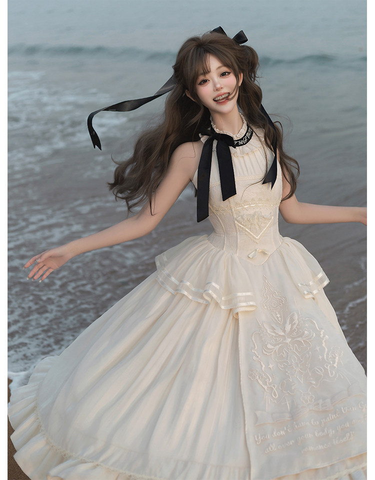 【自由信笺三团定金】Snow雪野一梦cla系挂颈绣花长裙lolita [Original Page Link]