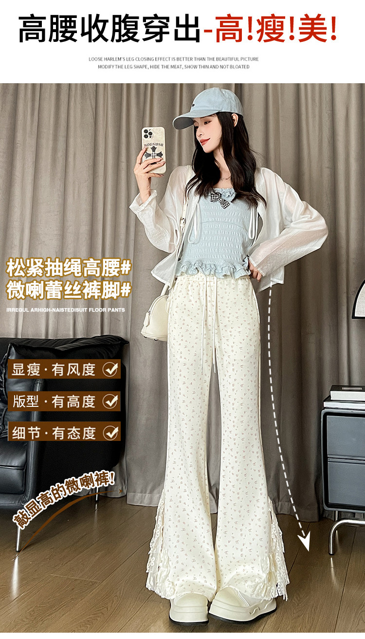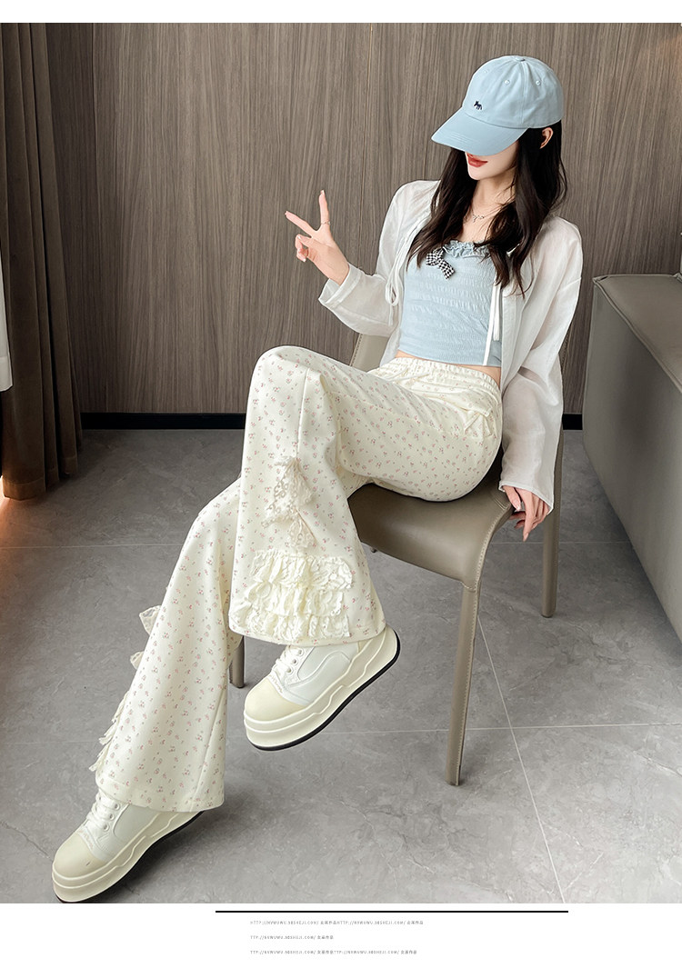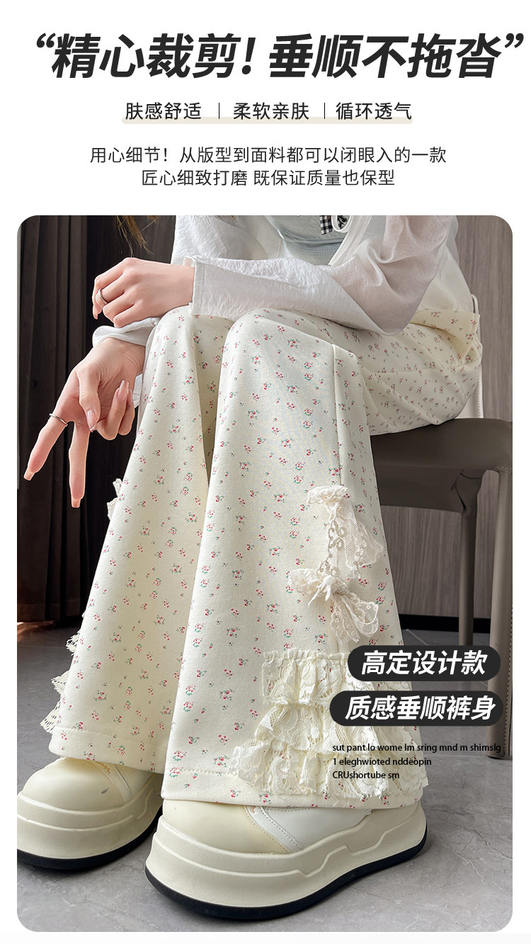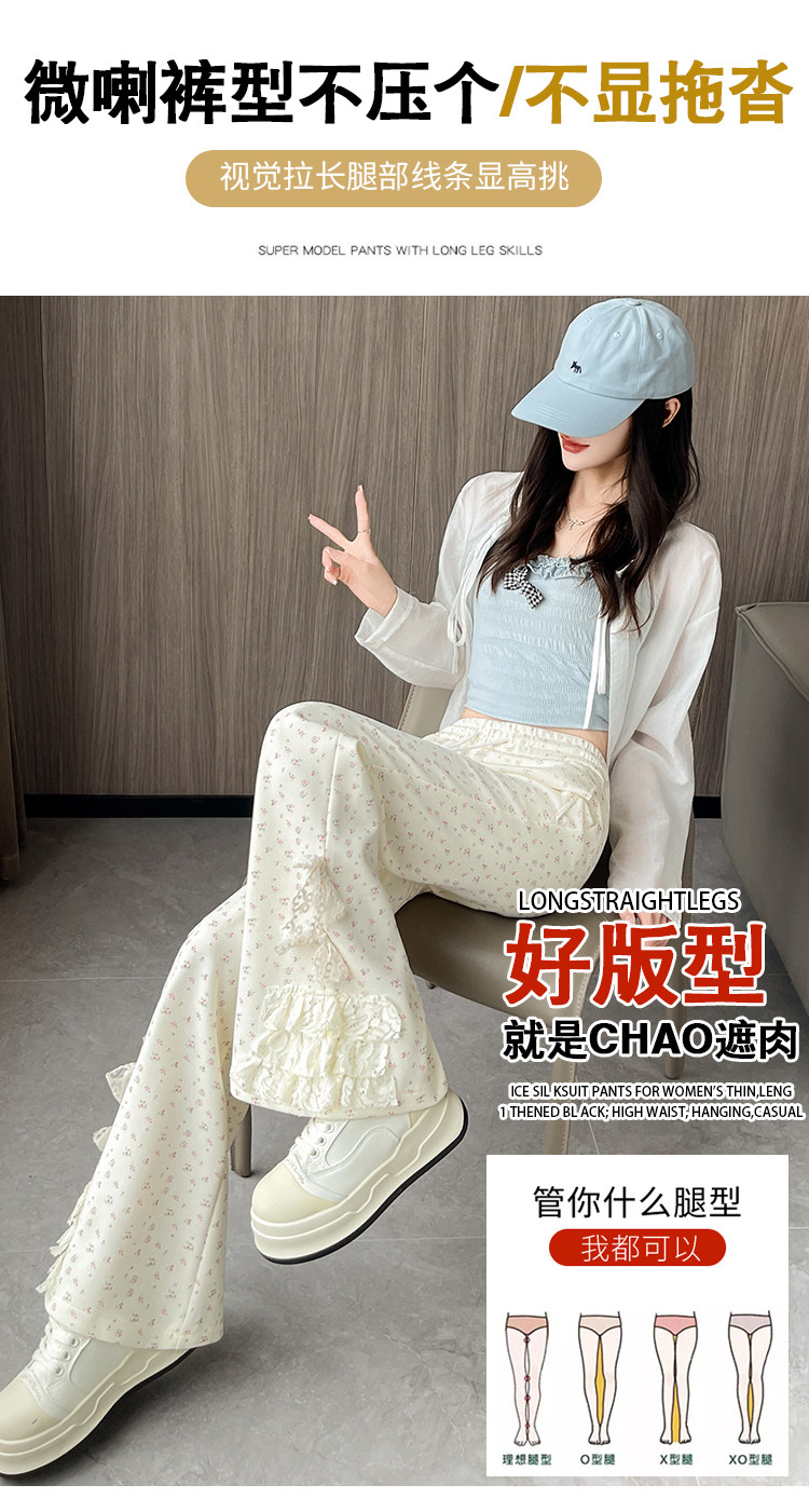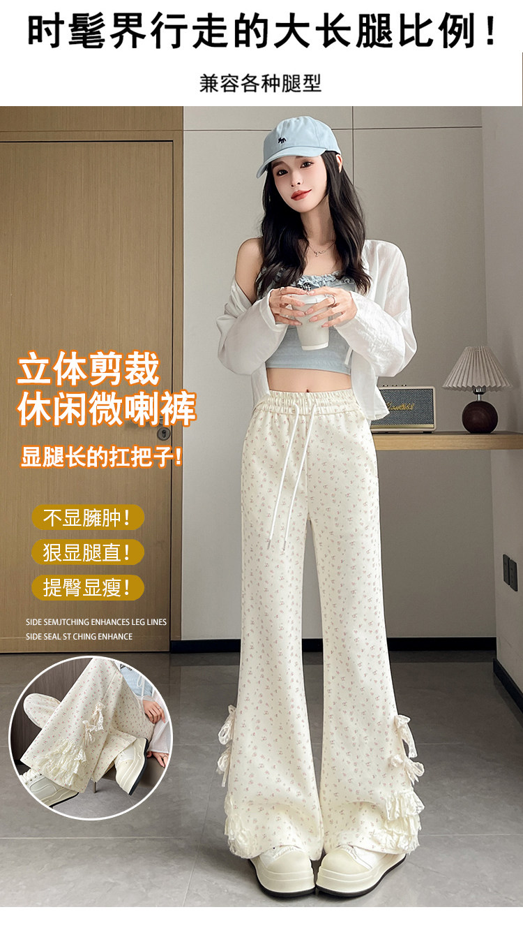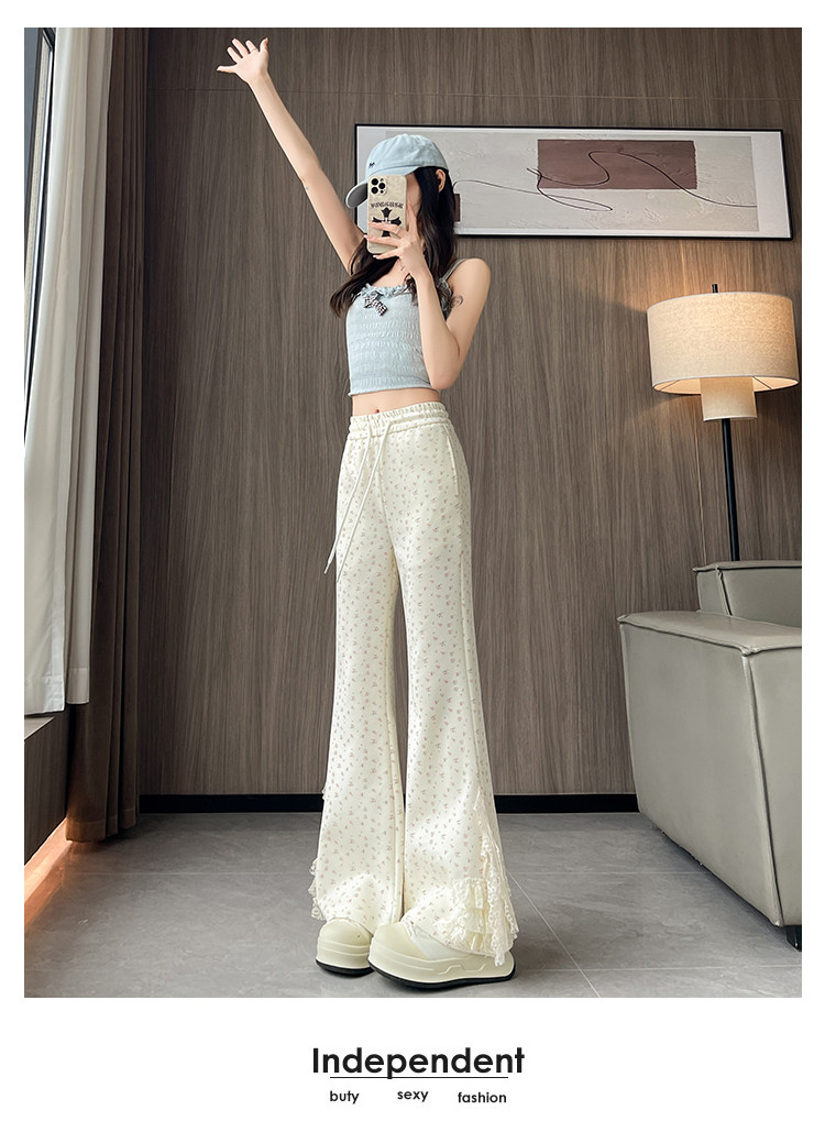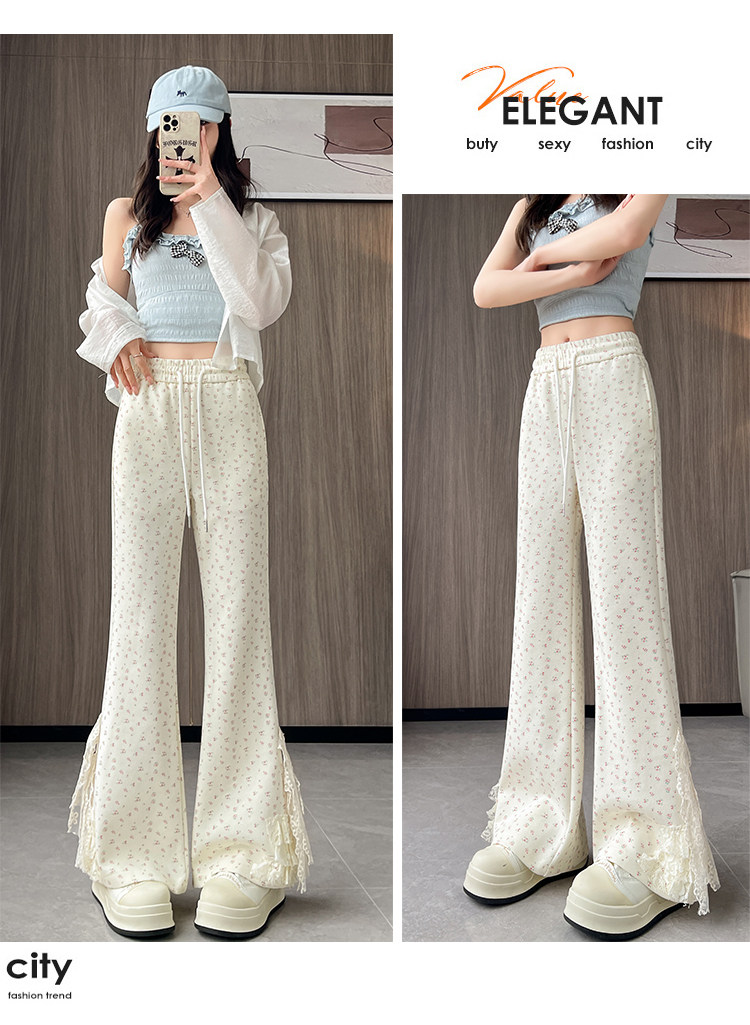 美式碎花蕾丝拼接微喇叭裤女夏季2025新款高腰显瘦马蹄休闲拖地裤 [Original Page Link]
