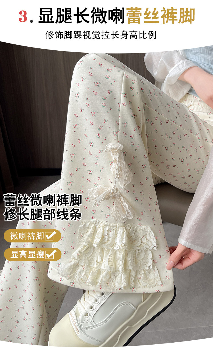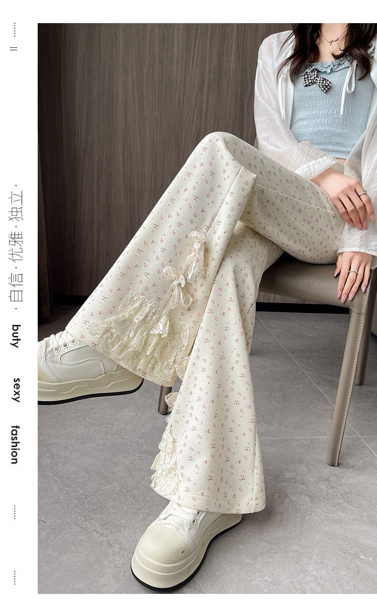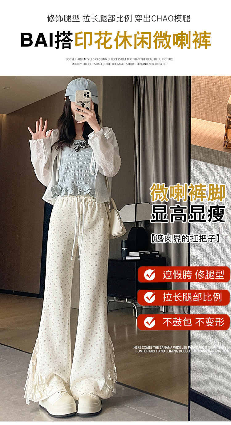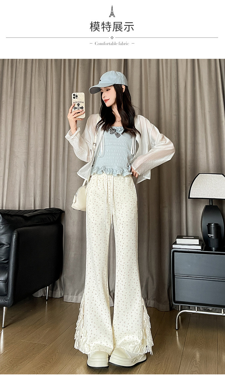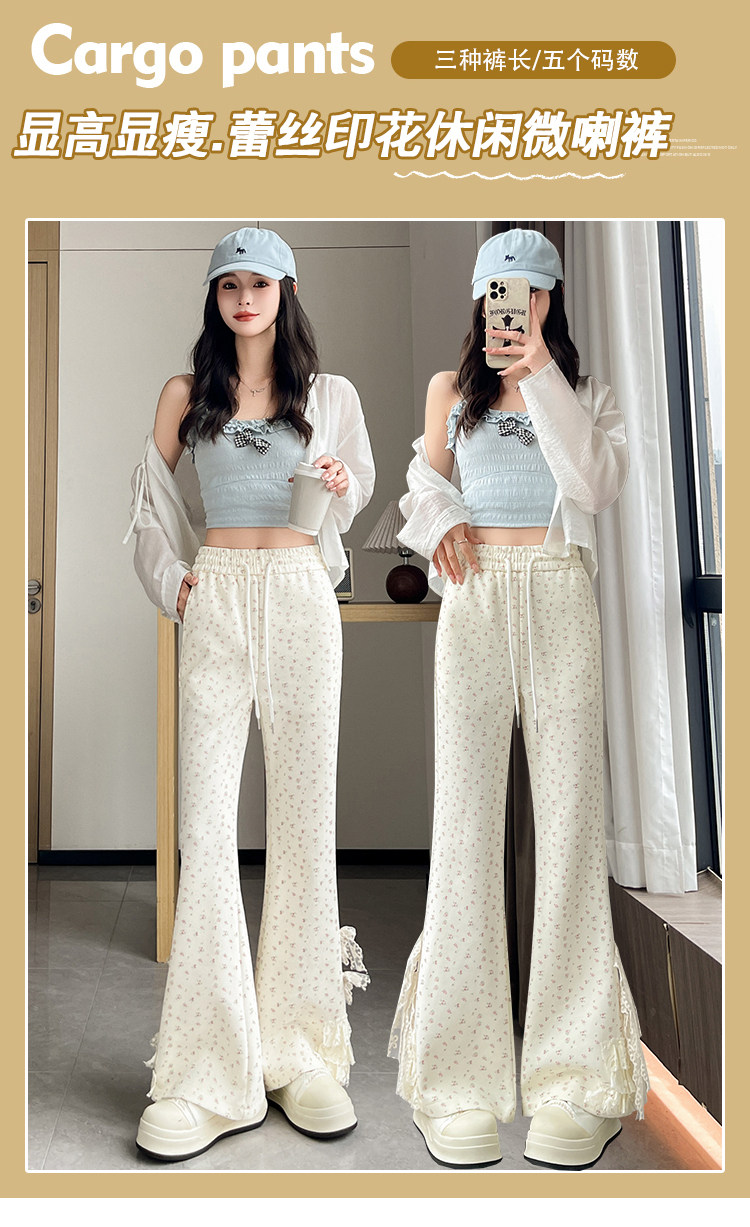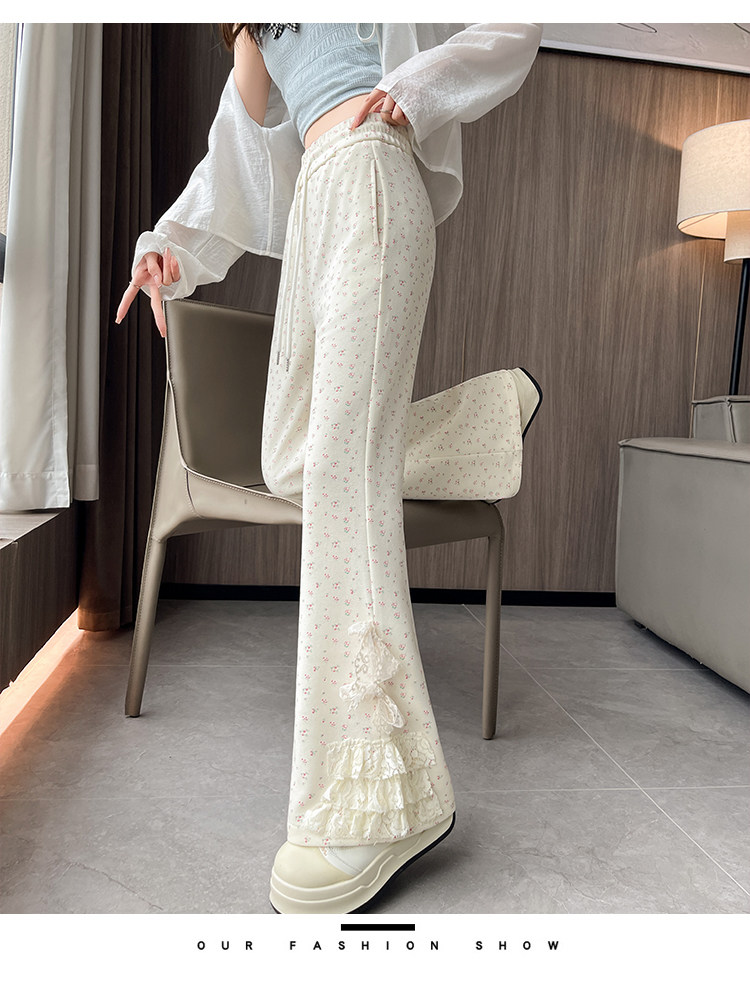 美式碎花蕾丝拼接微喇叭裤女夏季2025新款高腰显瘦马蹄休闲拖地裤 [Original Page Link]