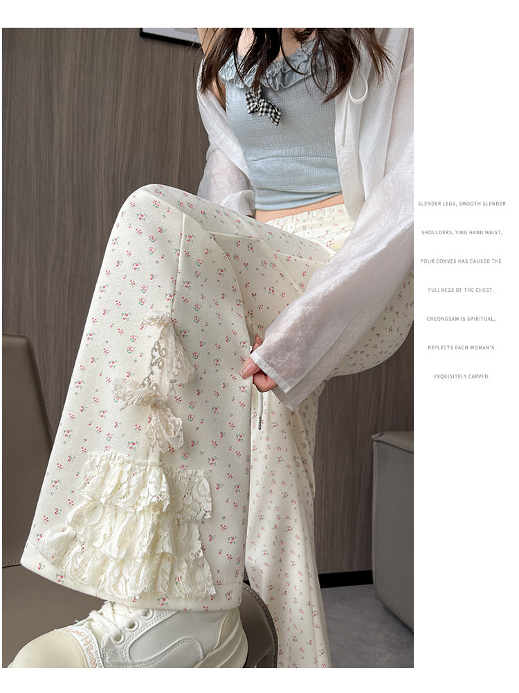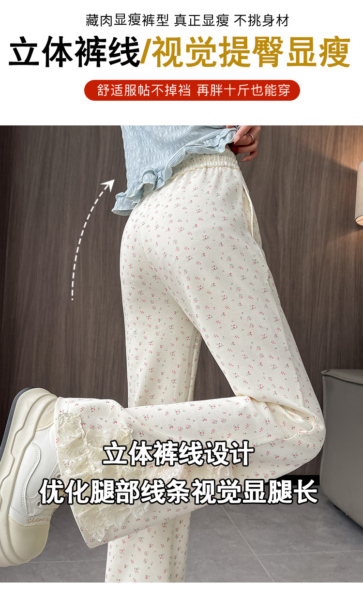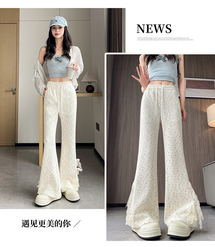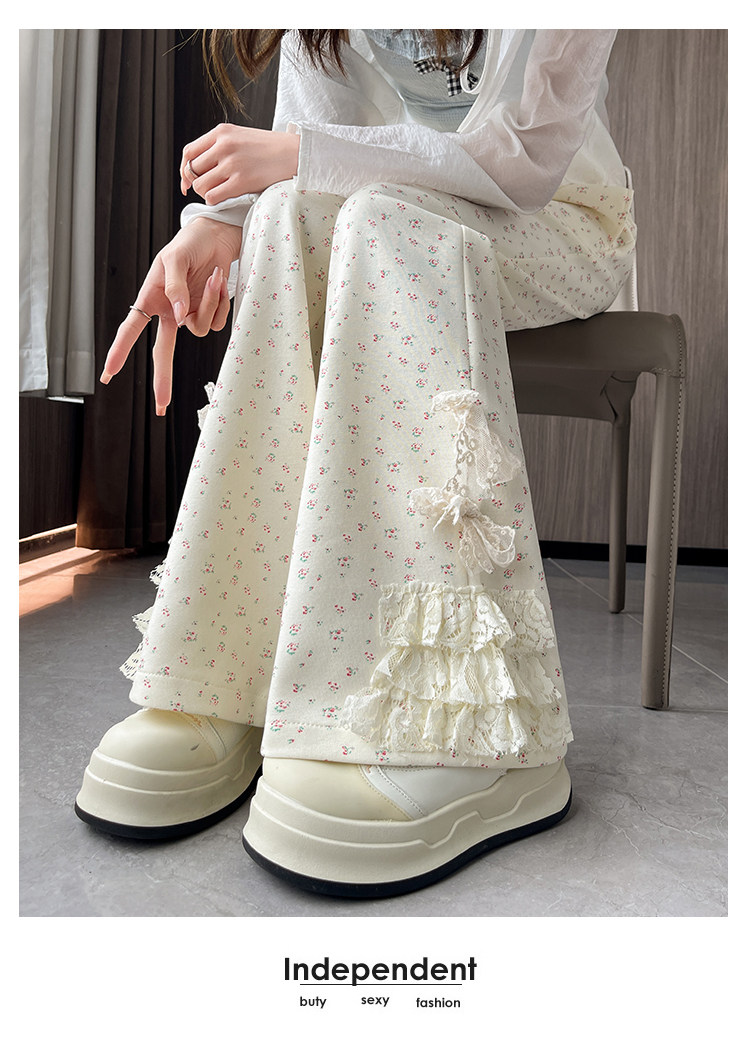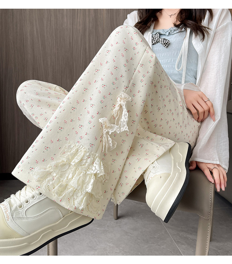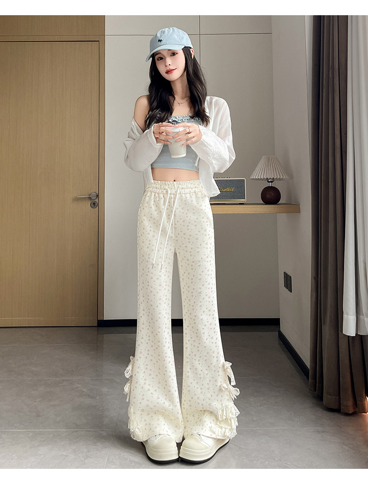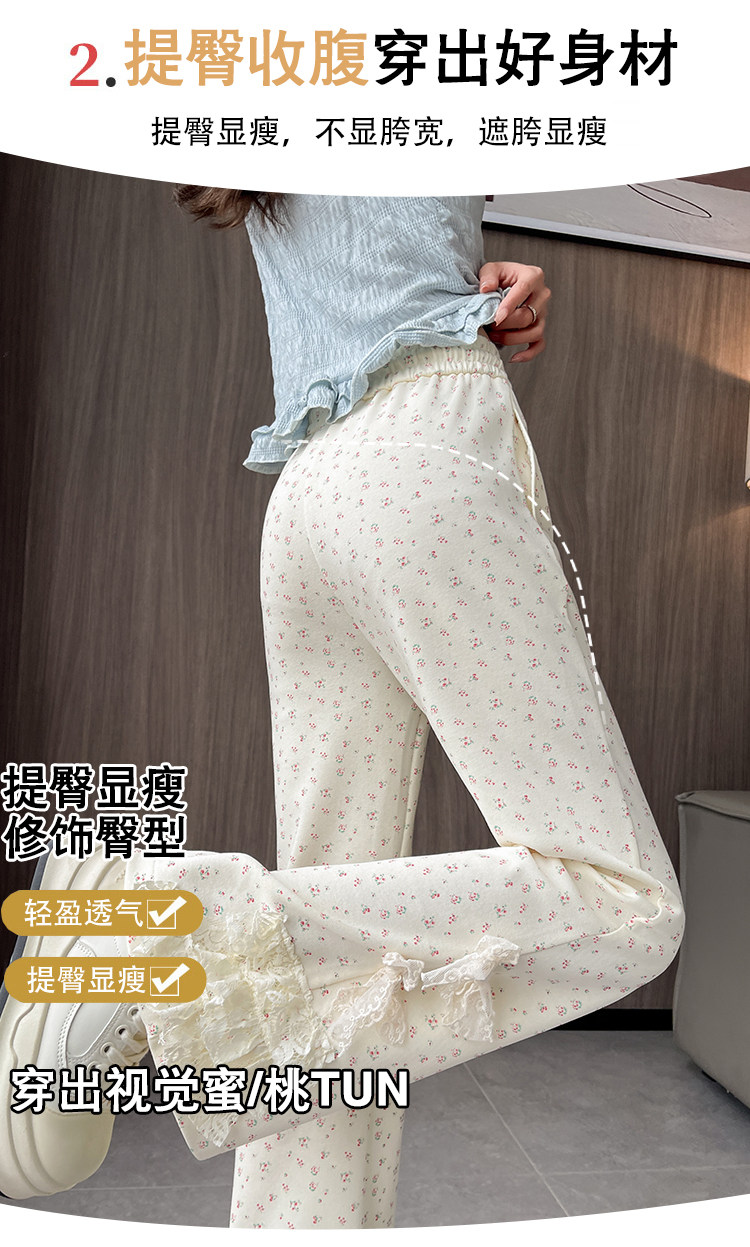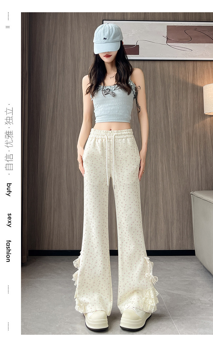 美式碎花蕾丝拼接微喇叭裤女夏季2025新款高腰显瘦马蹄休闲拖地裤 [Original Page Link]