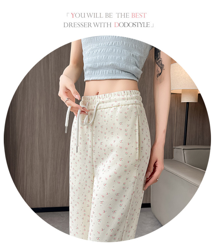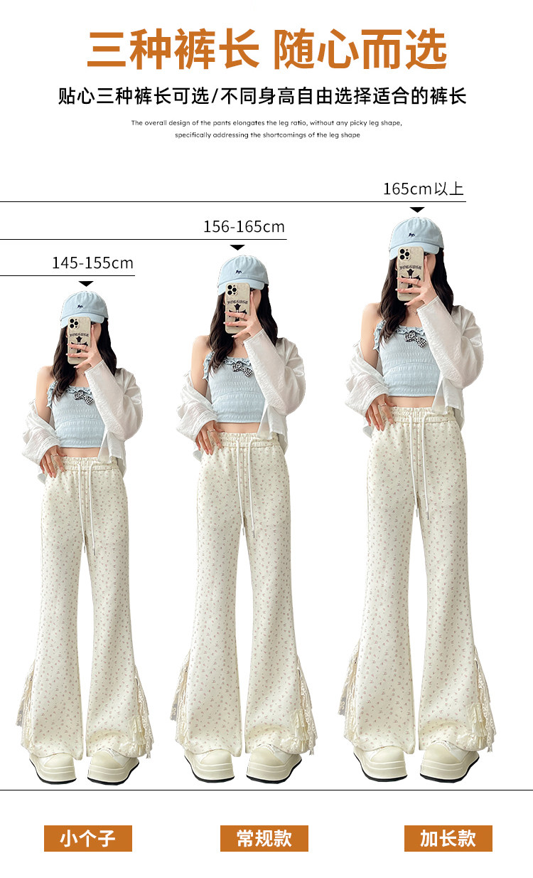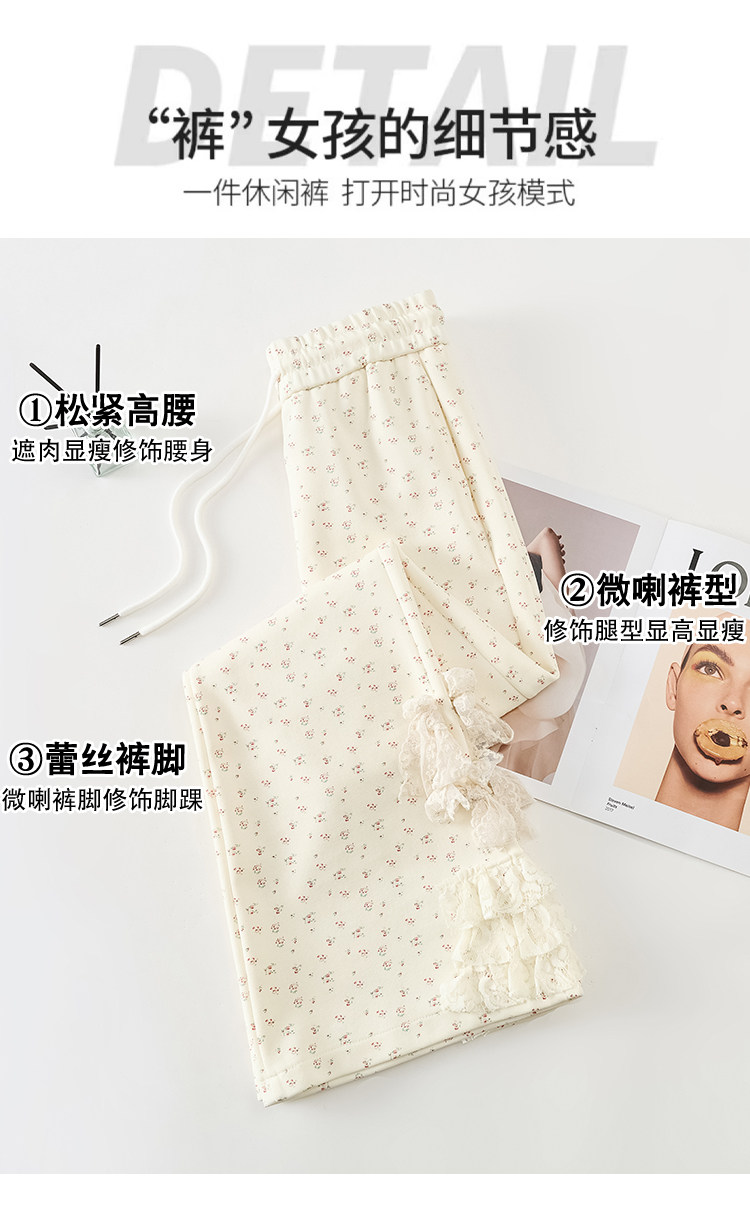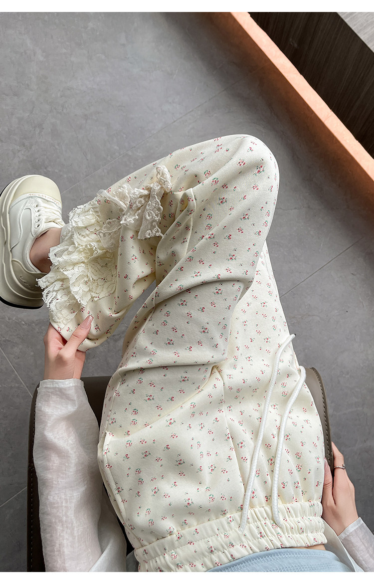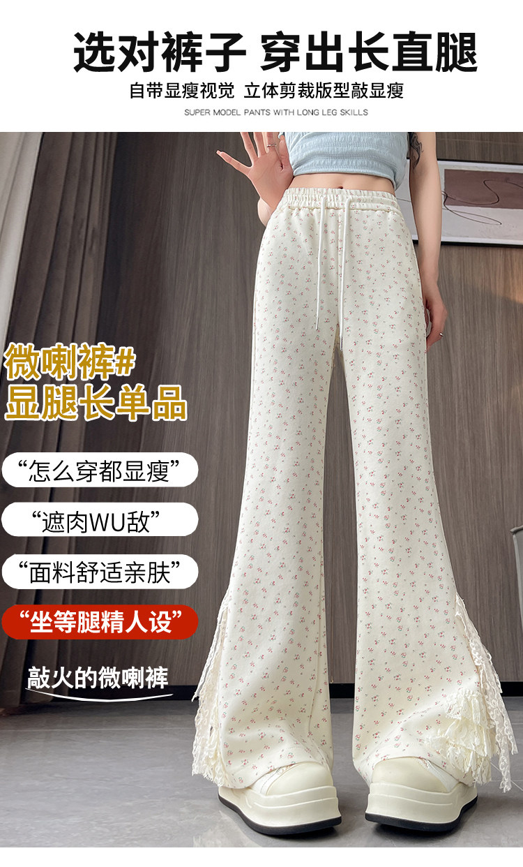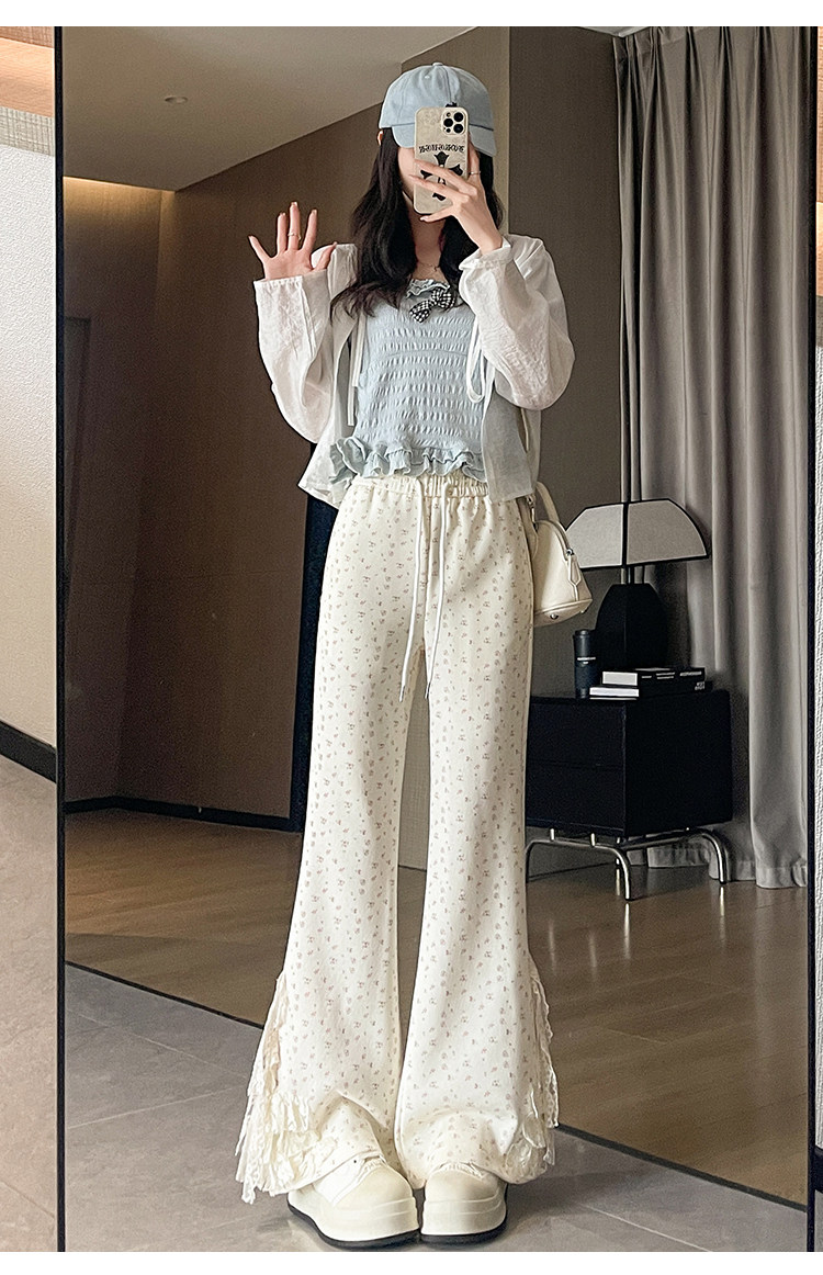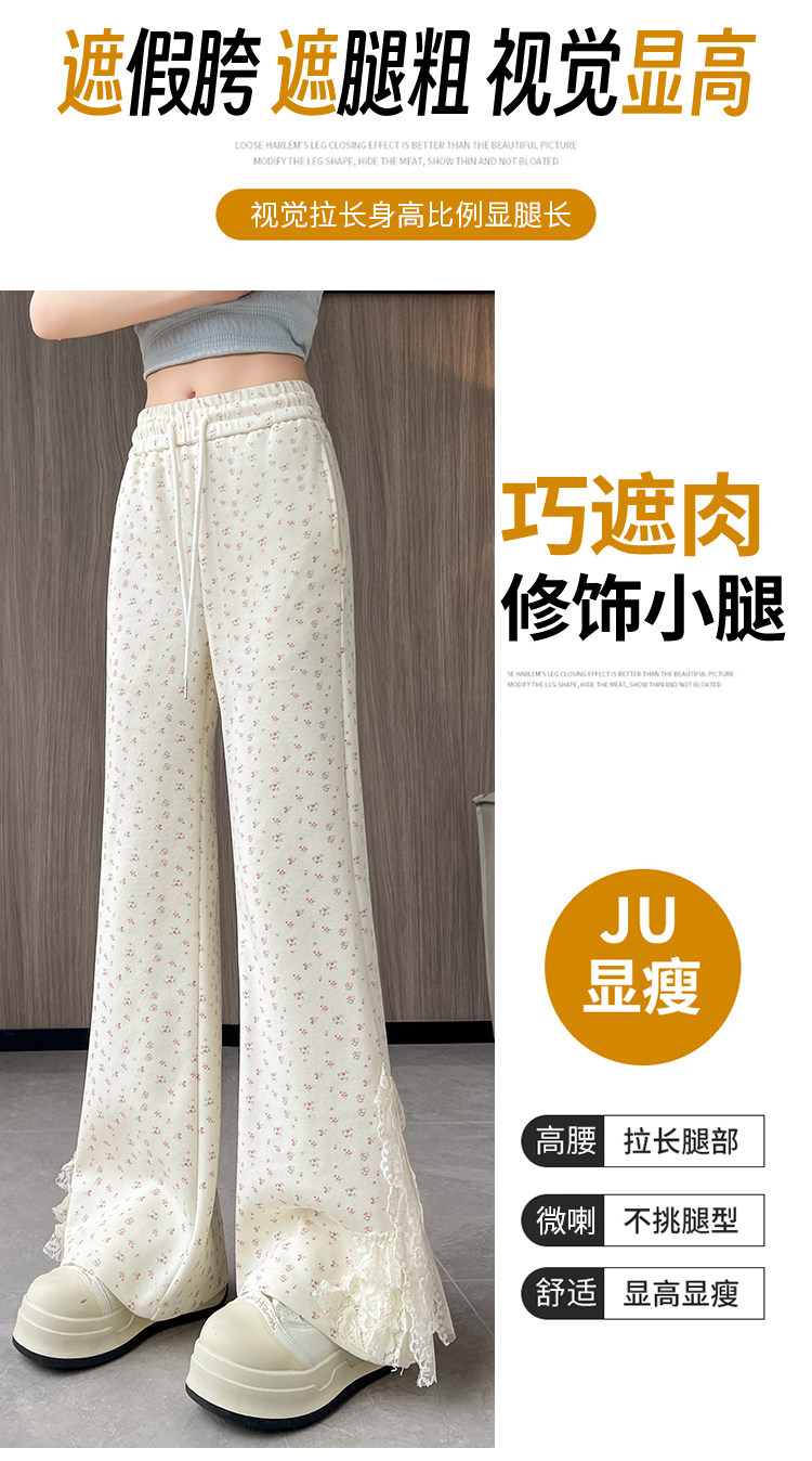 美式碎花蕾丝拼接微喇叭裤女夏季2025新款高腰显瘦马蹄休闲拖地裤 [Original Page Link]
