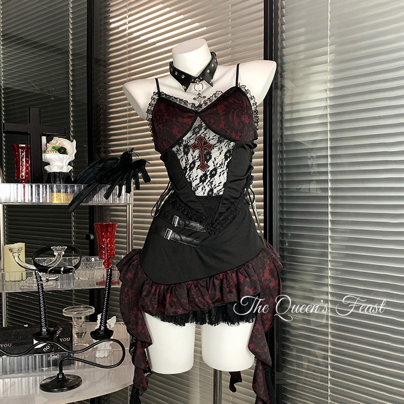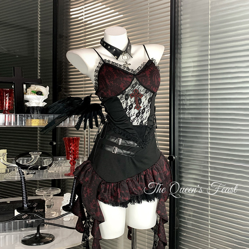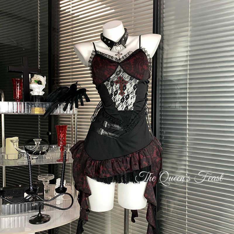 地狱摇滚|原创暗黑十字哥特风套装万圣节服装辣妹穿搭不规则短裙 [Original Page Link]