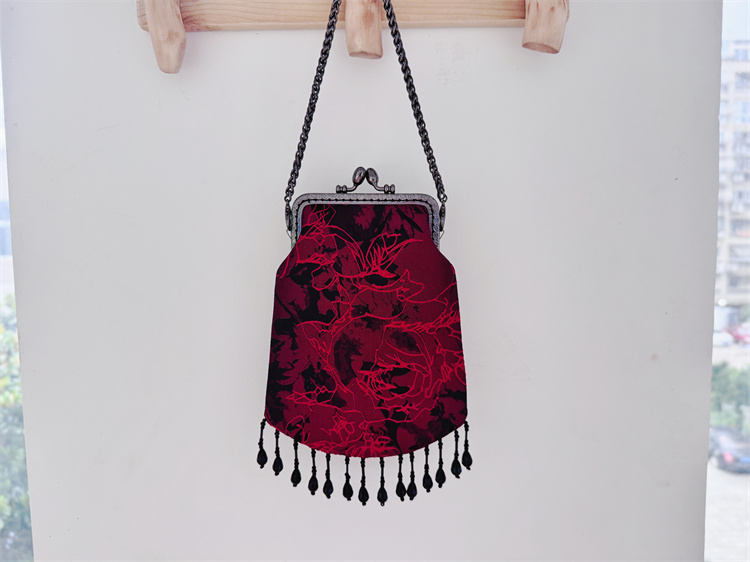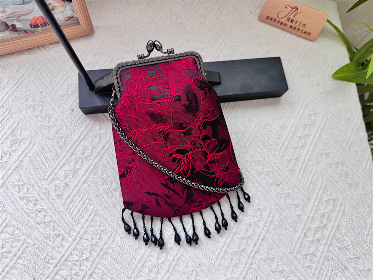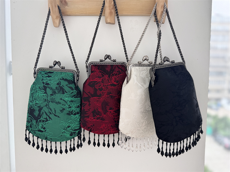 新中国风旗袍,民族风覆古手持珍珠流苏花边配件,手机包,汉代小手提袋 [Original Page Link]