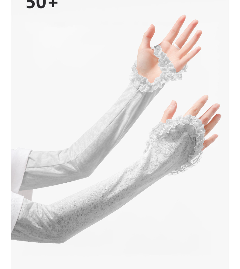 Women's sun protection gloves, lace UV-protective ice silk sleeves, summer driving sun protection for the arms, loose half-finger touchscreen.
