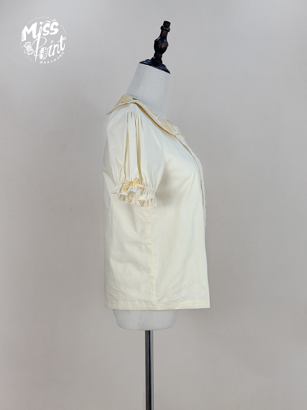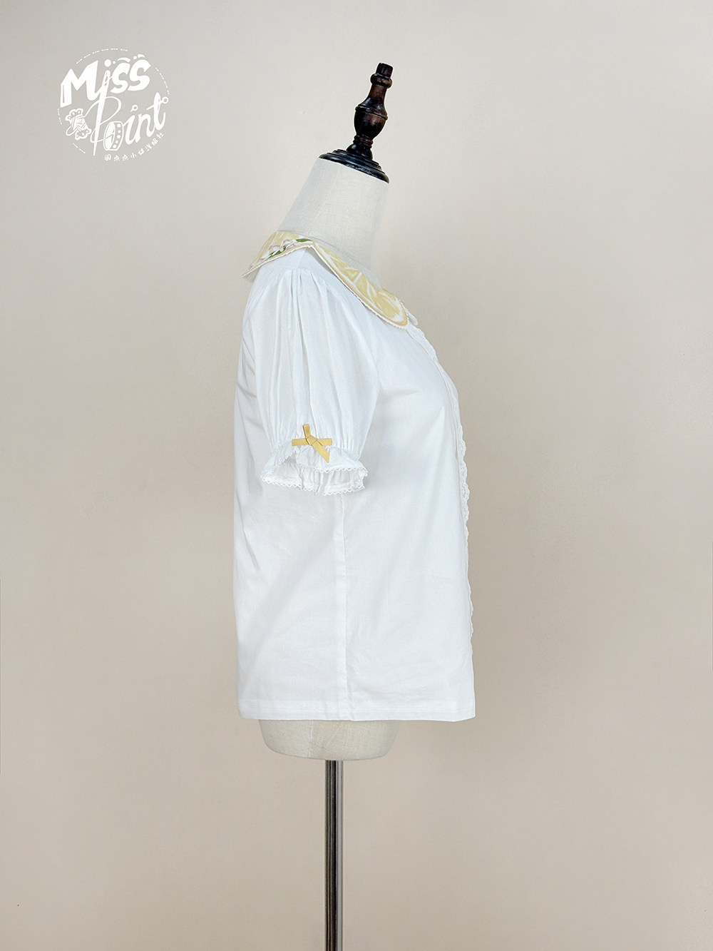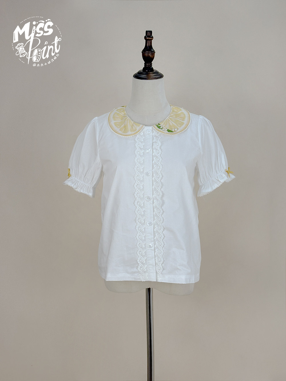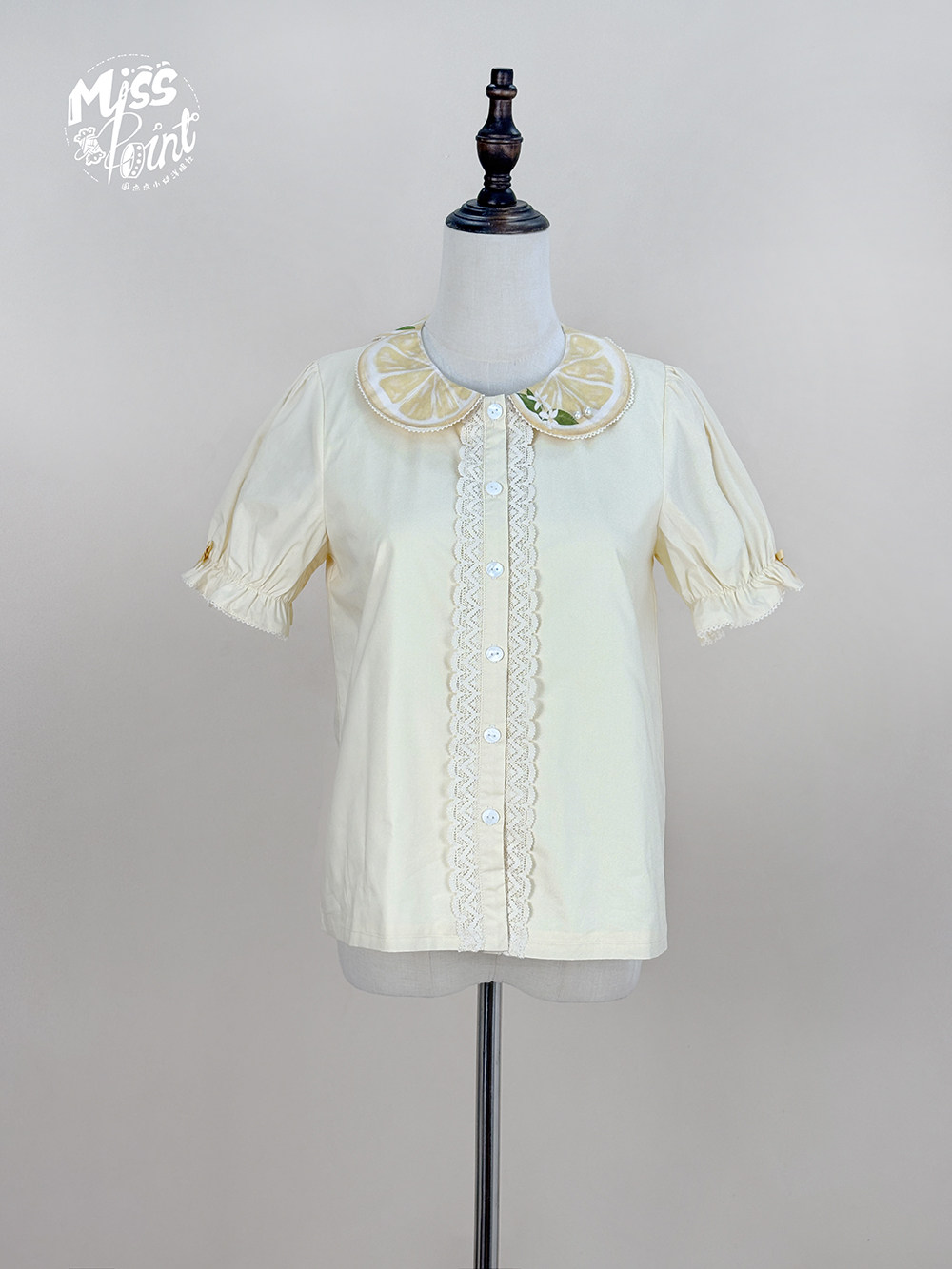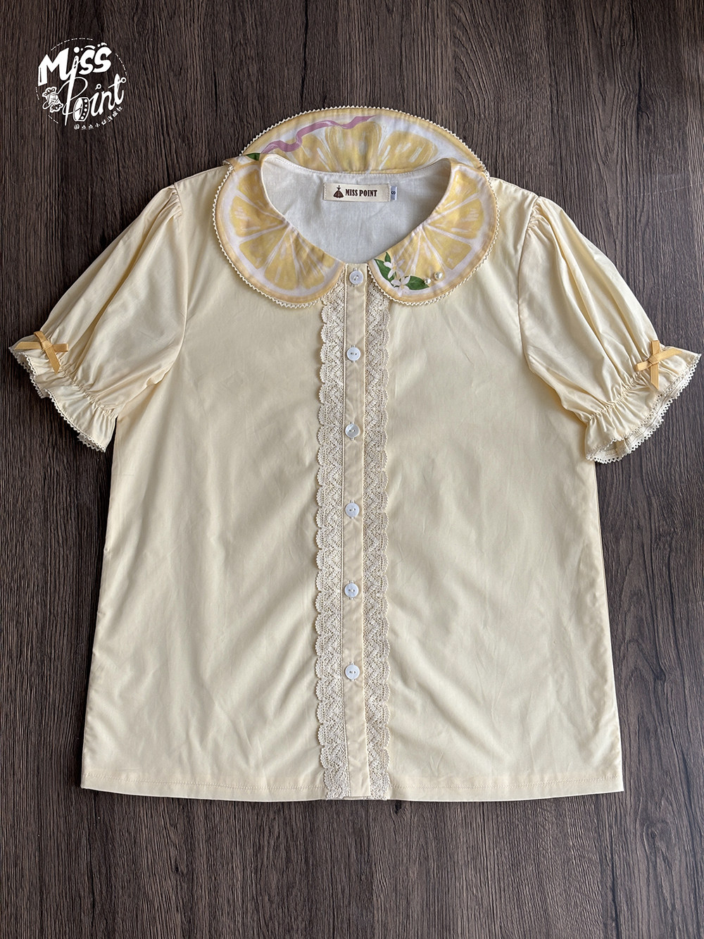 ●Original Custom Design● Lemon Chick Lolita Summer Fresh Everyday Lemon Print Collar Cotton Shirt●