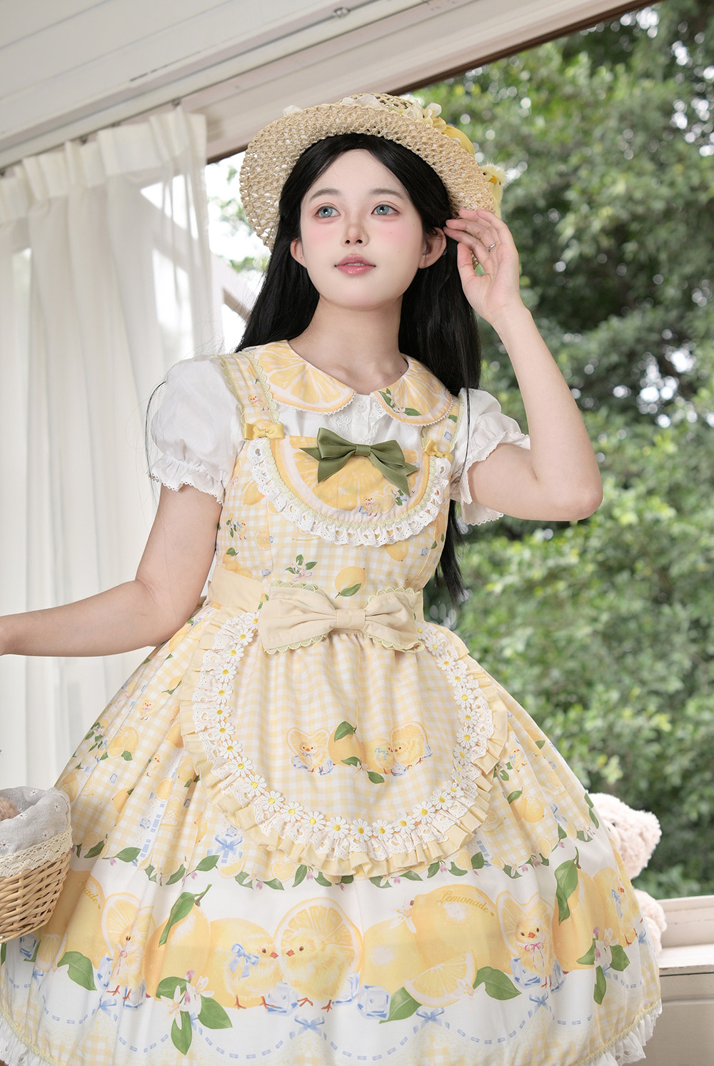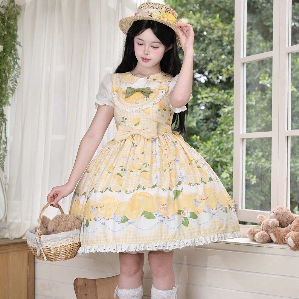 ●原创定制●柠檬小鸡仔Lolita夏清新日常柠檬印花领棉衬衫● [Original Page Link]