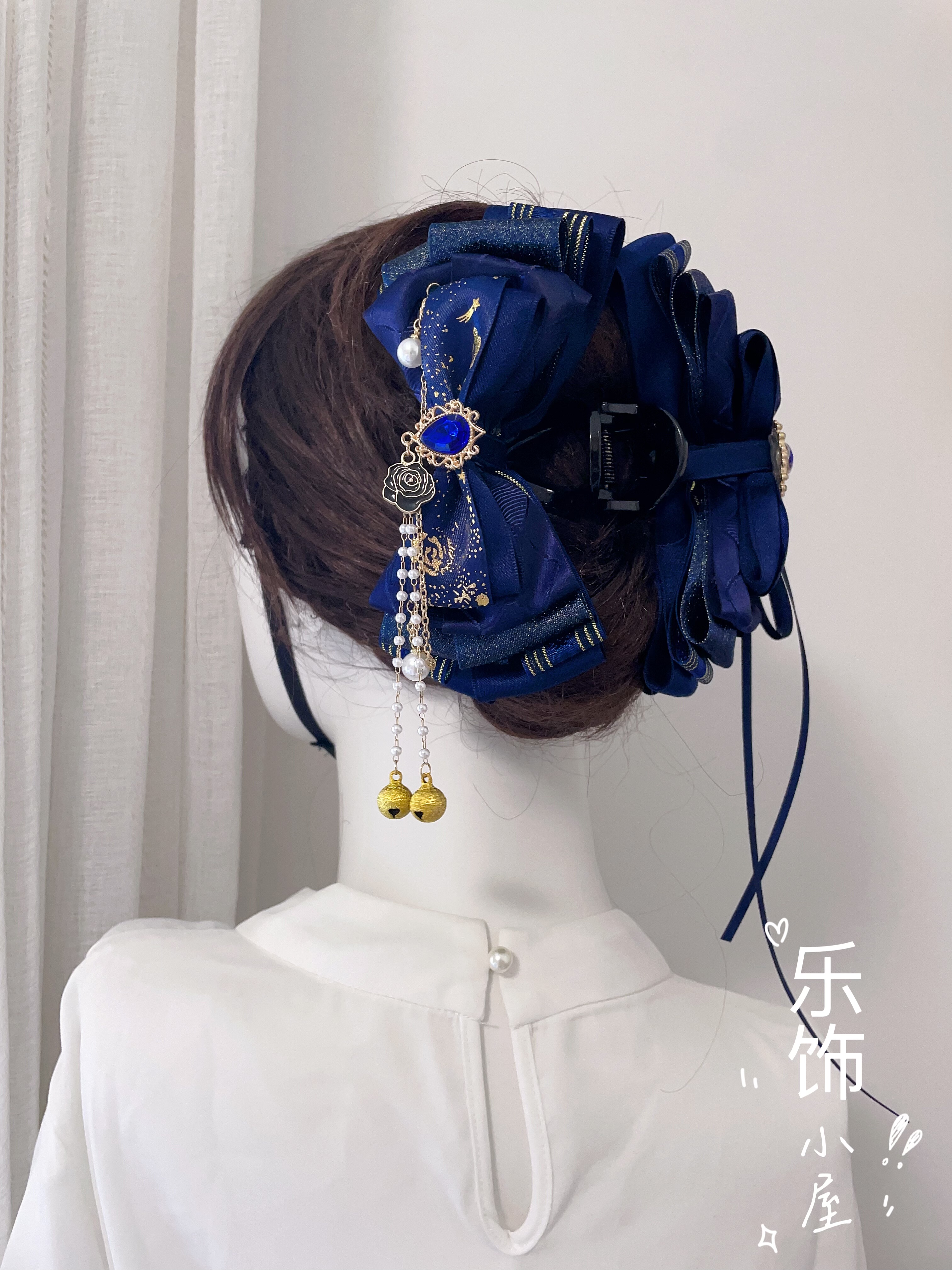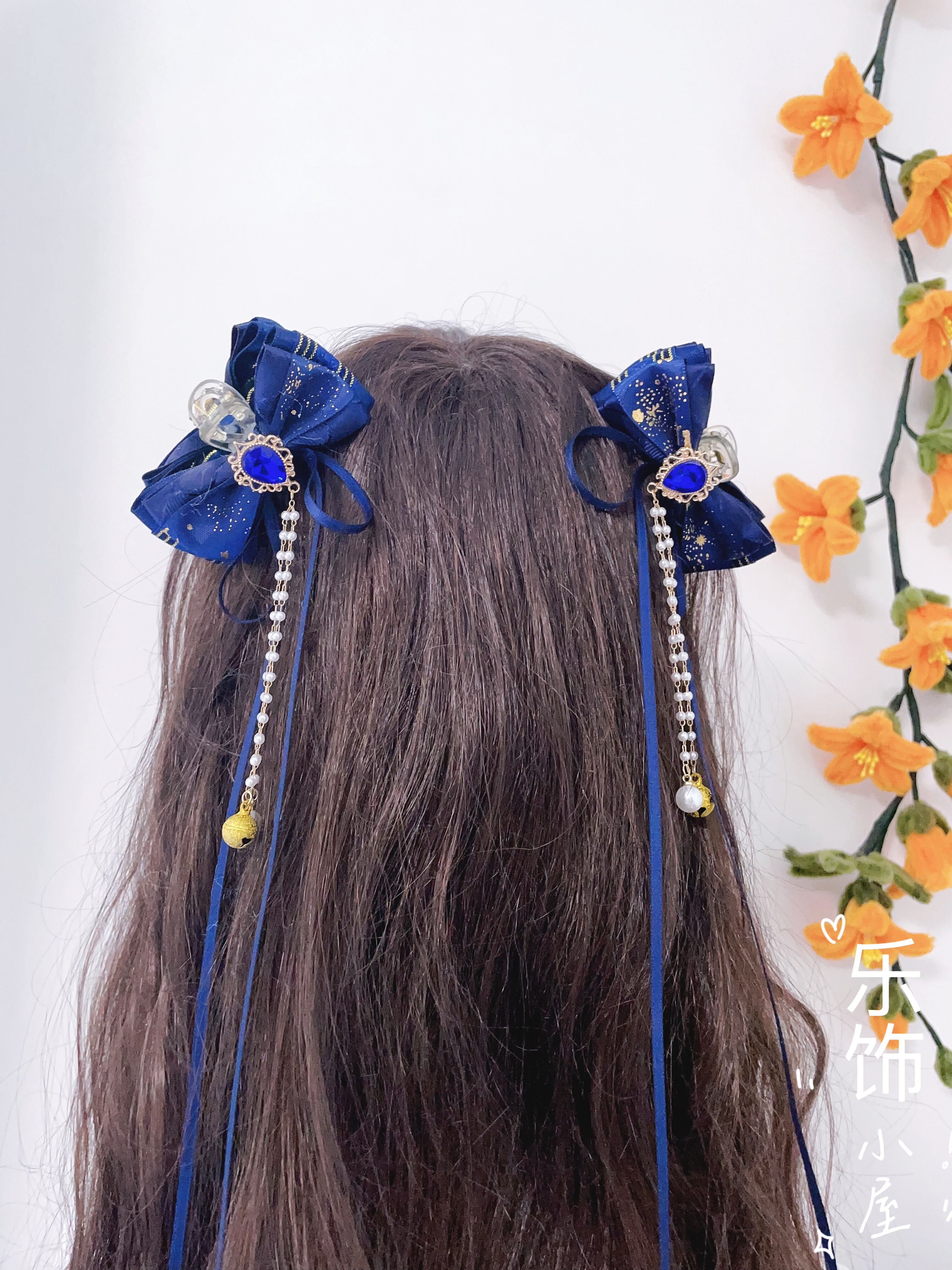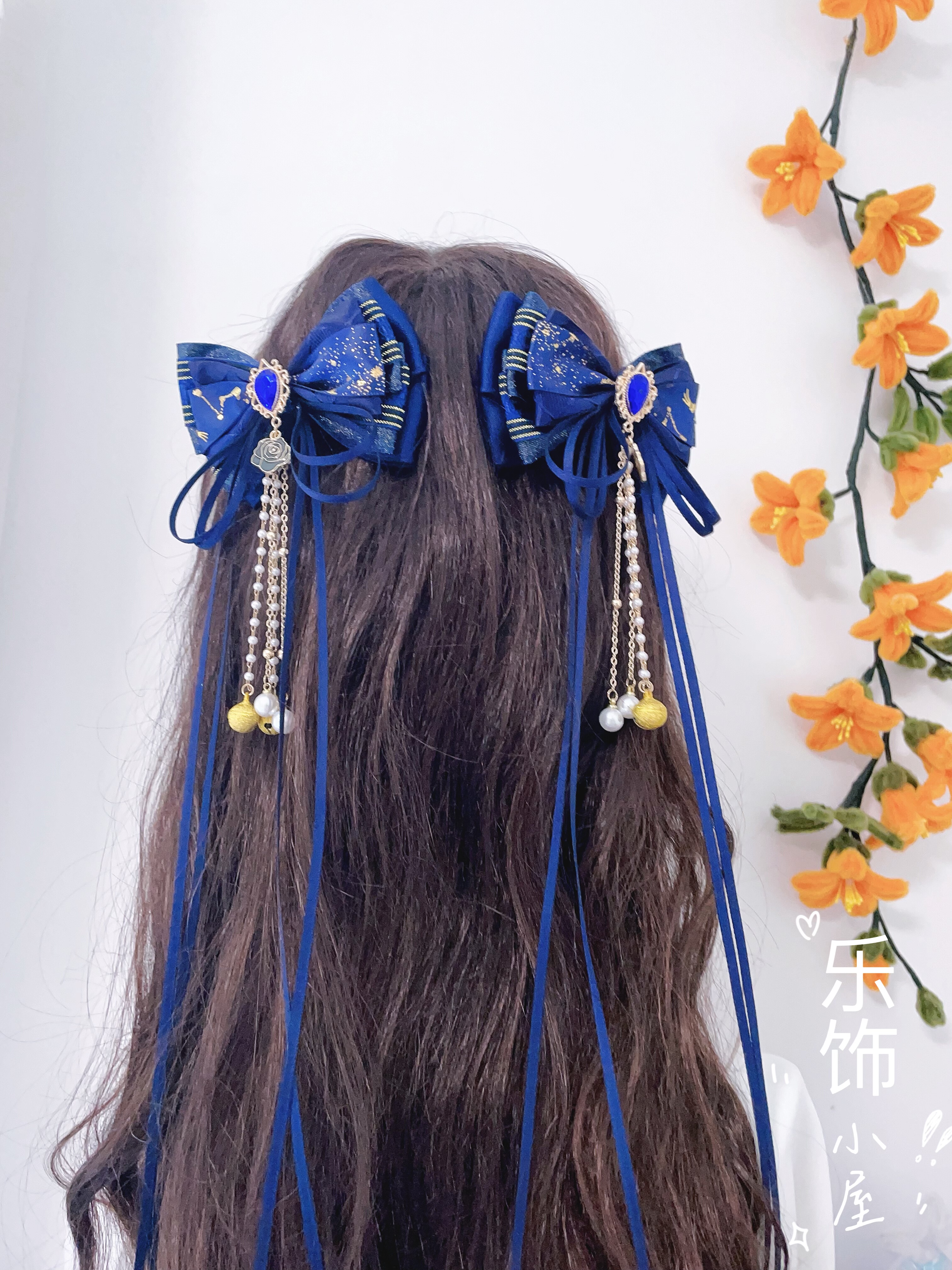 原创手作《永夜星河》发饰国风lolita洛丽塔古风长飘弹簧夹对夹 [Original Page Link]