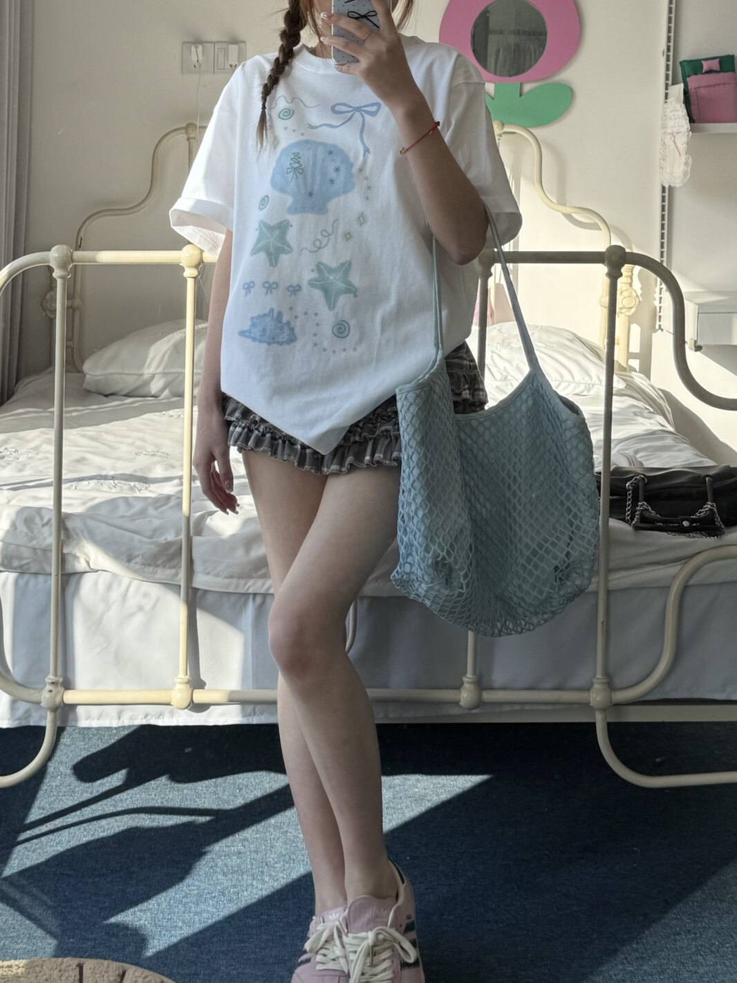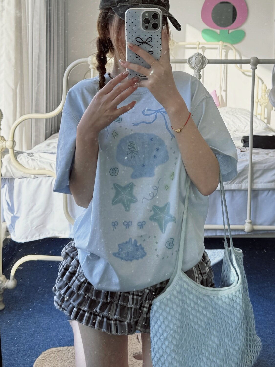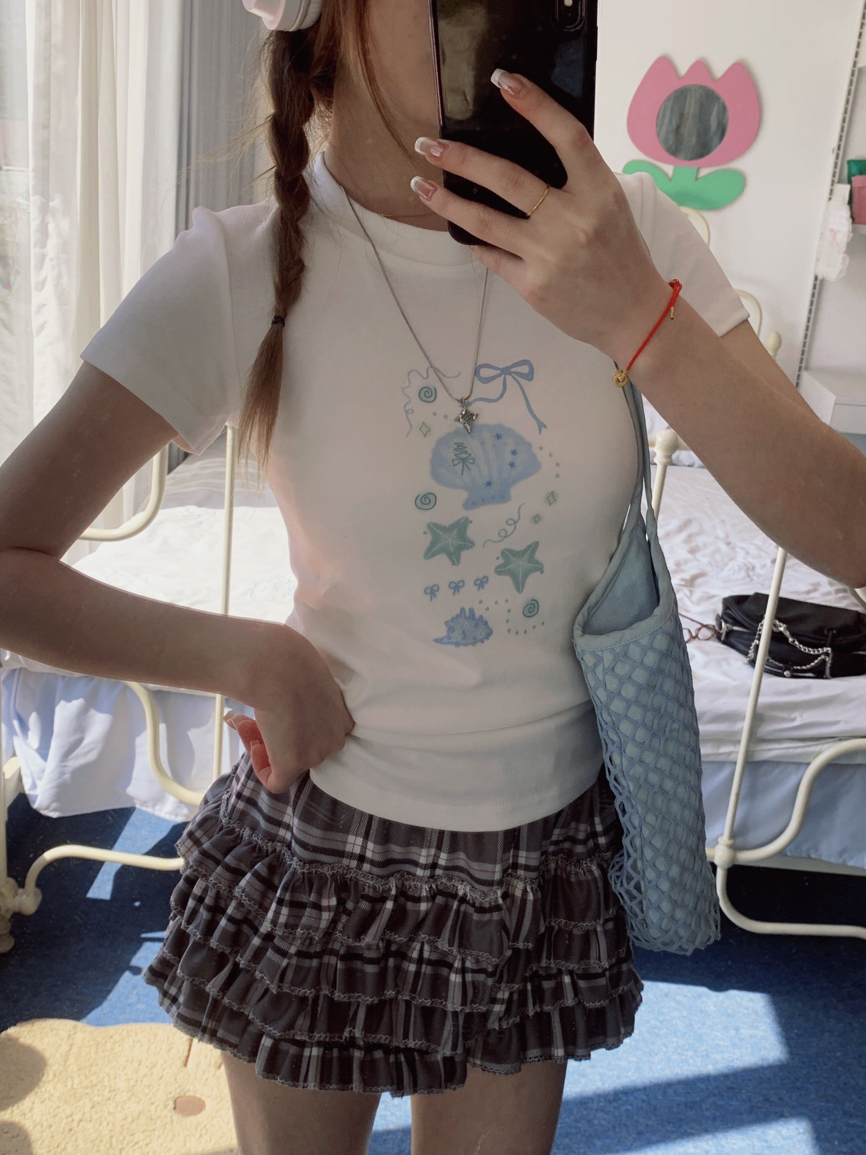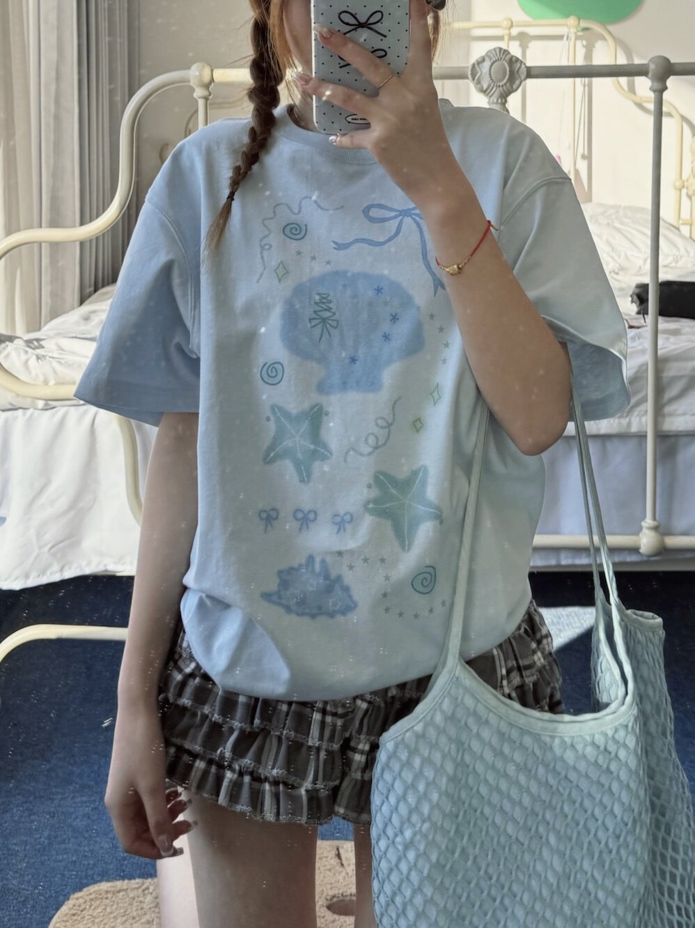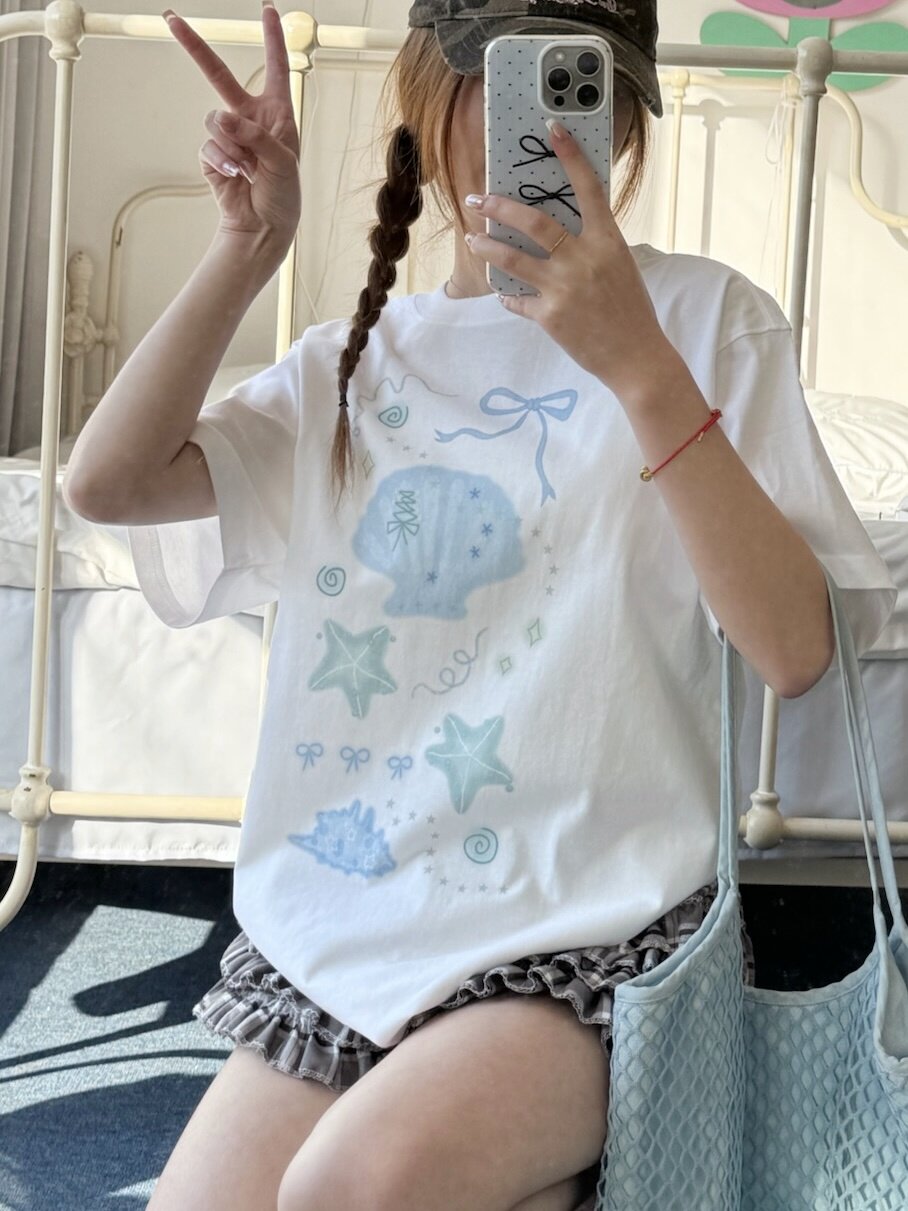 凡他姨【夏日人鱼姬】甜美贝壳印花T恤百搭少女风圆领短袖上衣女 [Original Page Link]