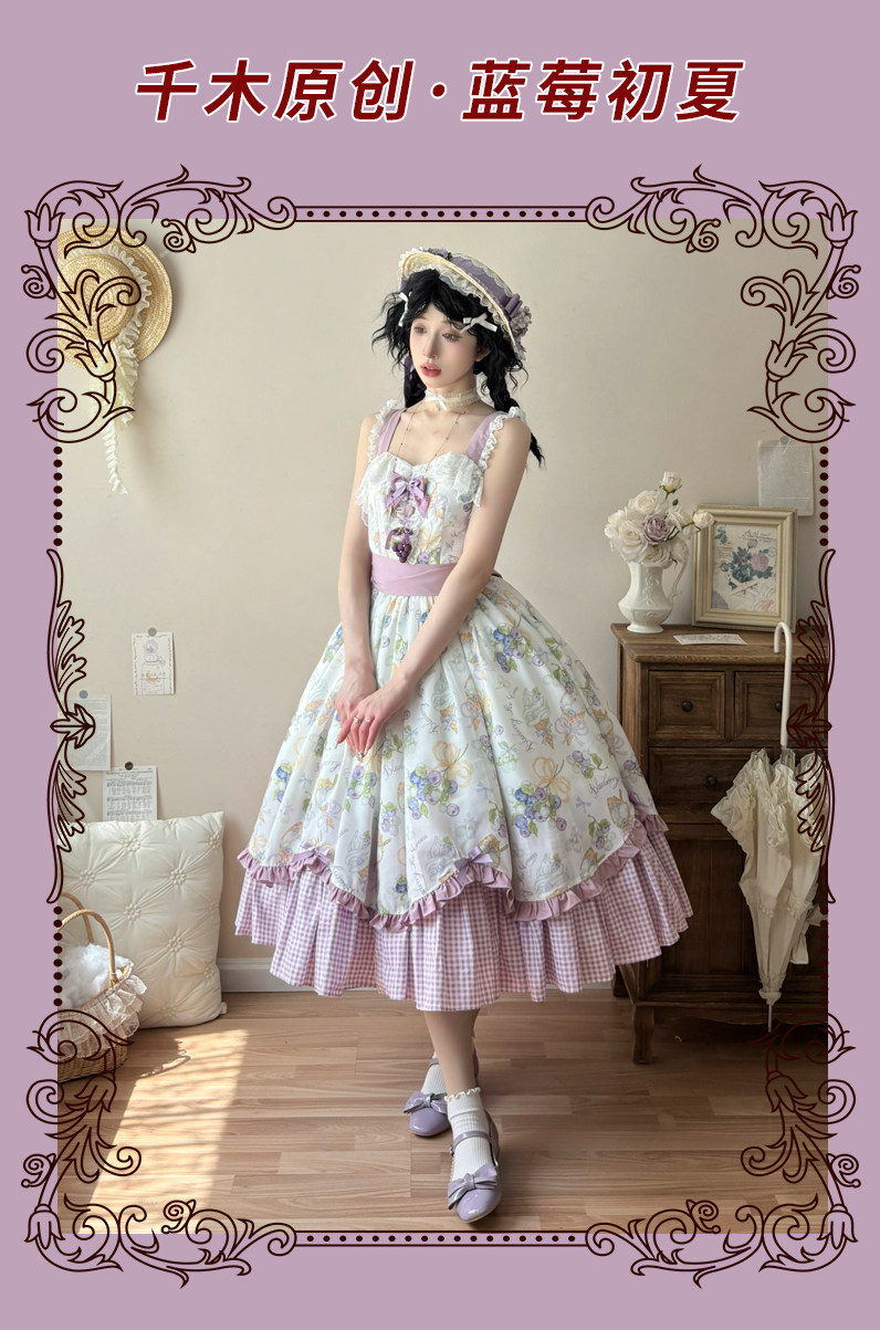 【蓝莓初夏】千木原创印花篮莓cla系jsk大摆罗莉塔lolita长版全款 [Original Page Link]
