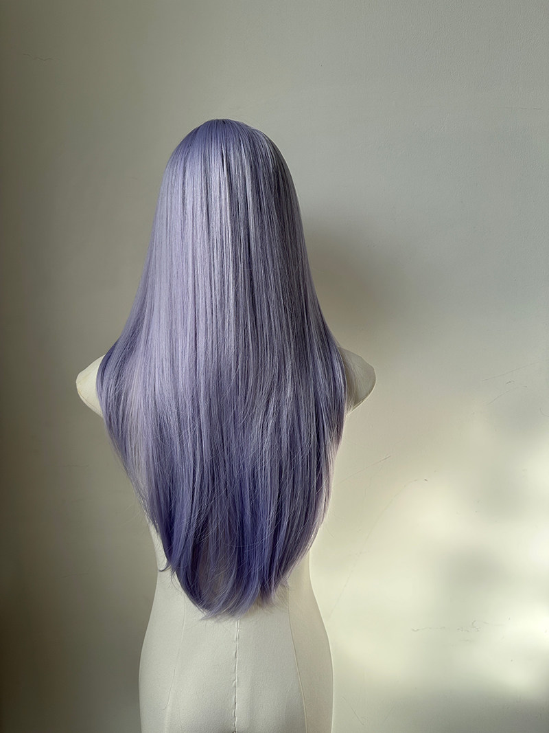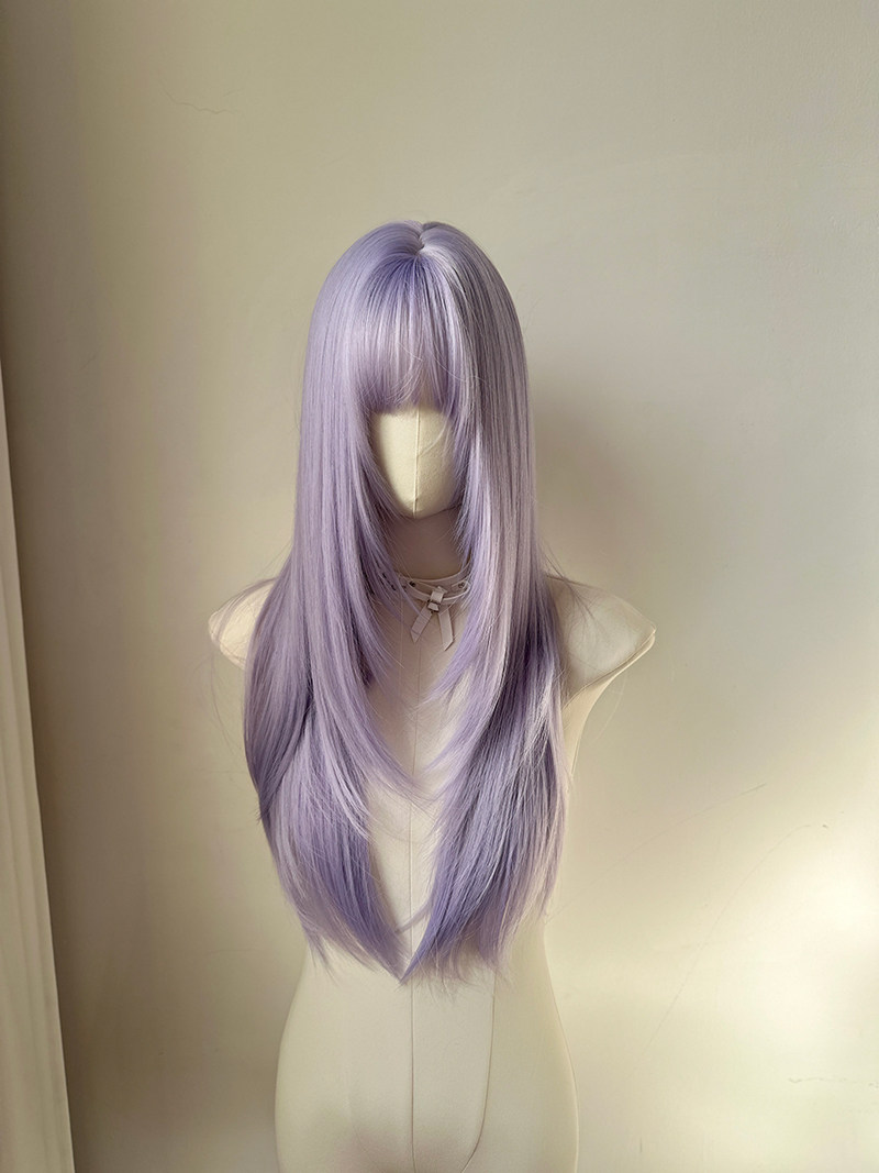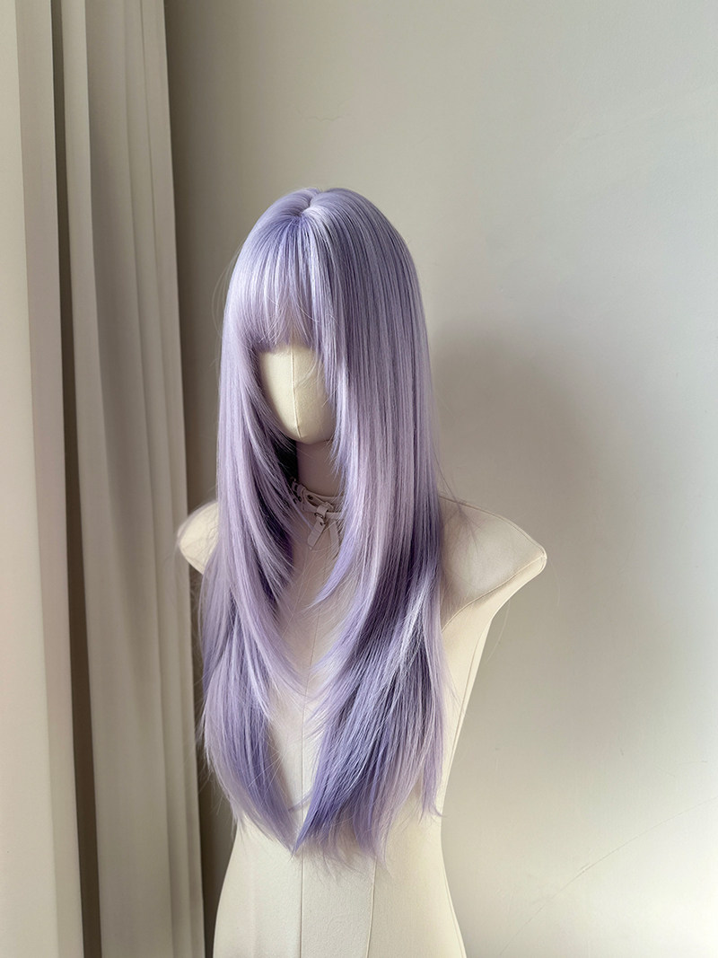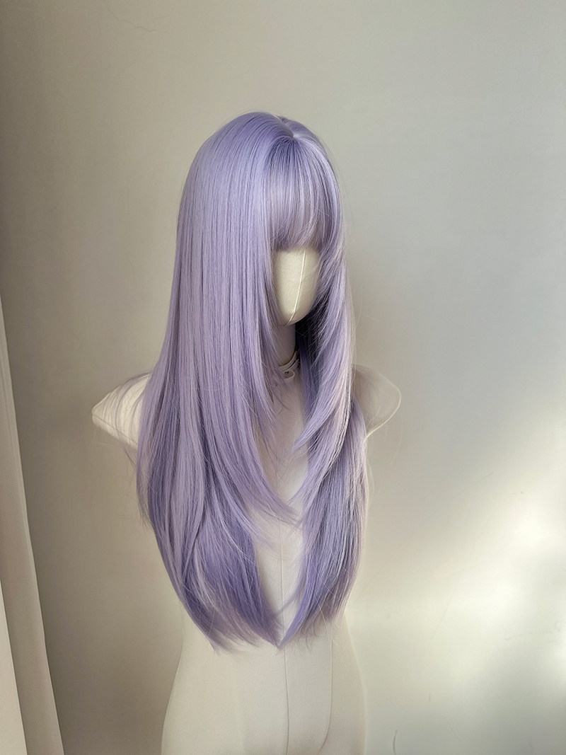 Purple long straight wig, full head, Lolita style, bangs, cosplay, high-level daily wear, Y2K, hot girl, punk style, Japanese style