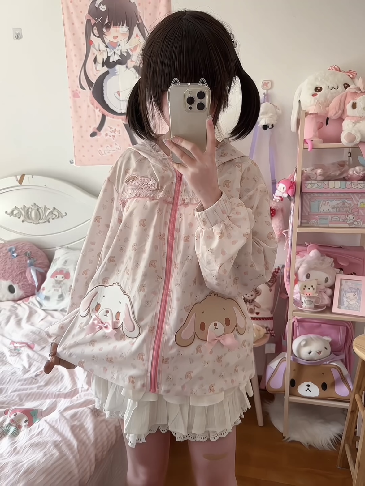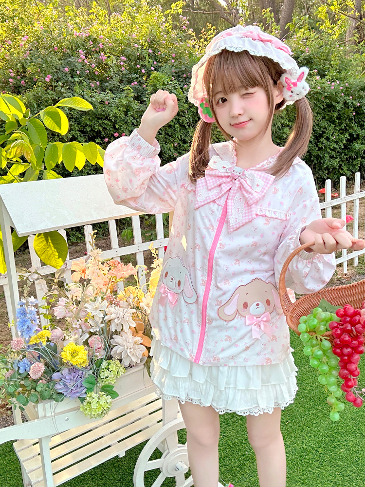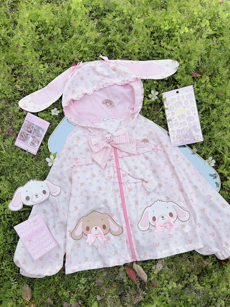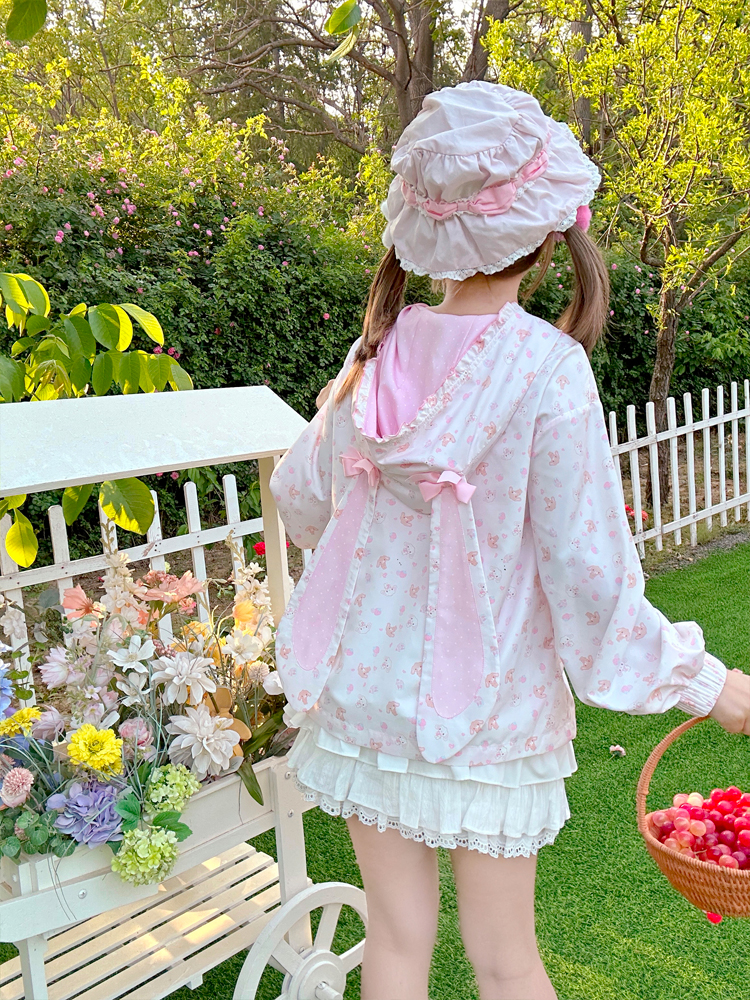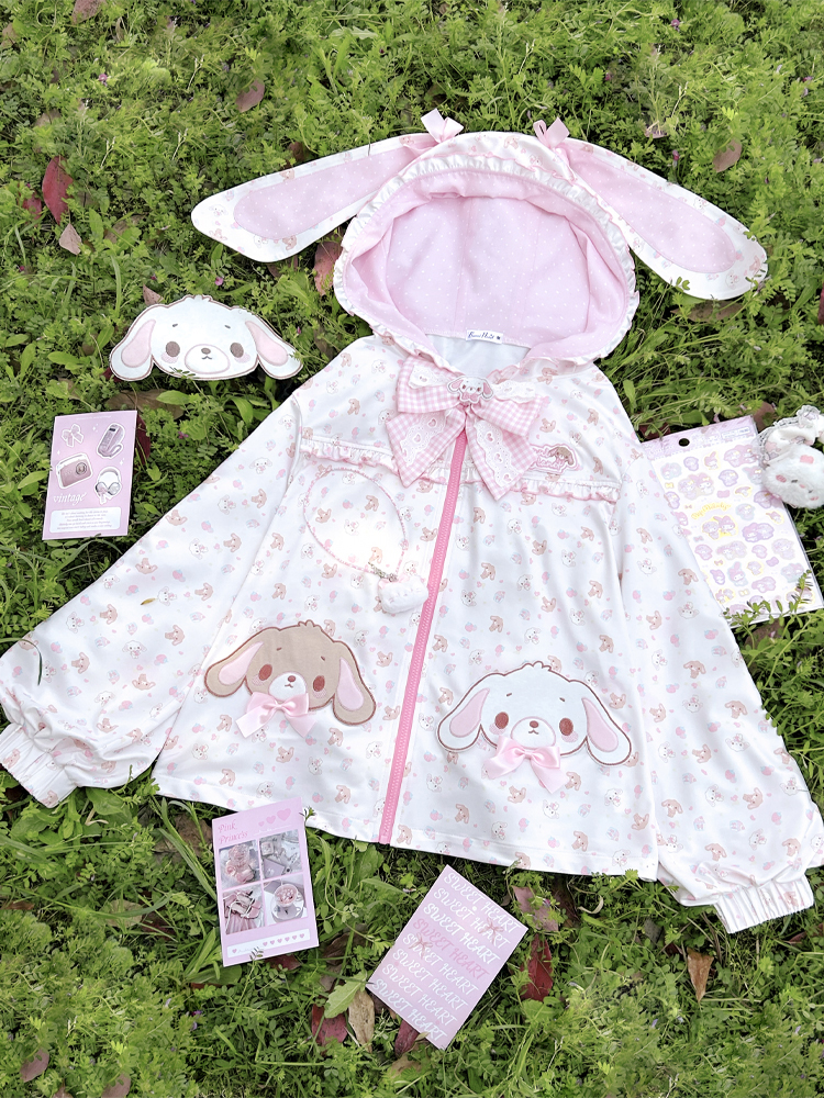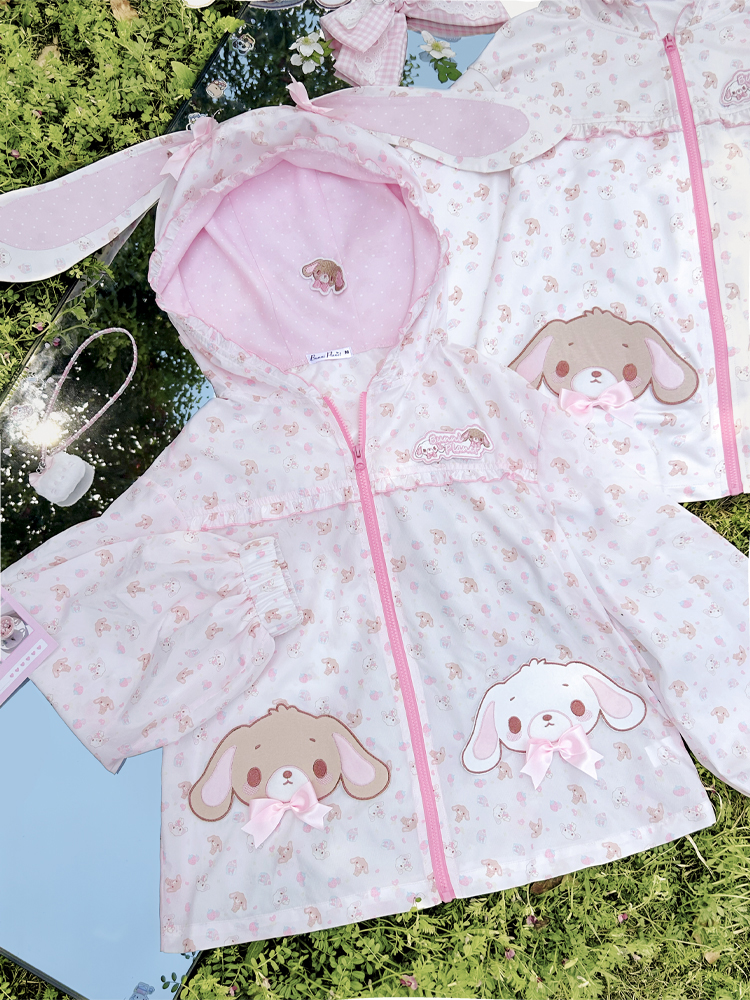 [现货齐全]甜品兔长耳朵蝴蝶结连帽防晒夹克Upf50+女儿服装软女孩 [Original Page Link]