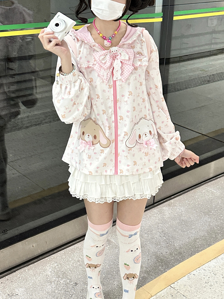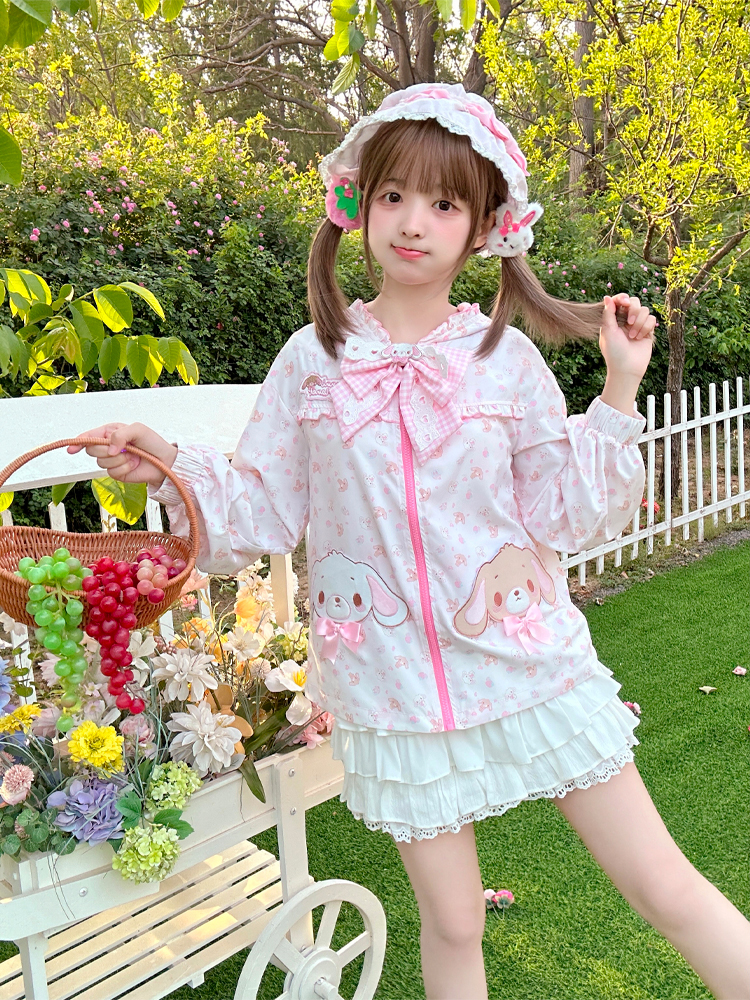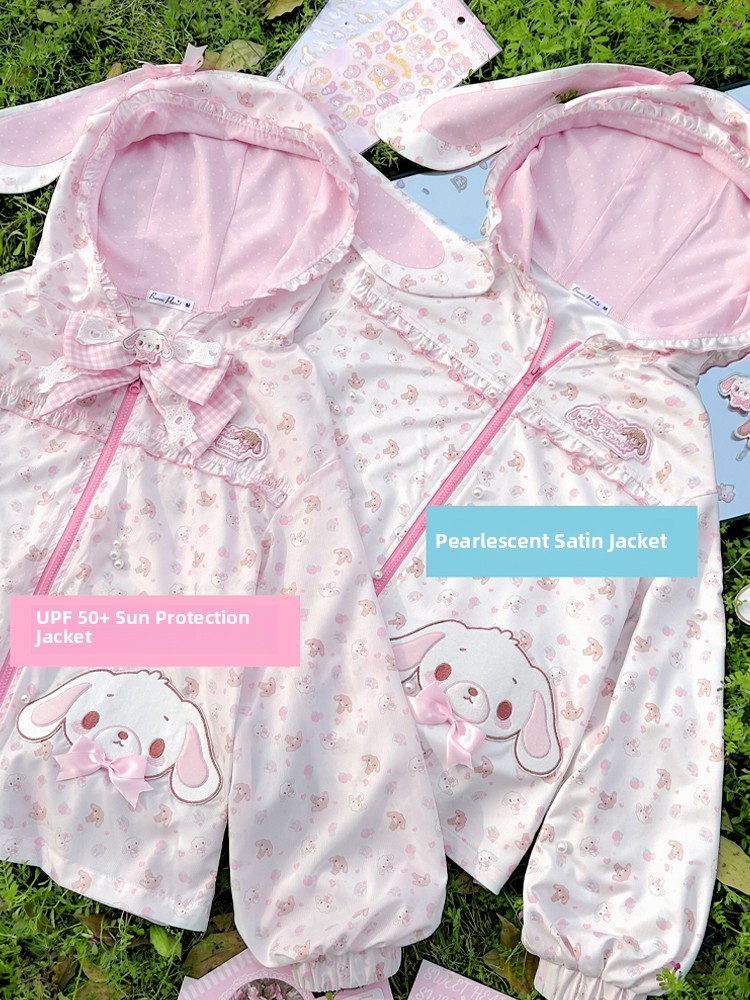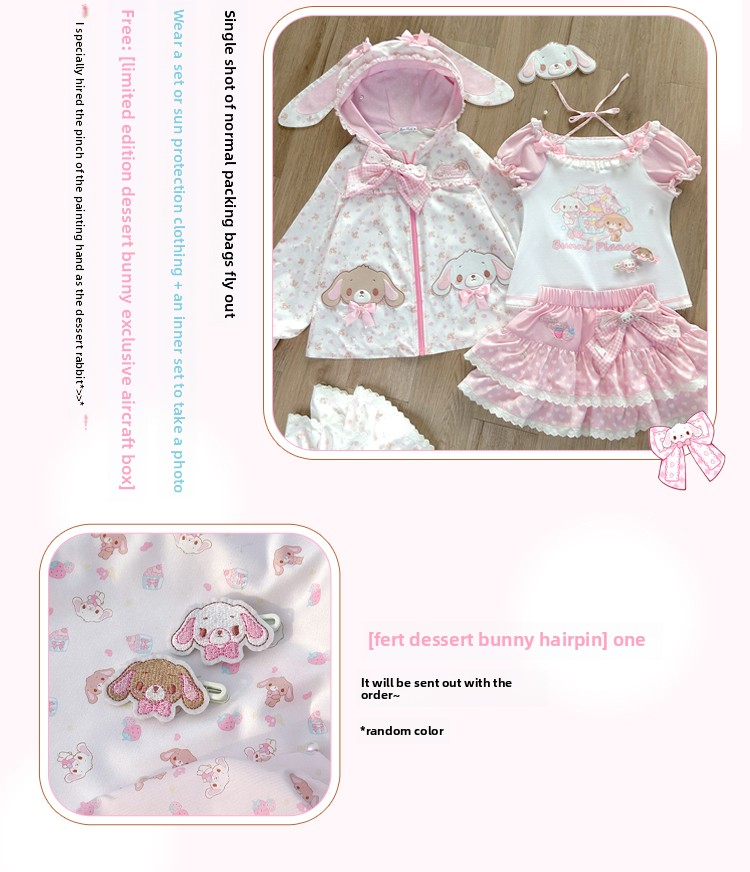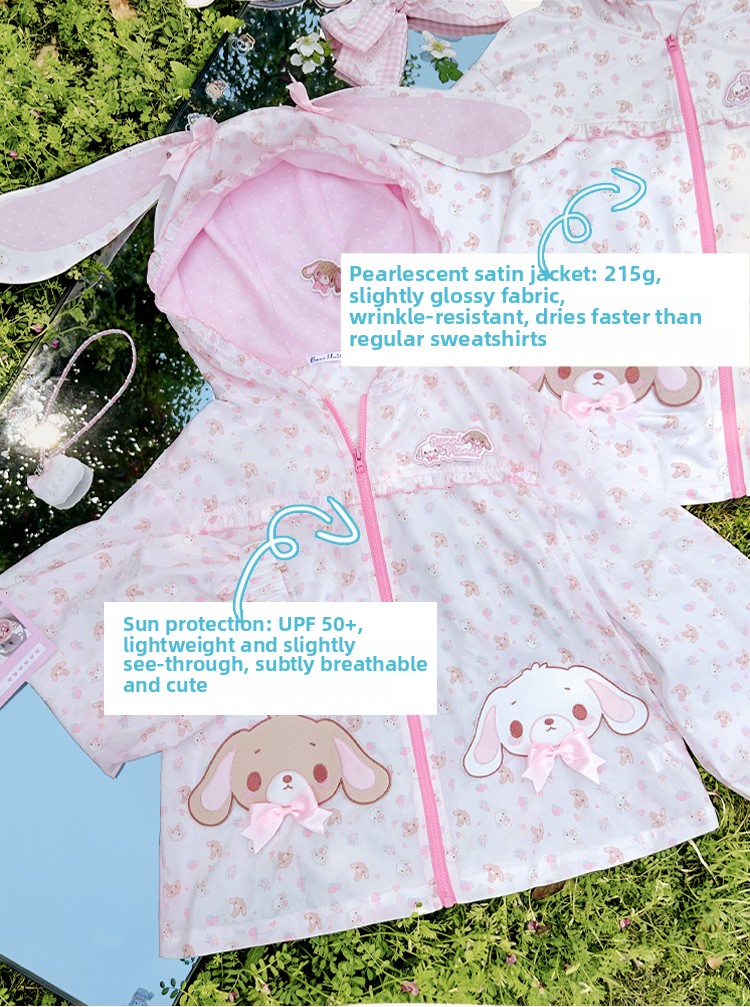 [In stock, all items available] Dessert bunny long ears bow hooded sun protection jacket UPF50+ daughter's clothing soft girl
