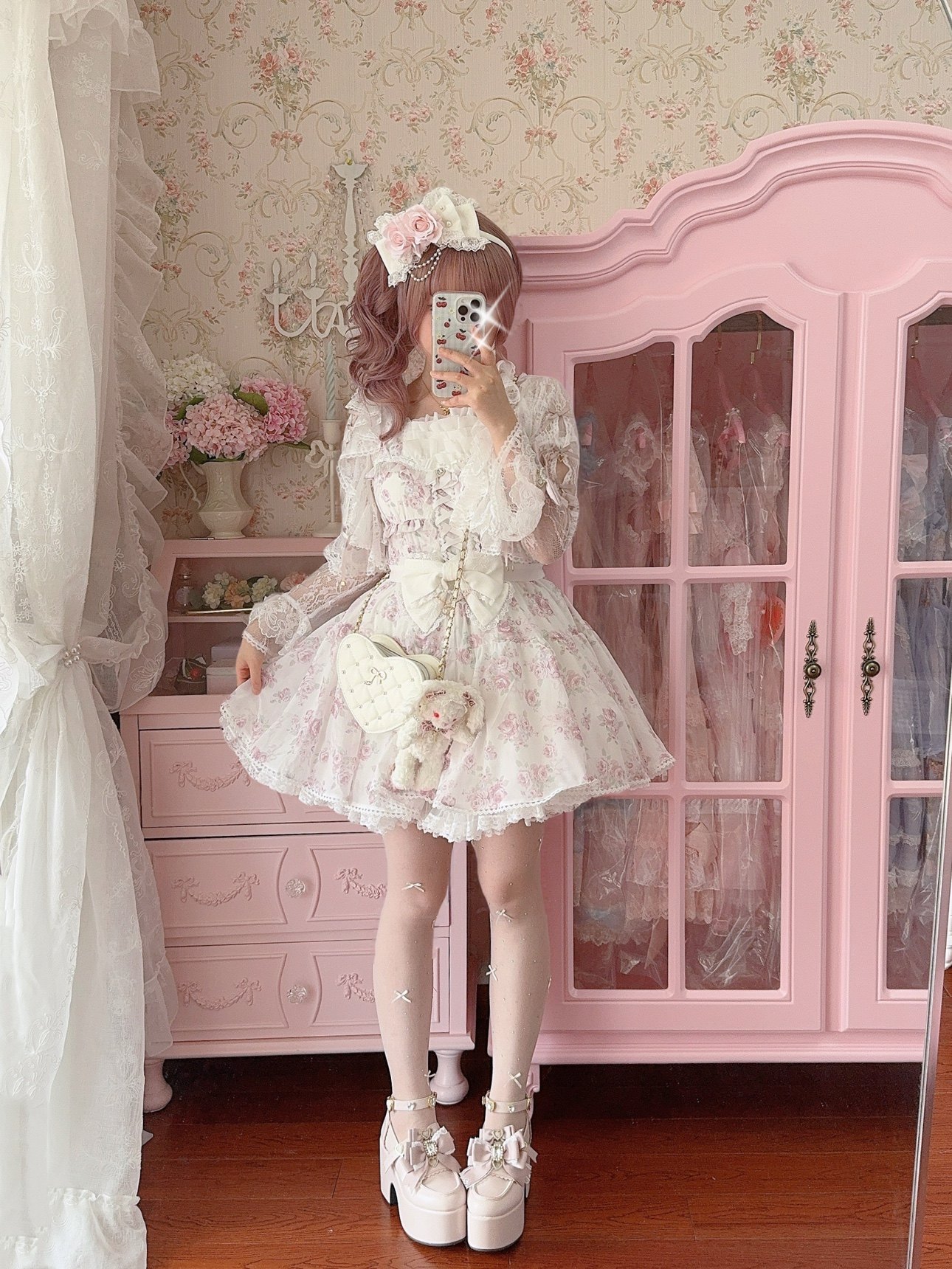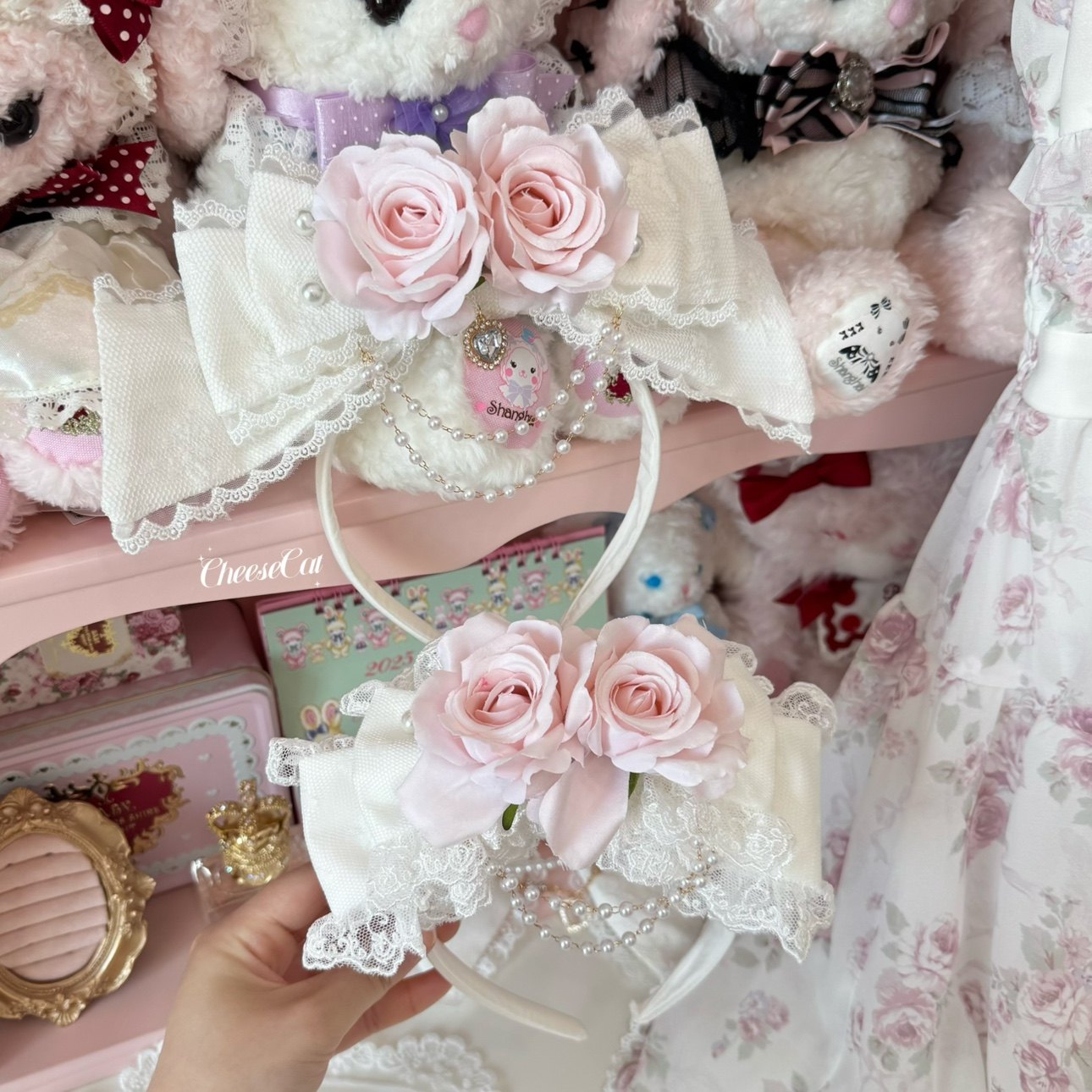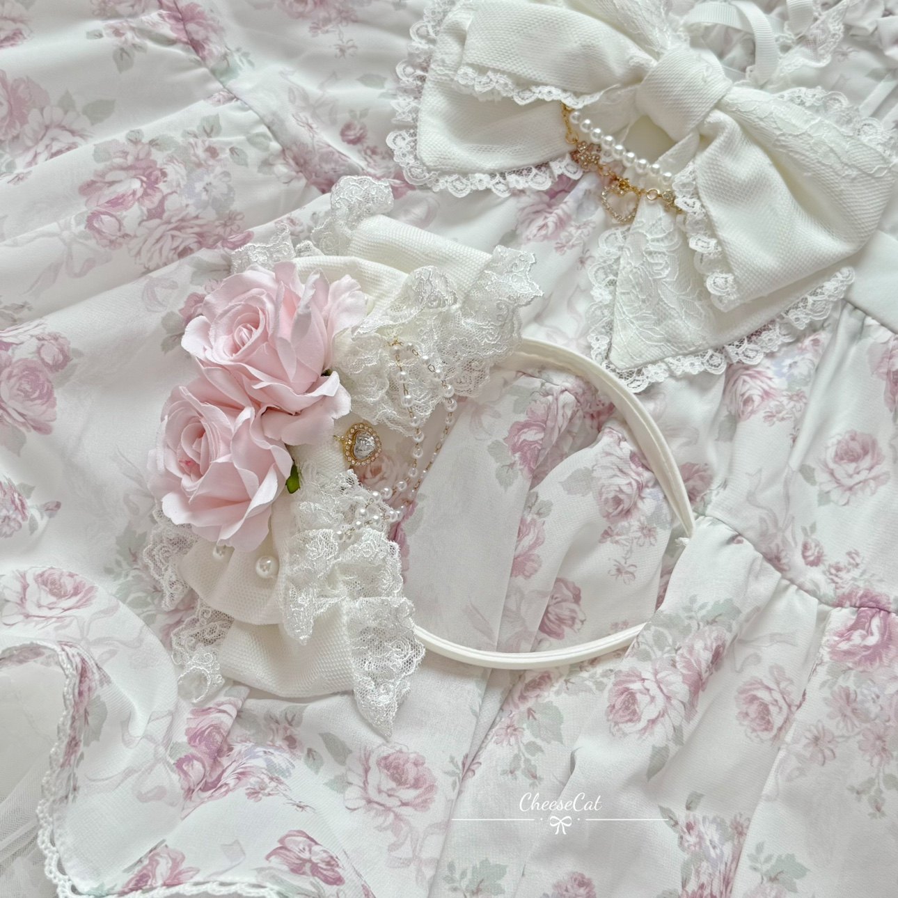 [Cheese Cat Handmade] Lizlisa Floral Princess Rose Bow Lolita Small Headdress KC Hairband