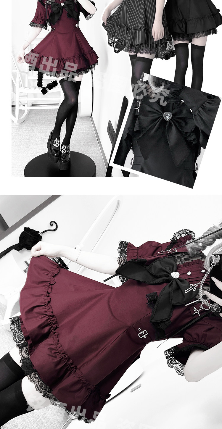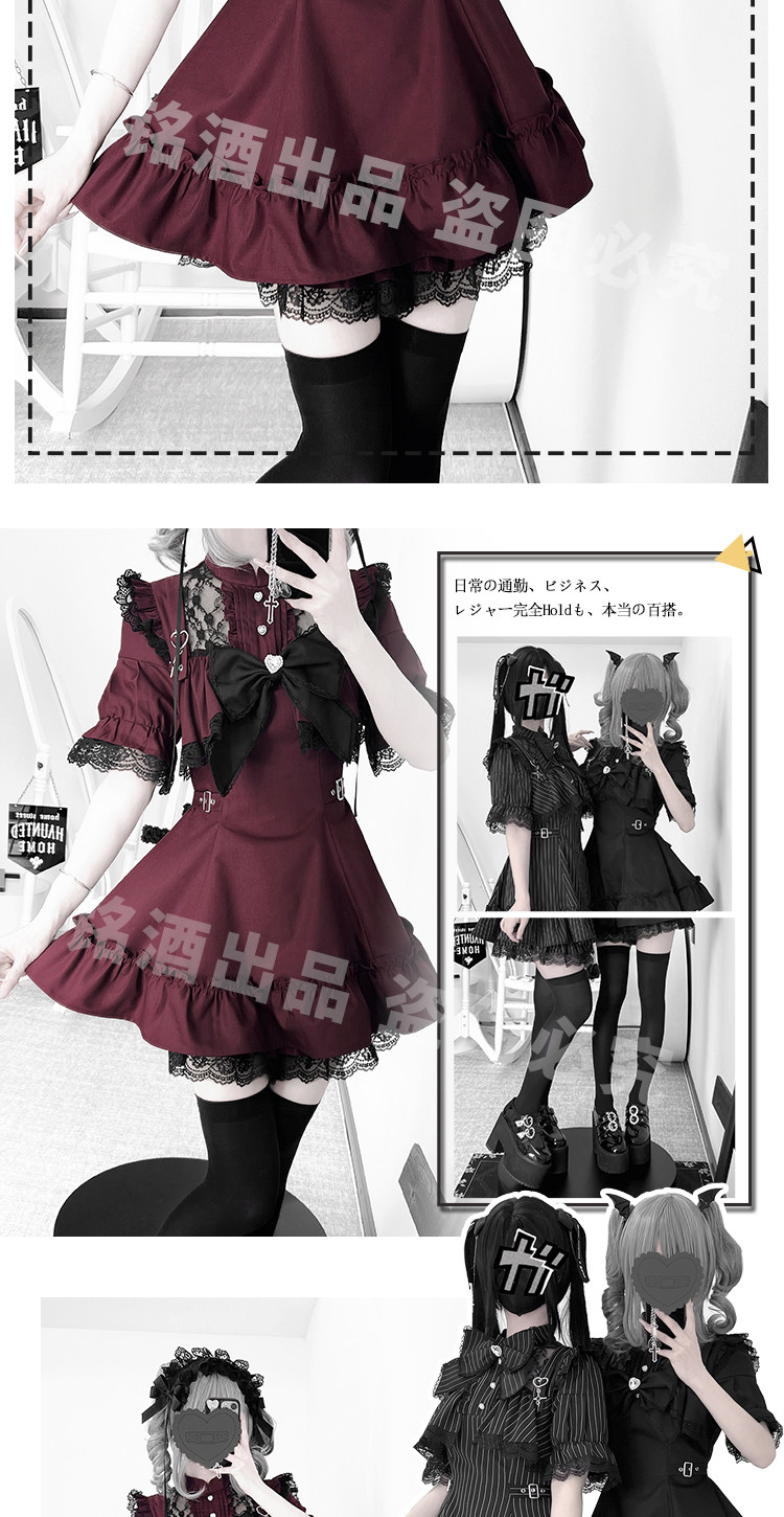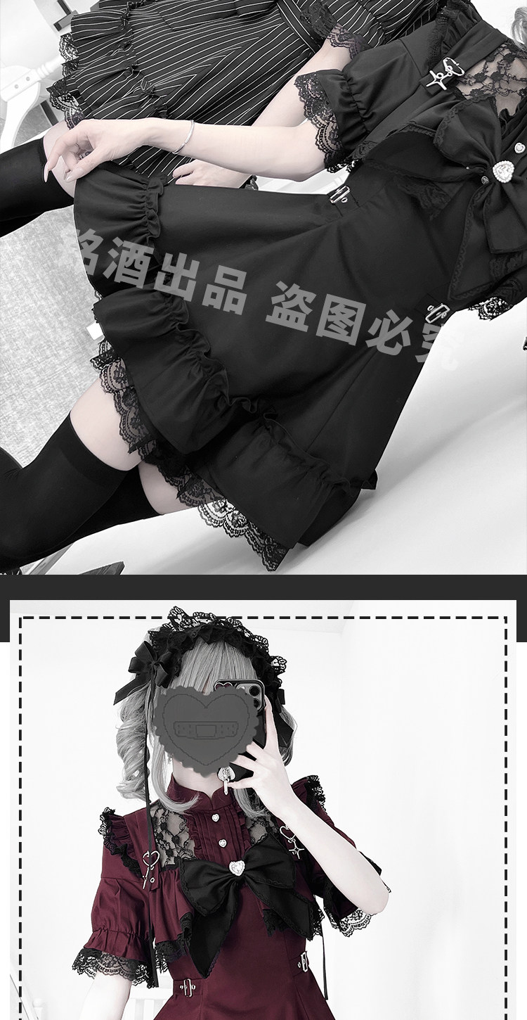 铭酒学园y2k亚文化量产型天雷系夏季黑红蕾丝边短袖洋装两件套 [Original Page Link]