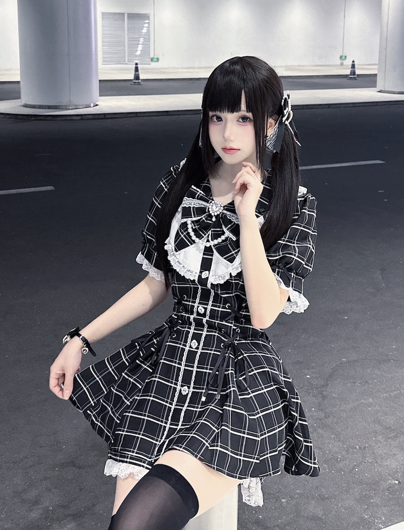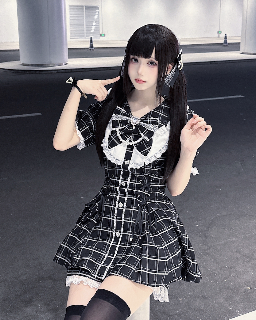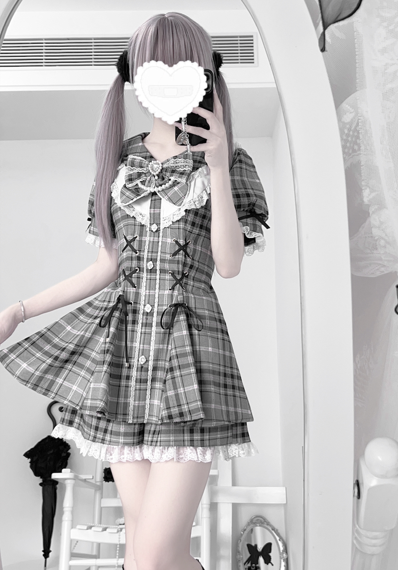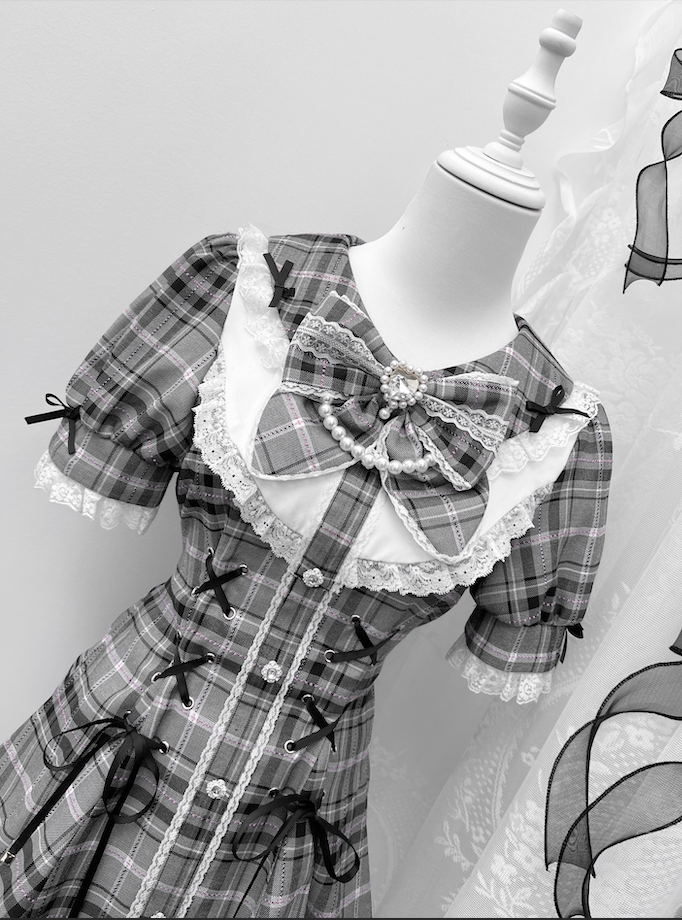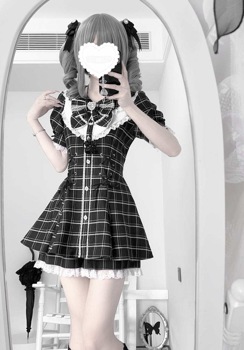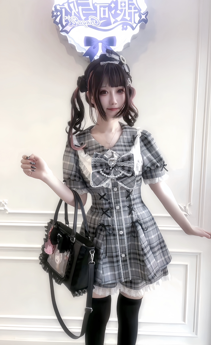 【兔偶心事】银河与你日系亚文化原创量产新品套装灰粉格黑白套装 [Original Page Link]
