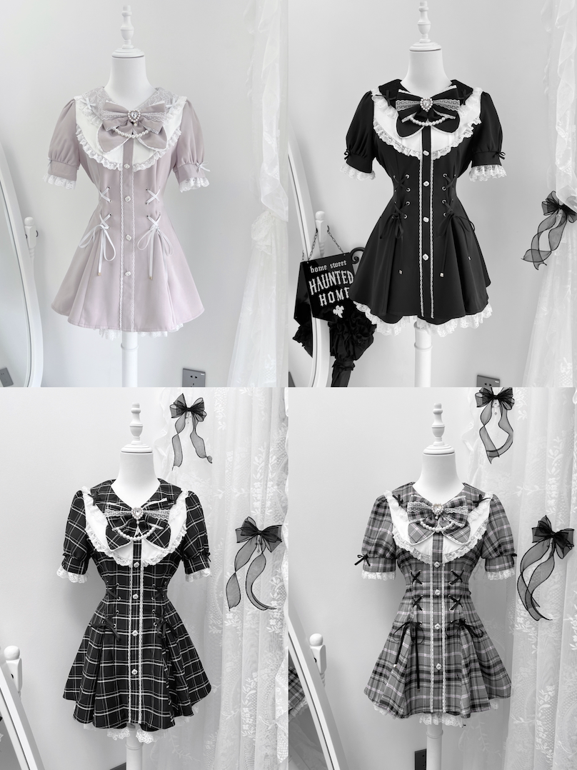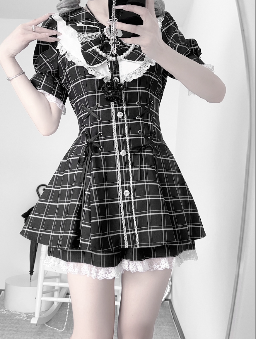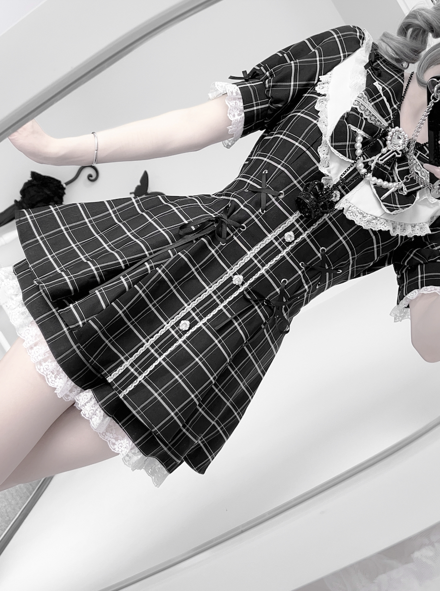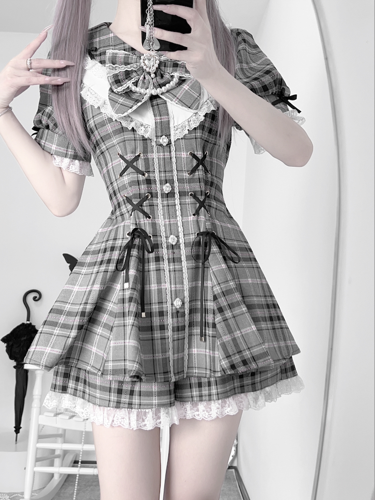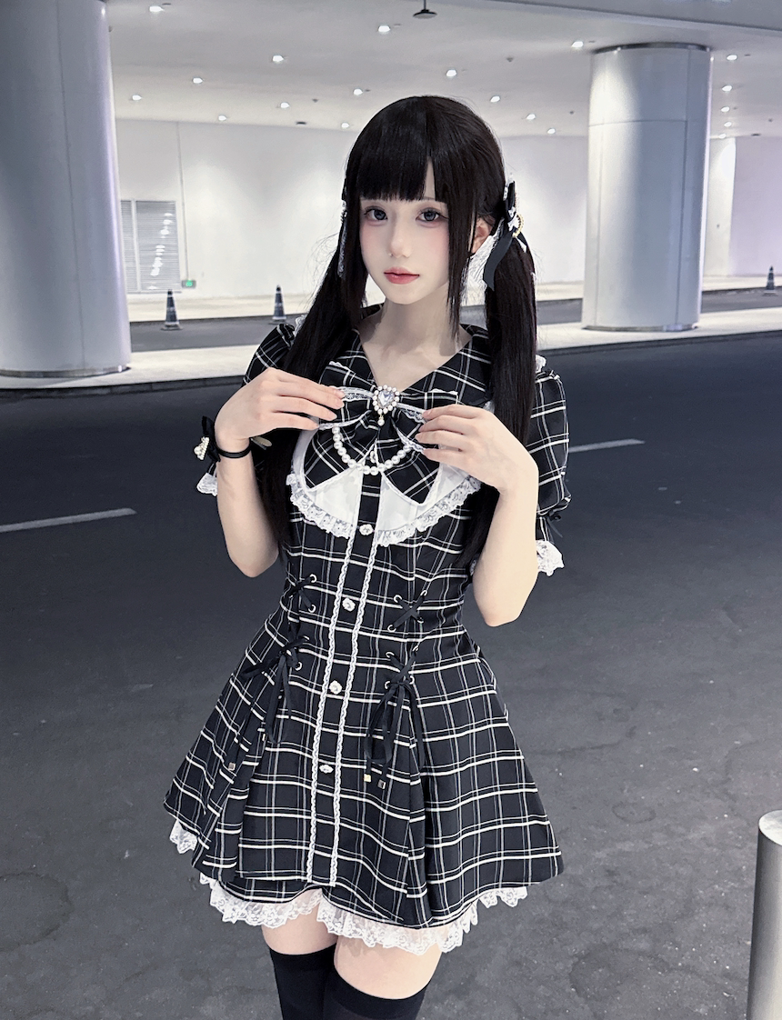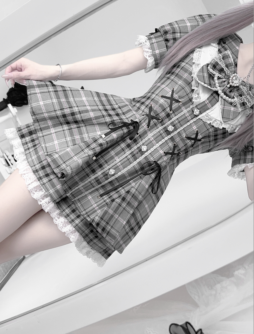 【兔偶心事】银河与你日系亚文化原创量产新品套装灰粉格黑白套装 [Original Page Link]