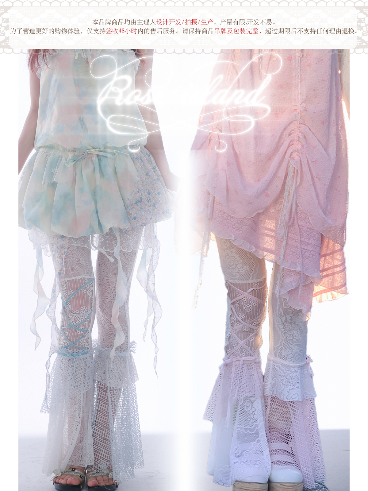 ROSE ISLAND 水母系列 不规则拼接蕾丝网纱喇叭裤 fairycore [Original Page Link]