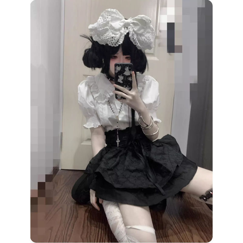 Y2K性感黑色系带蝴蝶结裙女夏季雅碧风格朋克a线蓬松蛋糕裙 [Original Page Link]