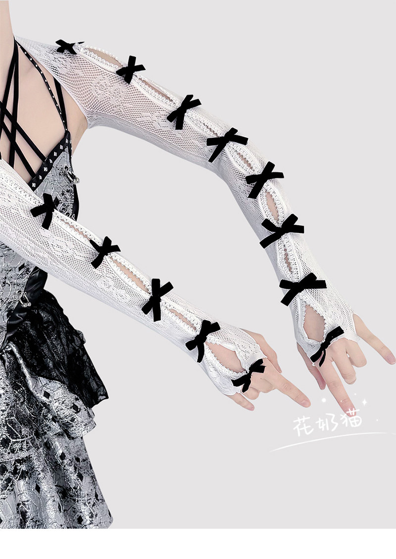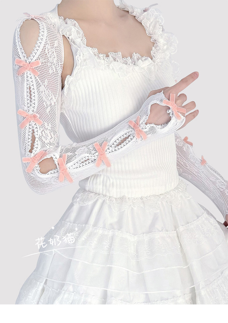 Pure and alluring lace bow shawl sleeves, women's trendy summer thin white sun protection sleeves, Lolita accessories